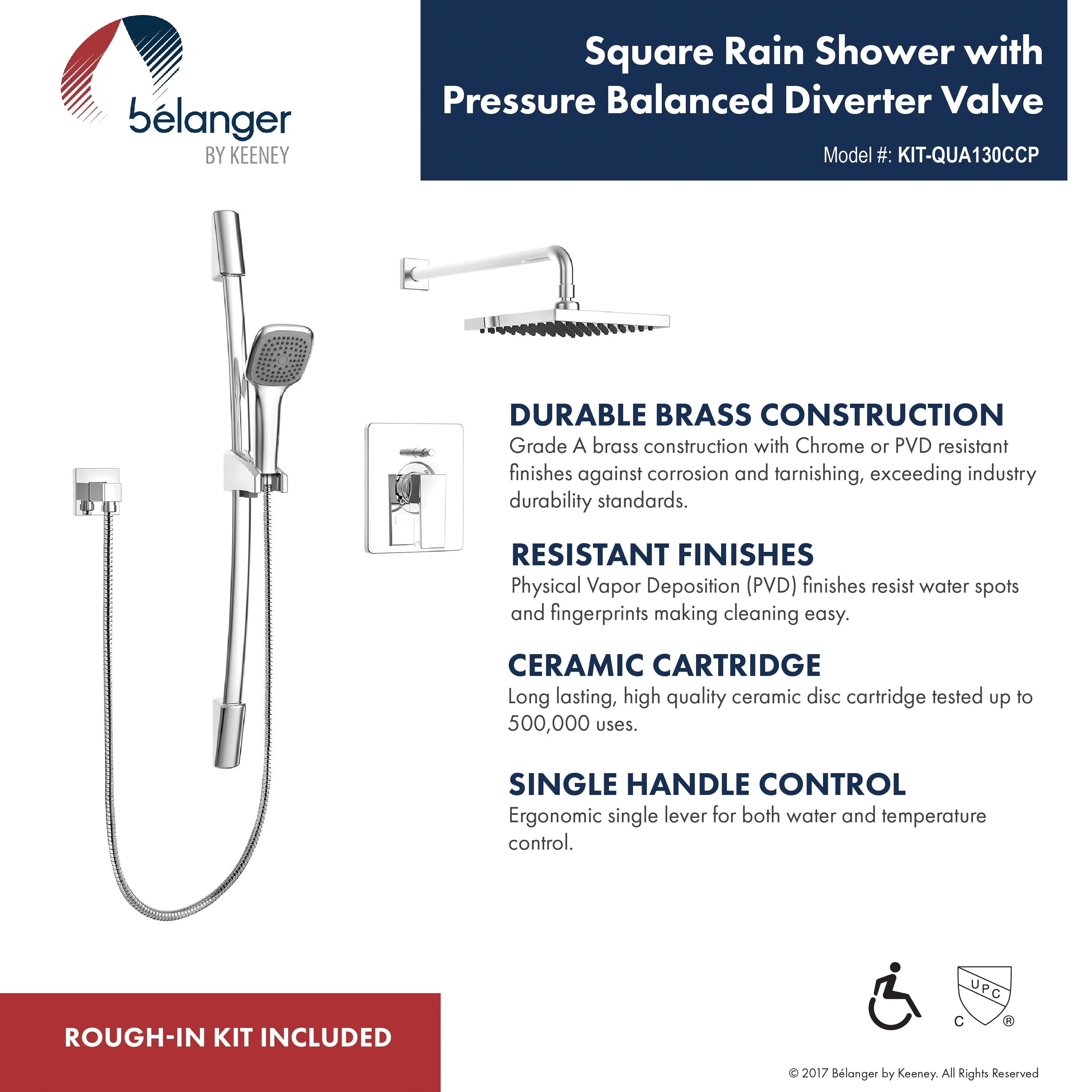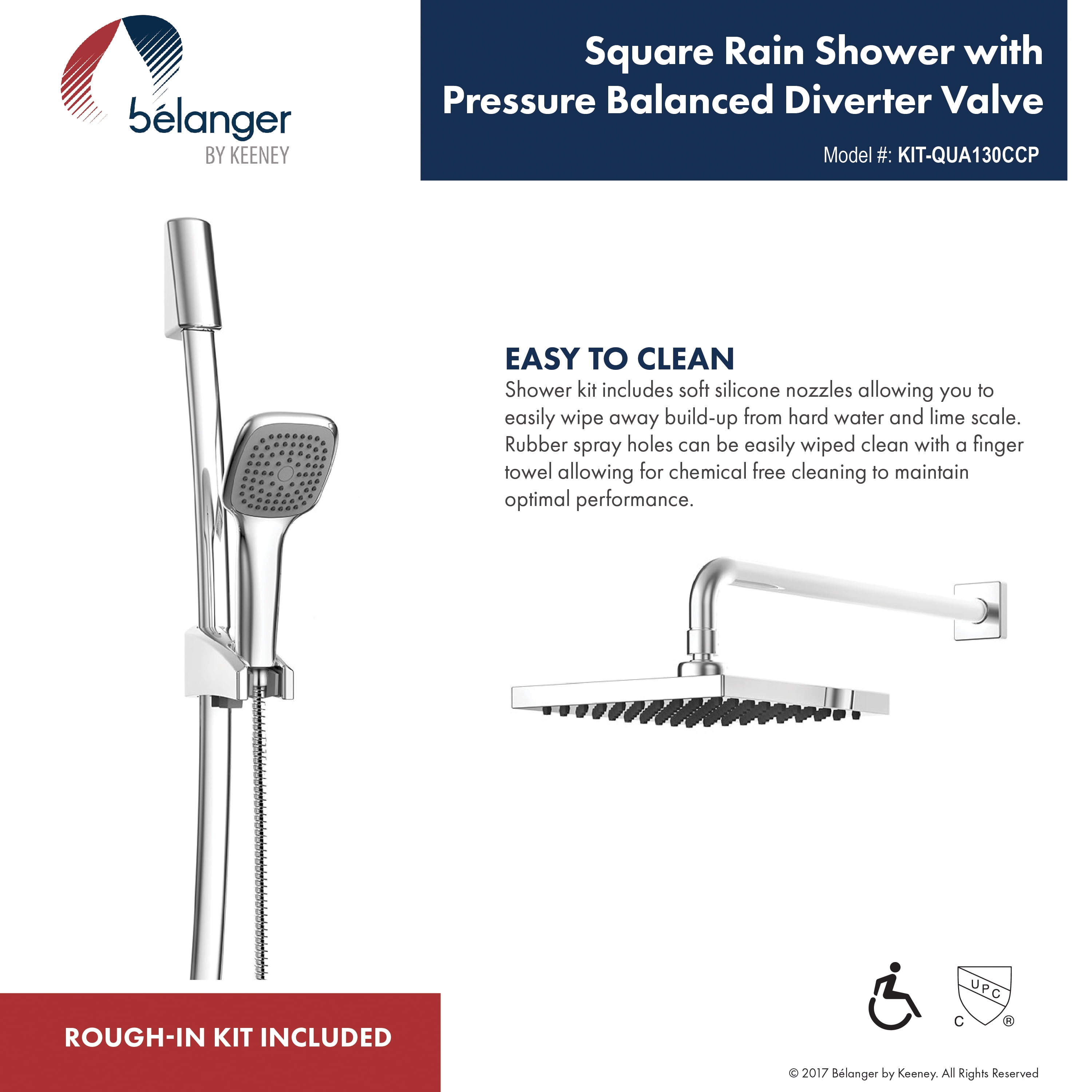 Belanger QUA130CCP Rain Pressure Balanced Square Shower System, Polished Chrome