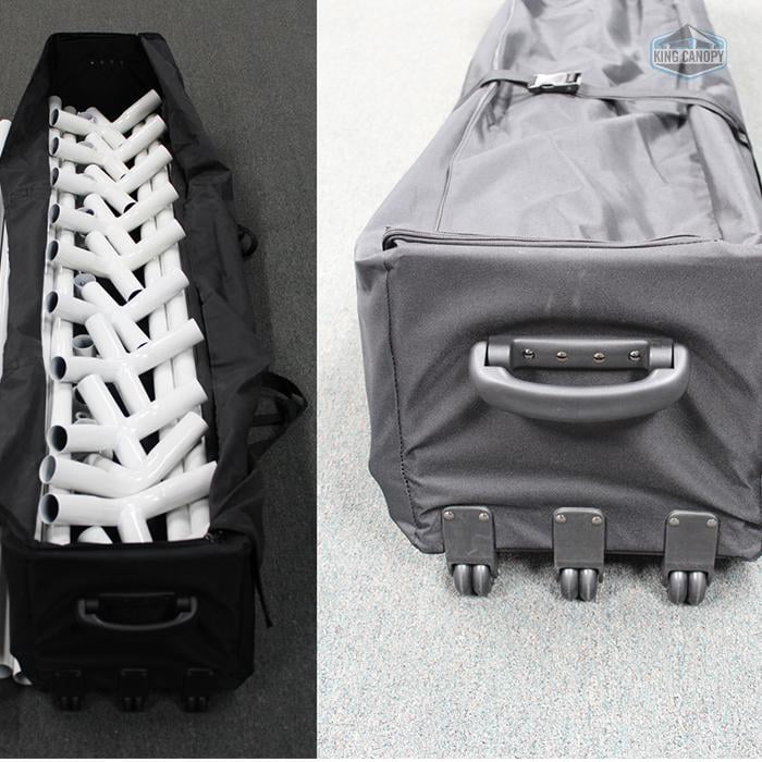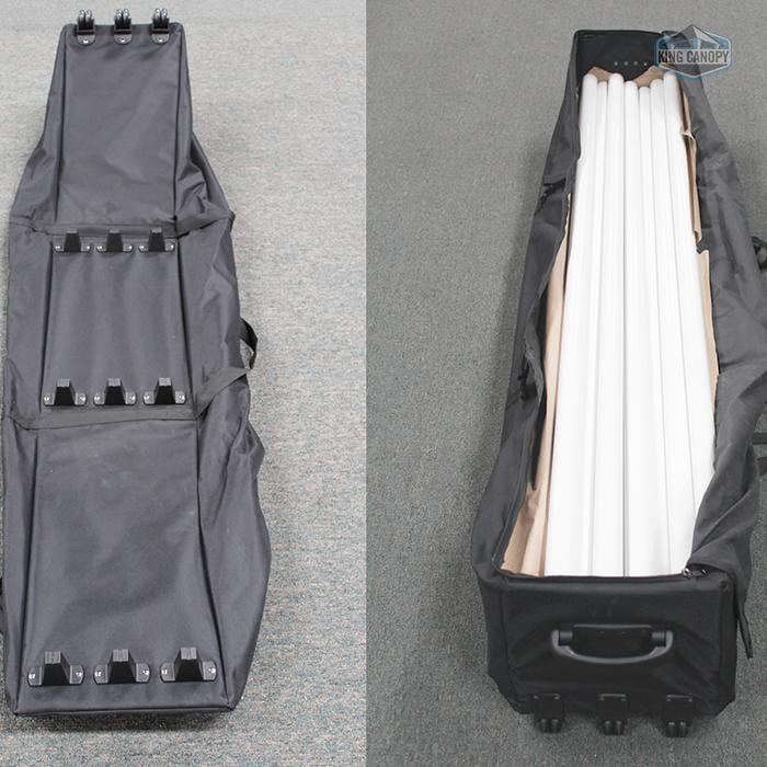 80 inch Canopy Roller Storage Bag The Canopy Roller Bag is the best storage solution for your King Canopy. Spacious and sturdy enough to hold a all pipe, fittings, and your canopy cover. Easily Store your canopy on the off season and then roll your next set up location. Black Spun Polyester Rollers to Help Move Canopy & Frame Not Included Handle for Easy Transport – Product Material: Polyester, Plastic – Distressed Finish? (Y/N): NO – Product Max Height (Top to Bottom): 13 – Product Max Width (Side to Side): 80 – Item Weight: 13 – Product Finish Color: Black – Product Max Depth (Front to Back) length: 13 – Product Max Depth in Inches (length): 0 – Product Max Height in Inches: 0 – Product Max Width in Inches: 0 – Product Min Depth (Front to Back) length: 0 – Product Min Depth in Inches (length): 0 – Product Min Height (Top to Bottom): 0 – Product Min Height in Inches: 0 – Product Min Width (Side to Side): 0 – Product Min Width in Inches: 0 – Square Feet Per Carton: 4536
