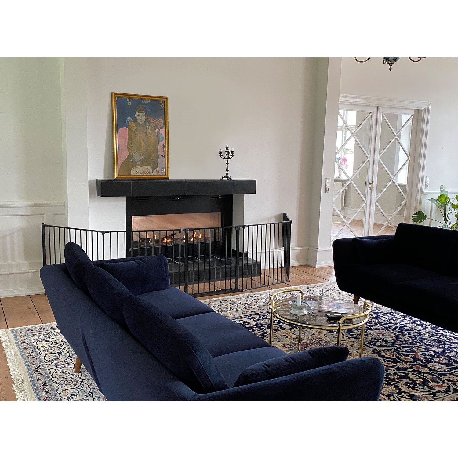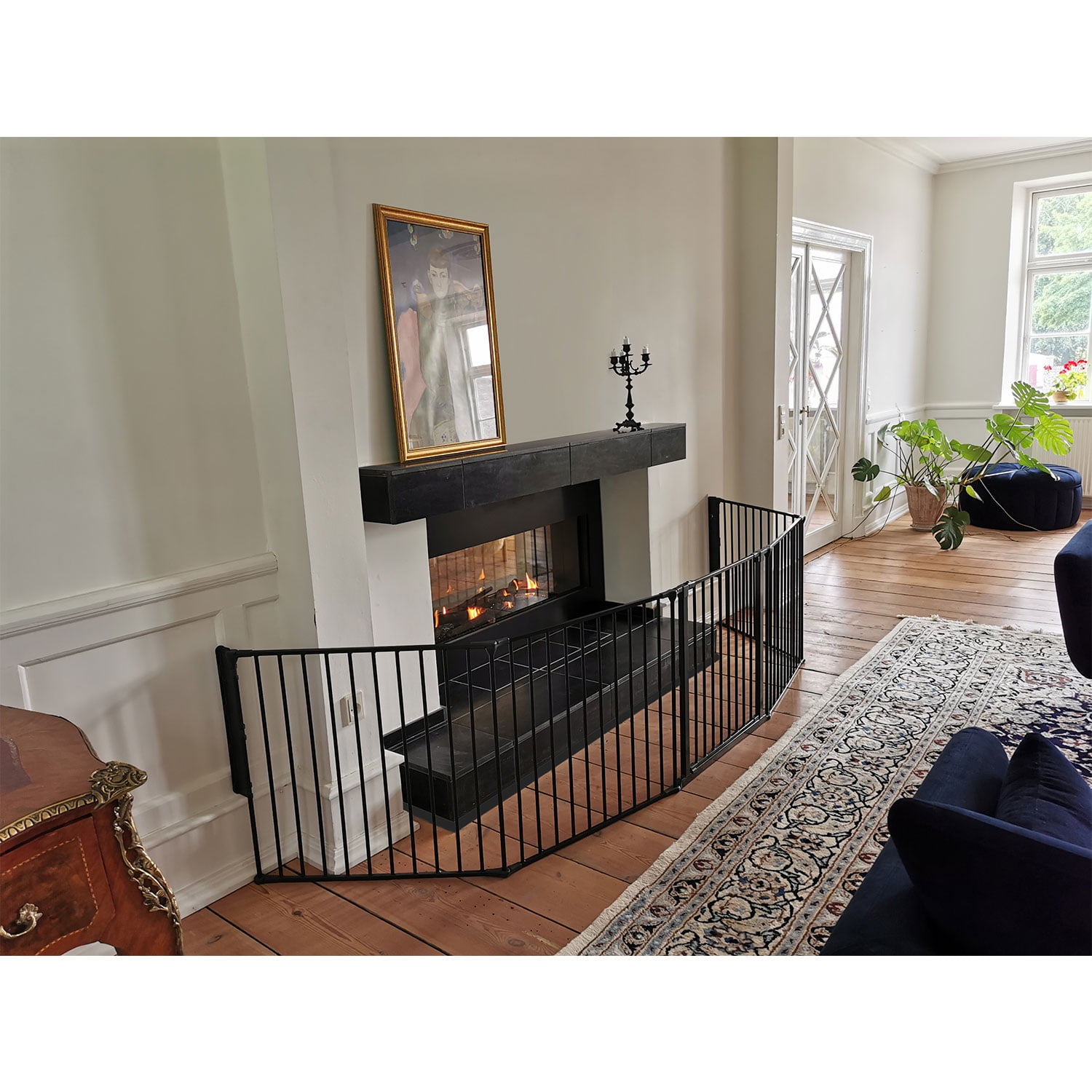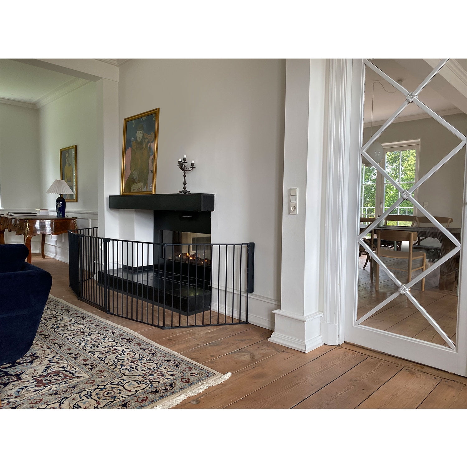 Flex is a flexible system that can be extended infinitely. With the panels included it fits openings between 35.4” and 138” wide. For openings over 138” simply add more extensions(Model number SG-F-EXT13B) Stands 28.4” tall. The door section of the gate can be placed anywhere within the Flex system. Suitable for use as a Hearth gate or room divider. Easy set up. One hand operation and two way opening system. Double locking system adds extra security while one-hand operation and two-way opening design make operation convenient. With the childproof quick release system safety gate can be easily removed from the wall brackets when not in use. Manufactured in Denmark. Fully complies with all current European and US safety standards. 100% non- toxic powder coated European Steel.