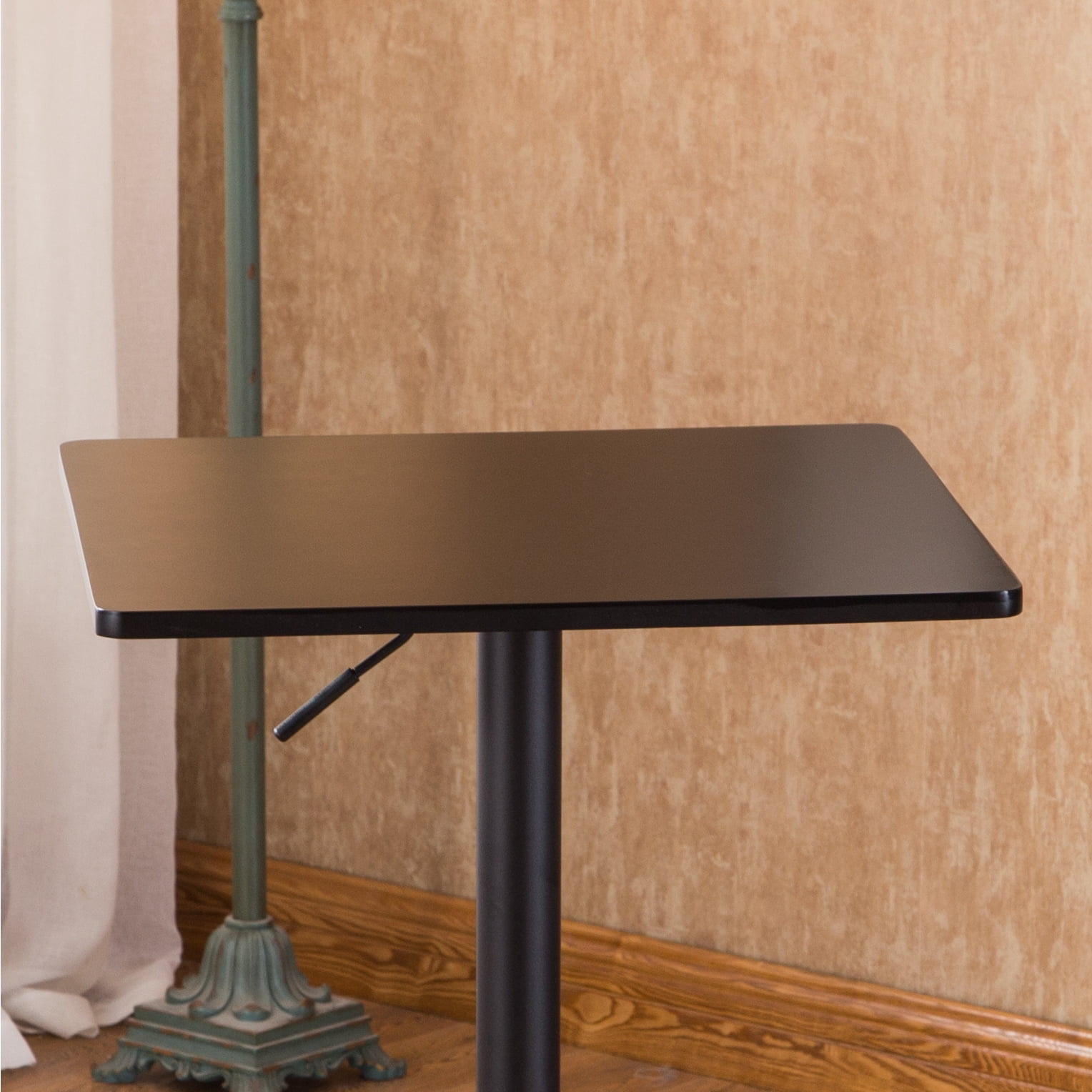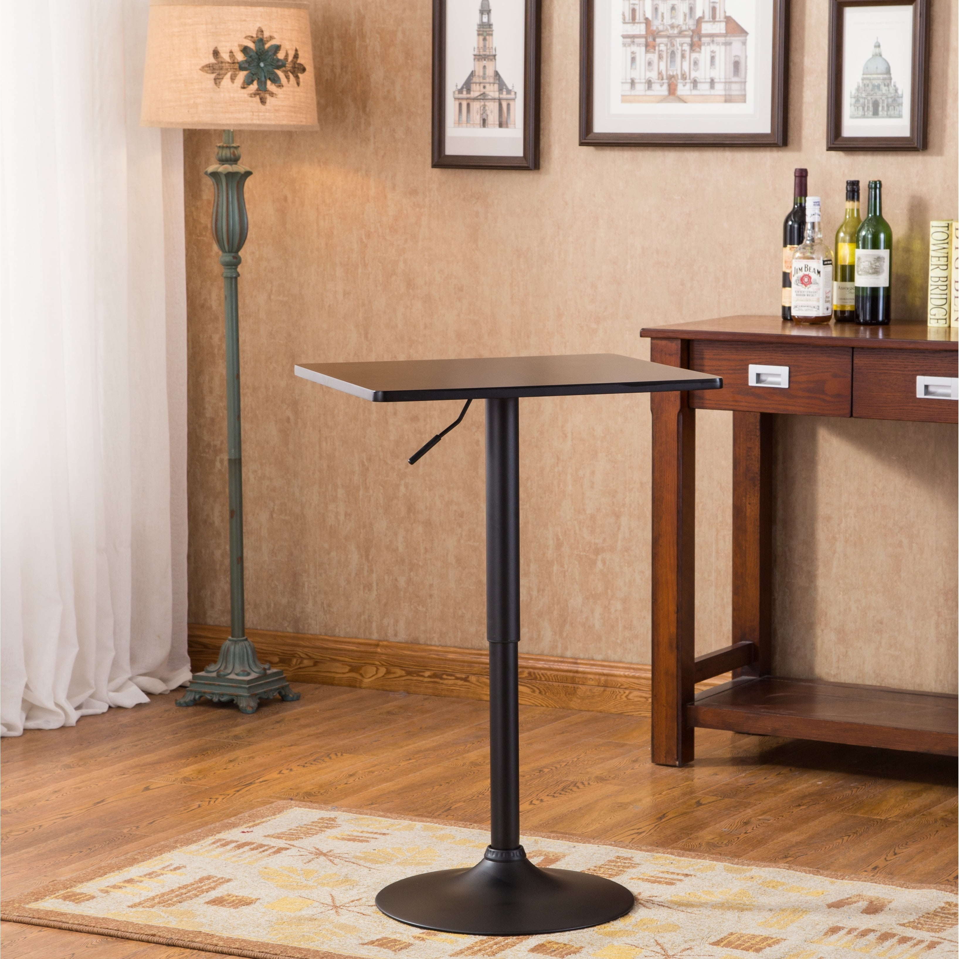 Belham Square Wood and Metal Adjustable Height Bar Table in Black