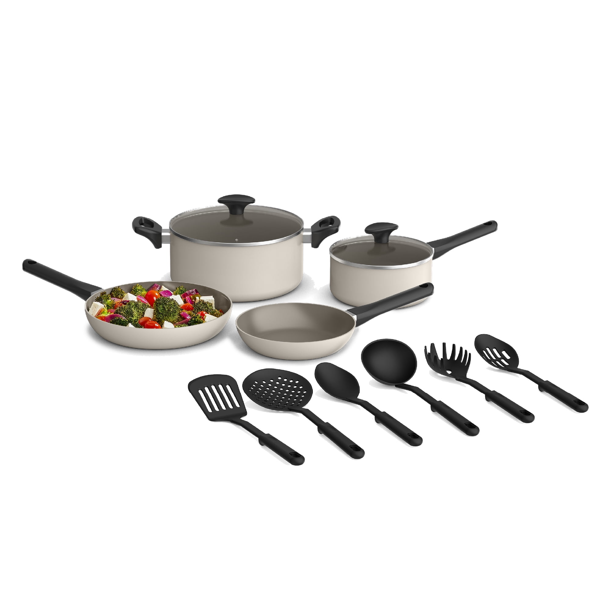 bella 12-Piece Ceramic Nonstick Cookware Set, Oatmilk