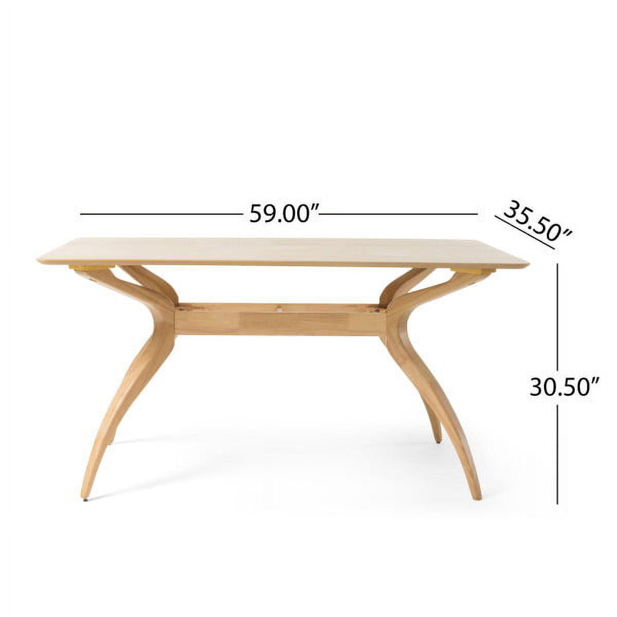 Beautiful look with a solid wood table top supported by tapered concave legs Dimensions: 35.43″ D x 59.06″ W x 29.53″ H Material: Faux wood with a walnut veneer and solid rubberwood legs Comfortably seats 4 Assembly required Gorgeous natural oak finish Recommended Locations: Indoor