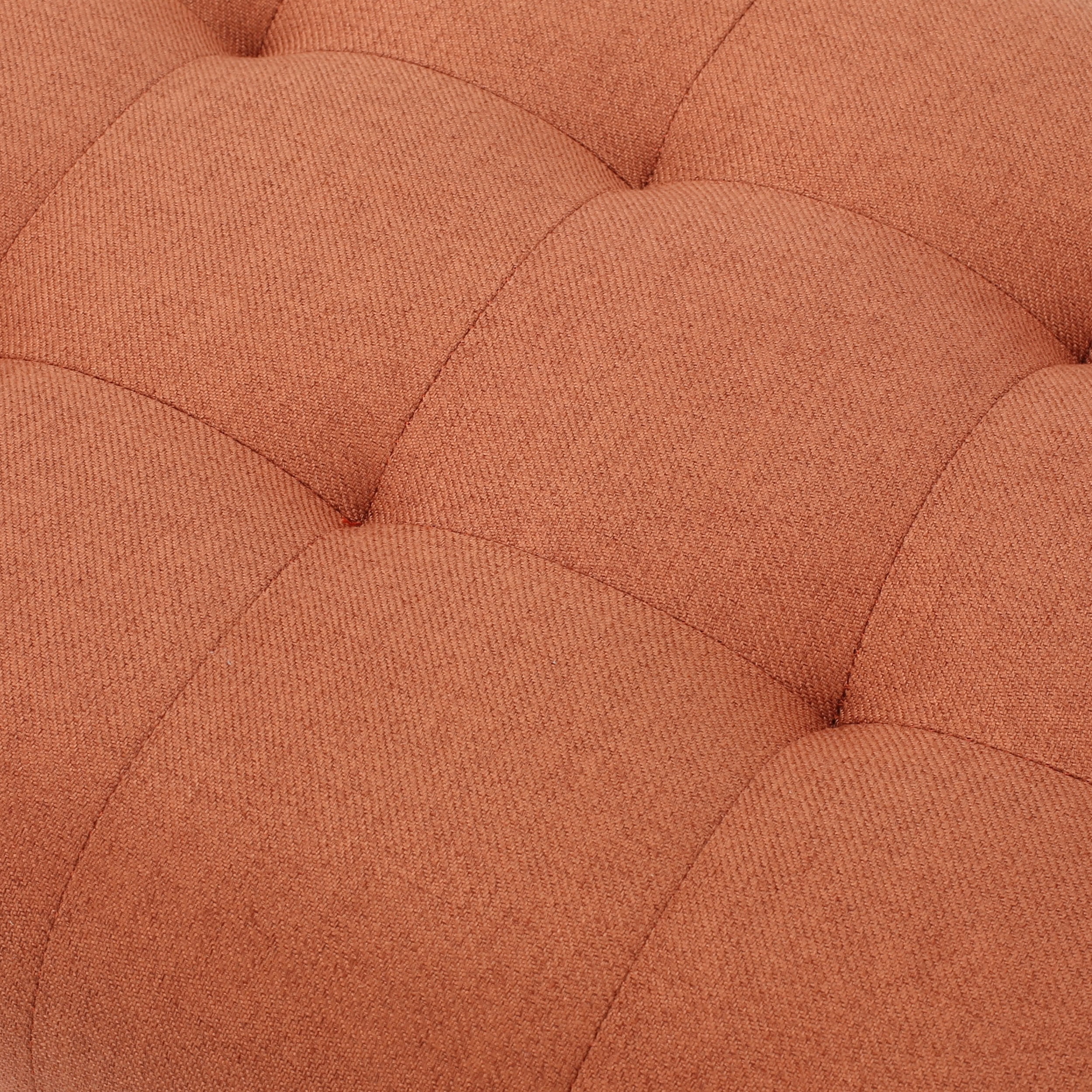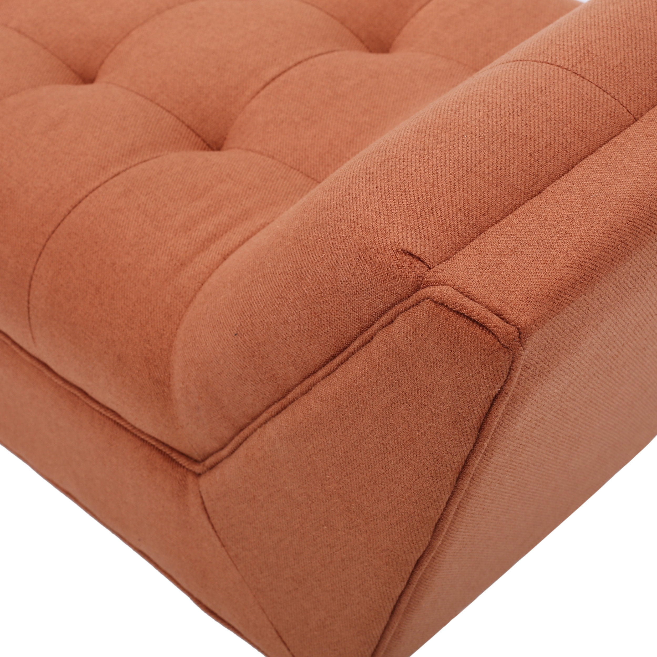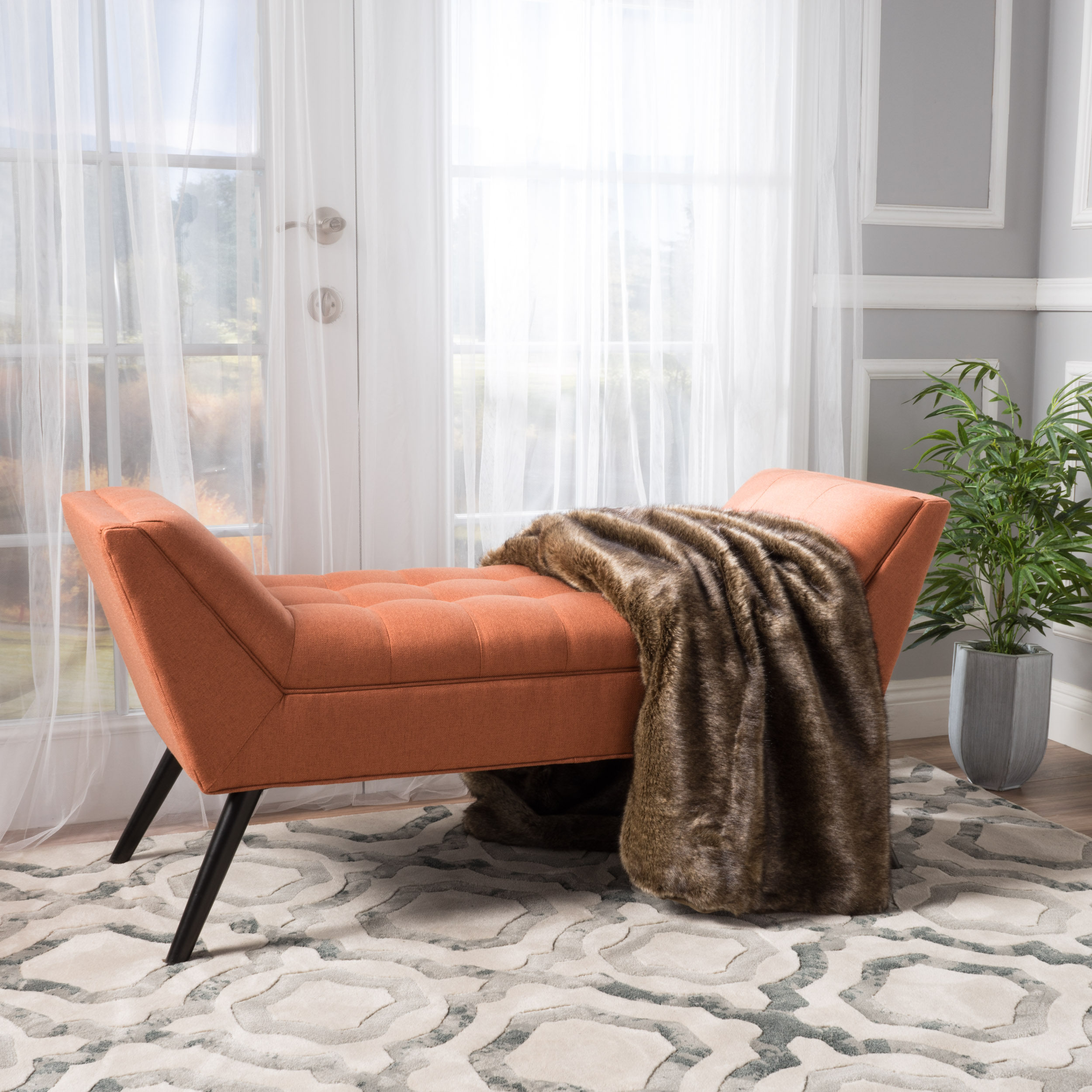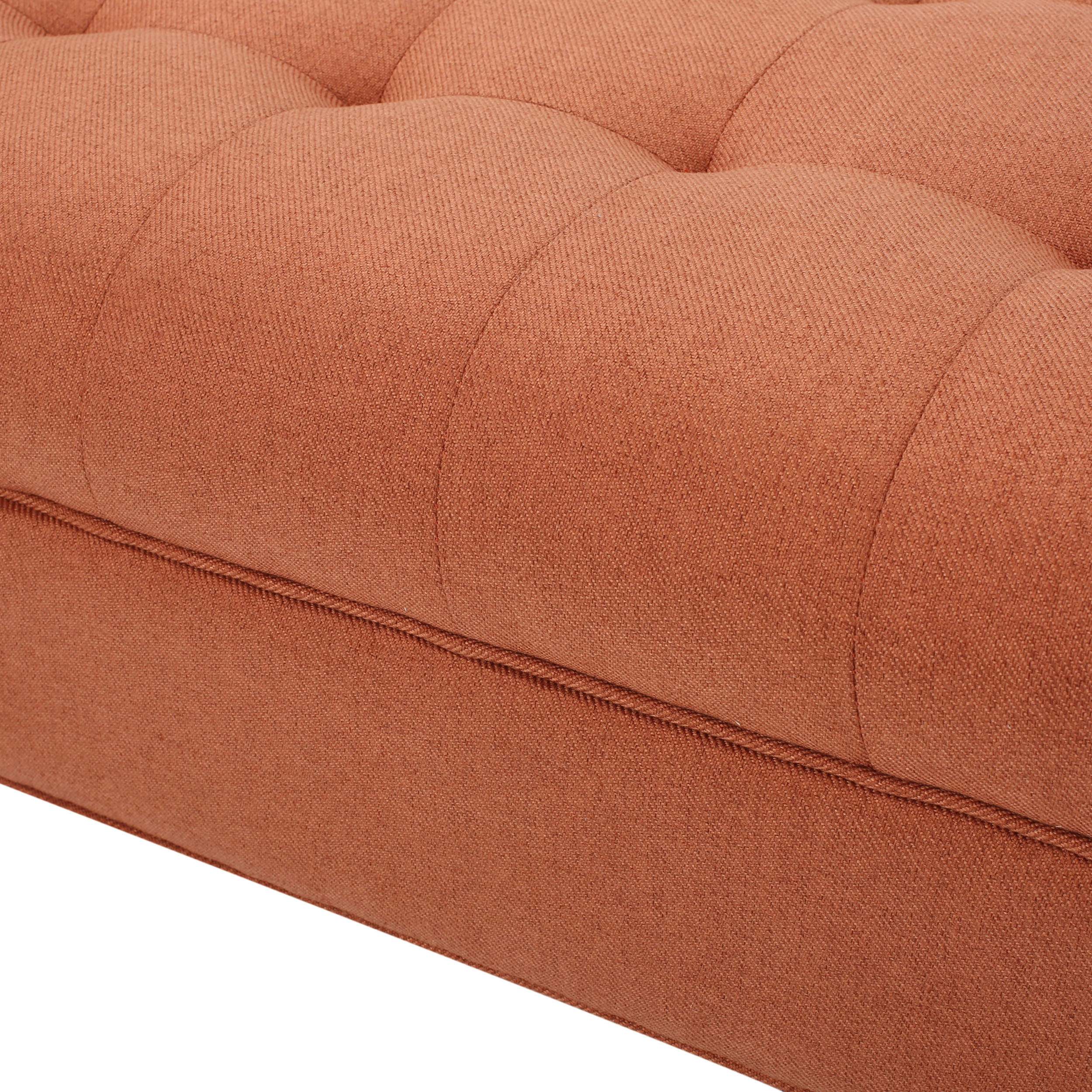 Includes: One (1) Bench Material: Fabric Fabric Composition: 100% Polyester Leg Material: Birch Color: Orange Leg Finish: Dark Brown Light Assembly Required Dimensions: 19.50 inches deep x 52.00 inches wide x 23.50 inches high