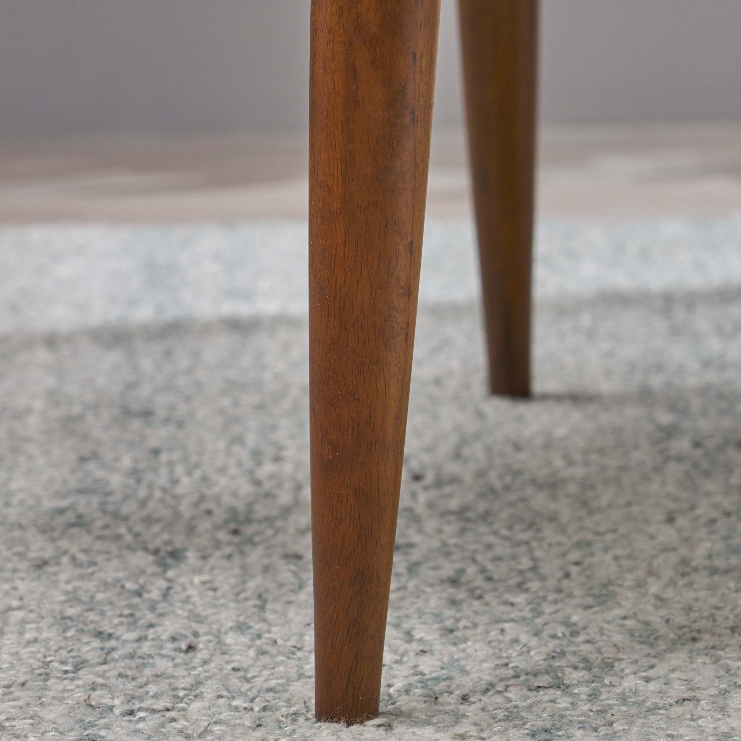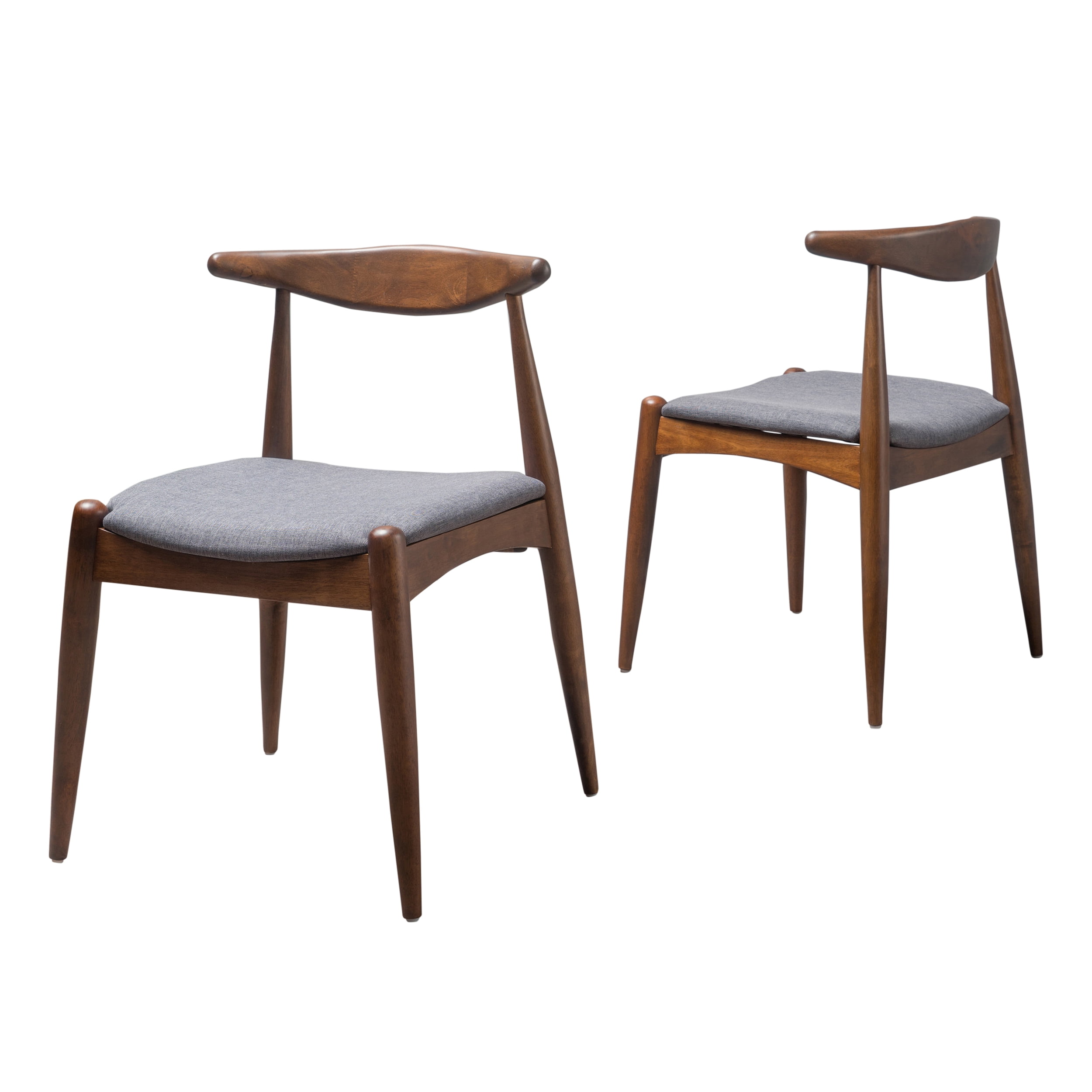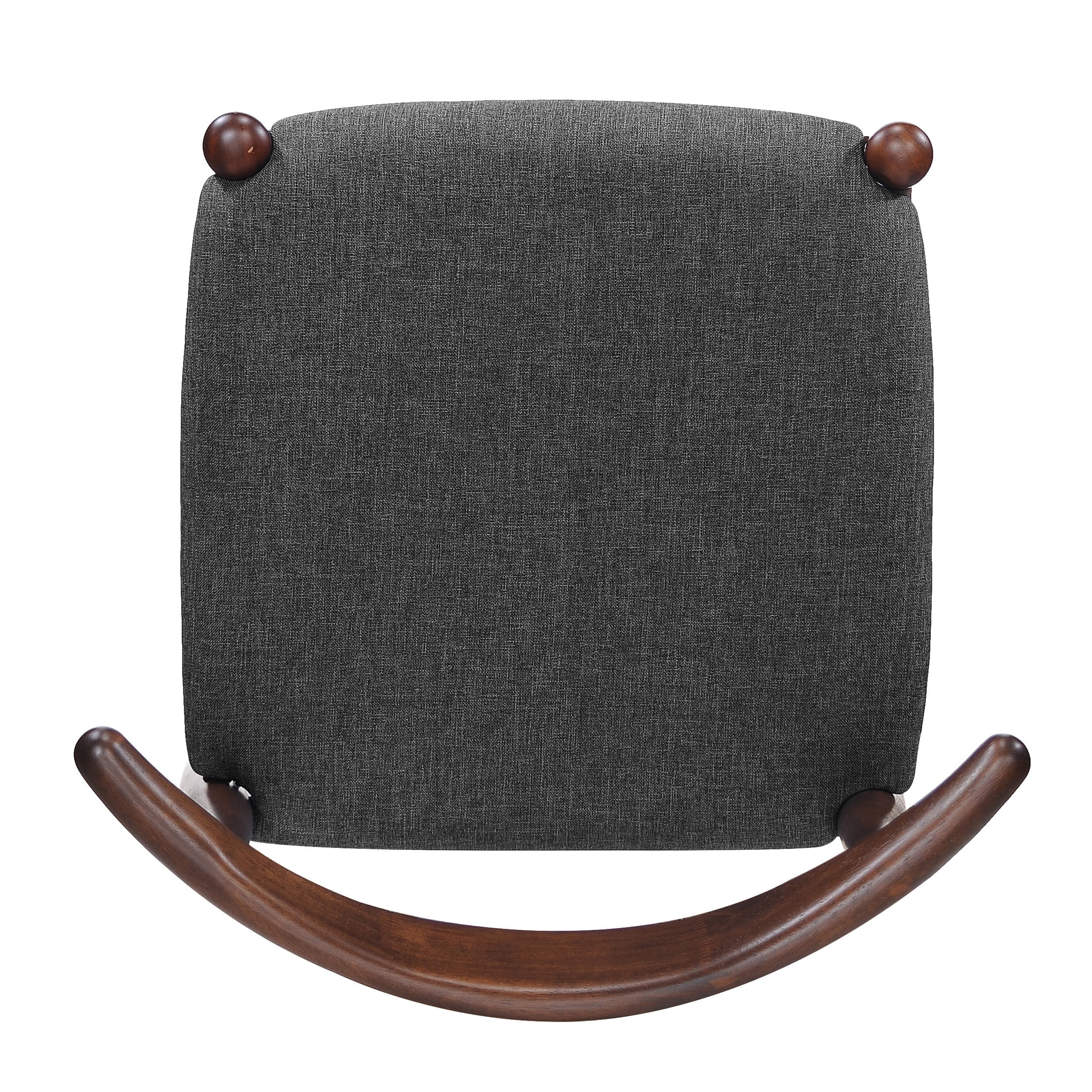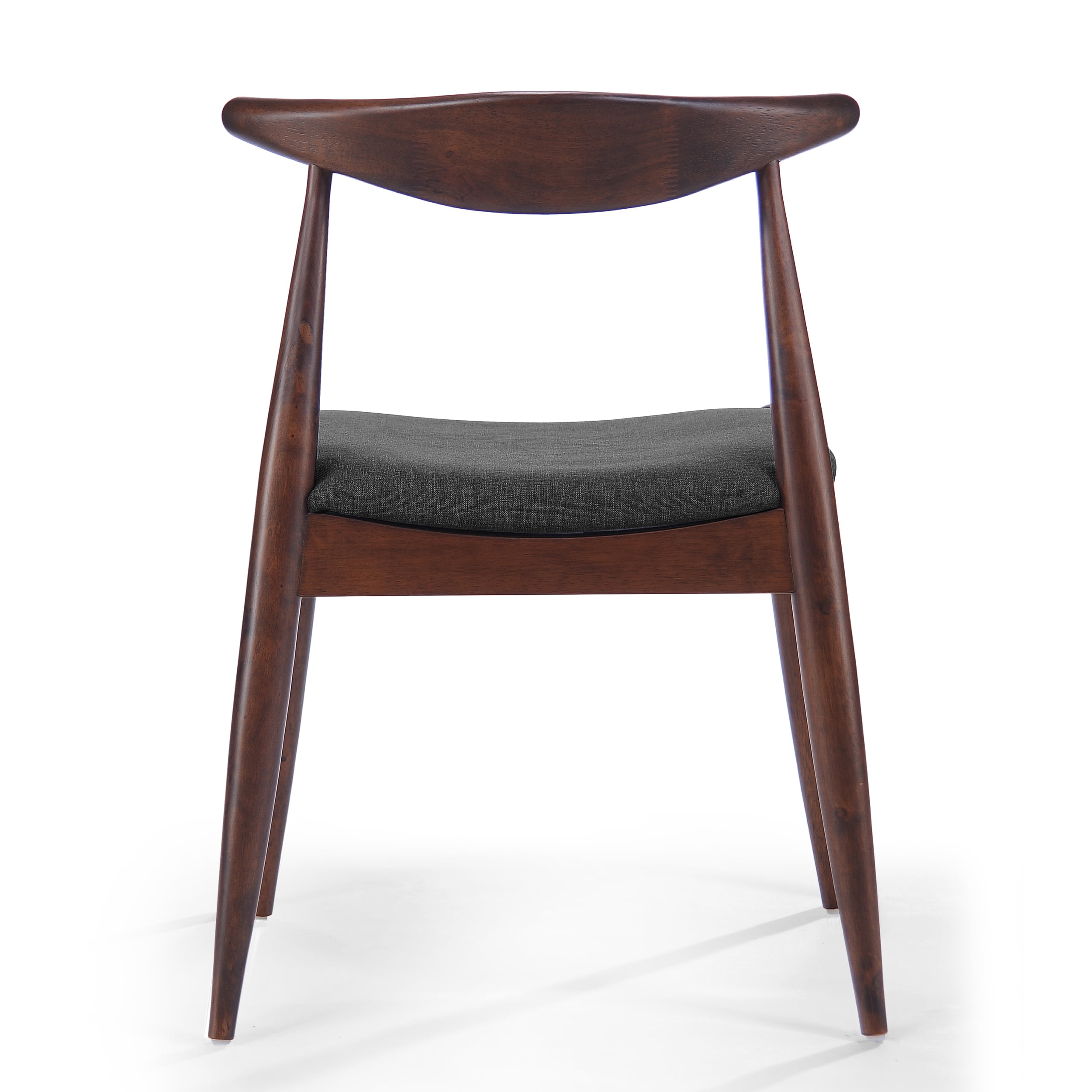 Give your interior space a new look by adding our classy dining chairs to your dining set for a fresh, mid-century modern style. Designed with minimalistic lines, our chair set lends compact comfort that allows you to make the most out of your space. Featuring an open back frame and slim tapered legs, this chair set emphasizes fresh design and simplistic structure, a perfect addition to any interior space. These dining chairs offer upholstered cushions in a refined charcoal color that is complemented by its smooth rubberwood frame with a deep walnut finish. Accented with iconic flared legs, this dining chair set will elevate your aesthetics to the next level with its sophisticated looks.