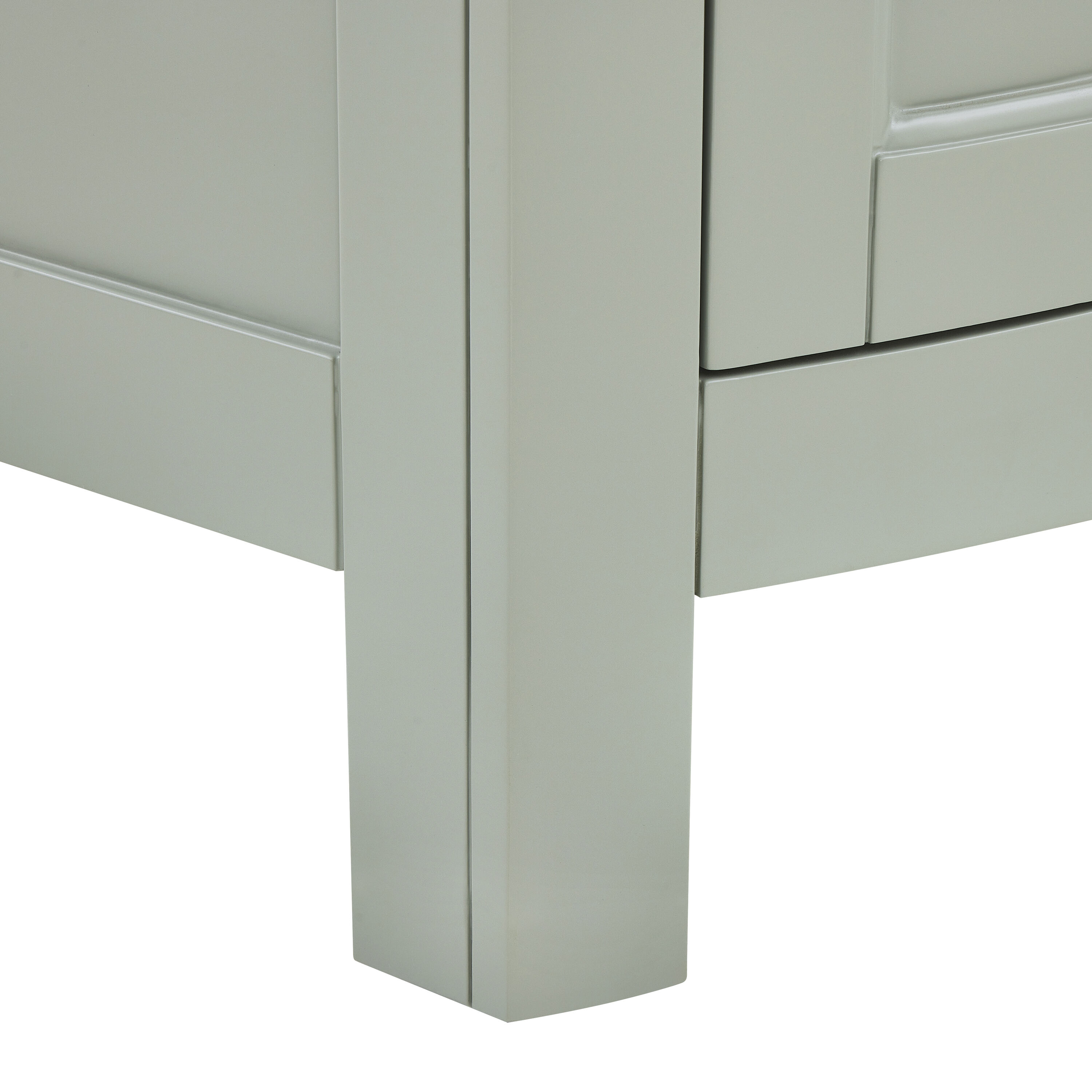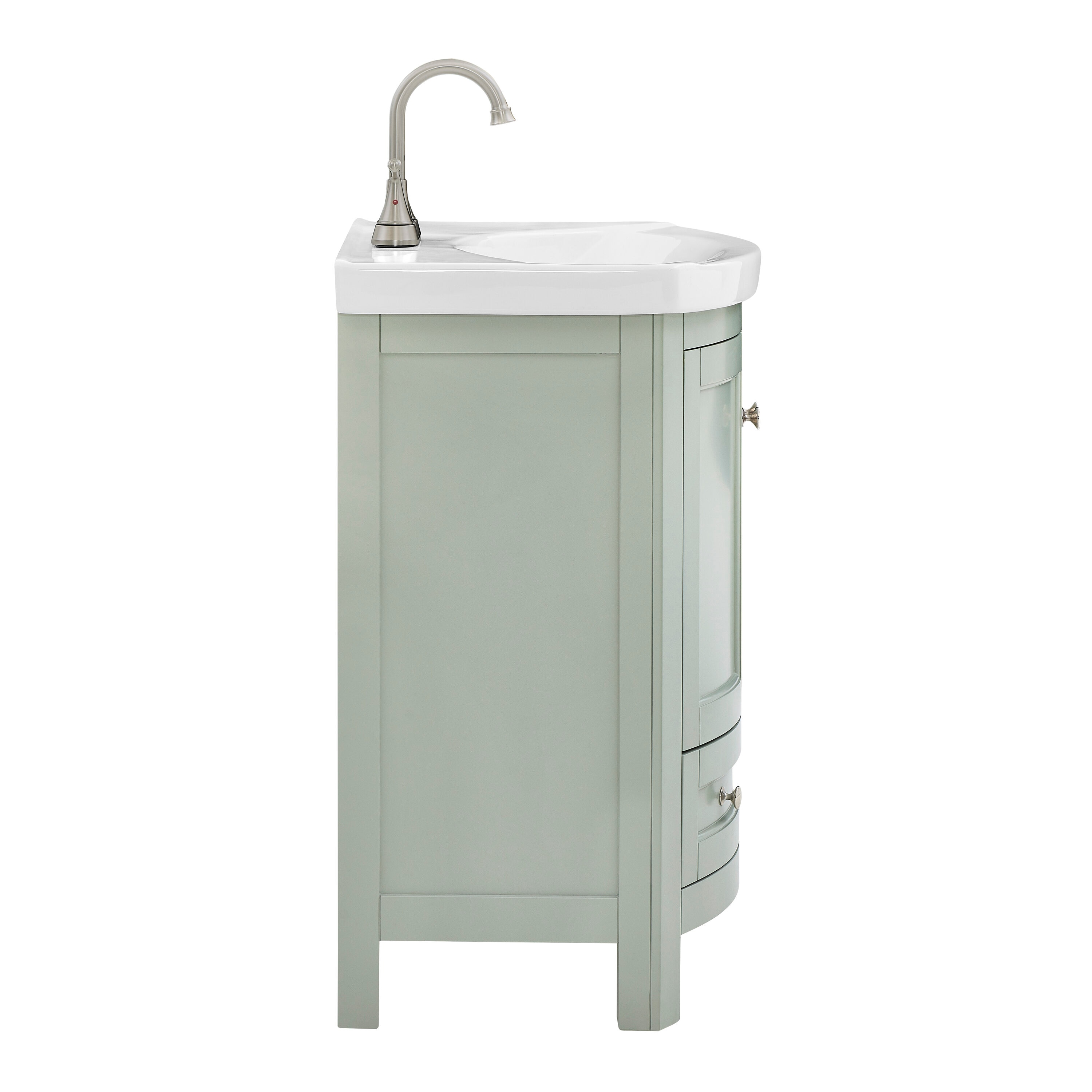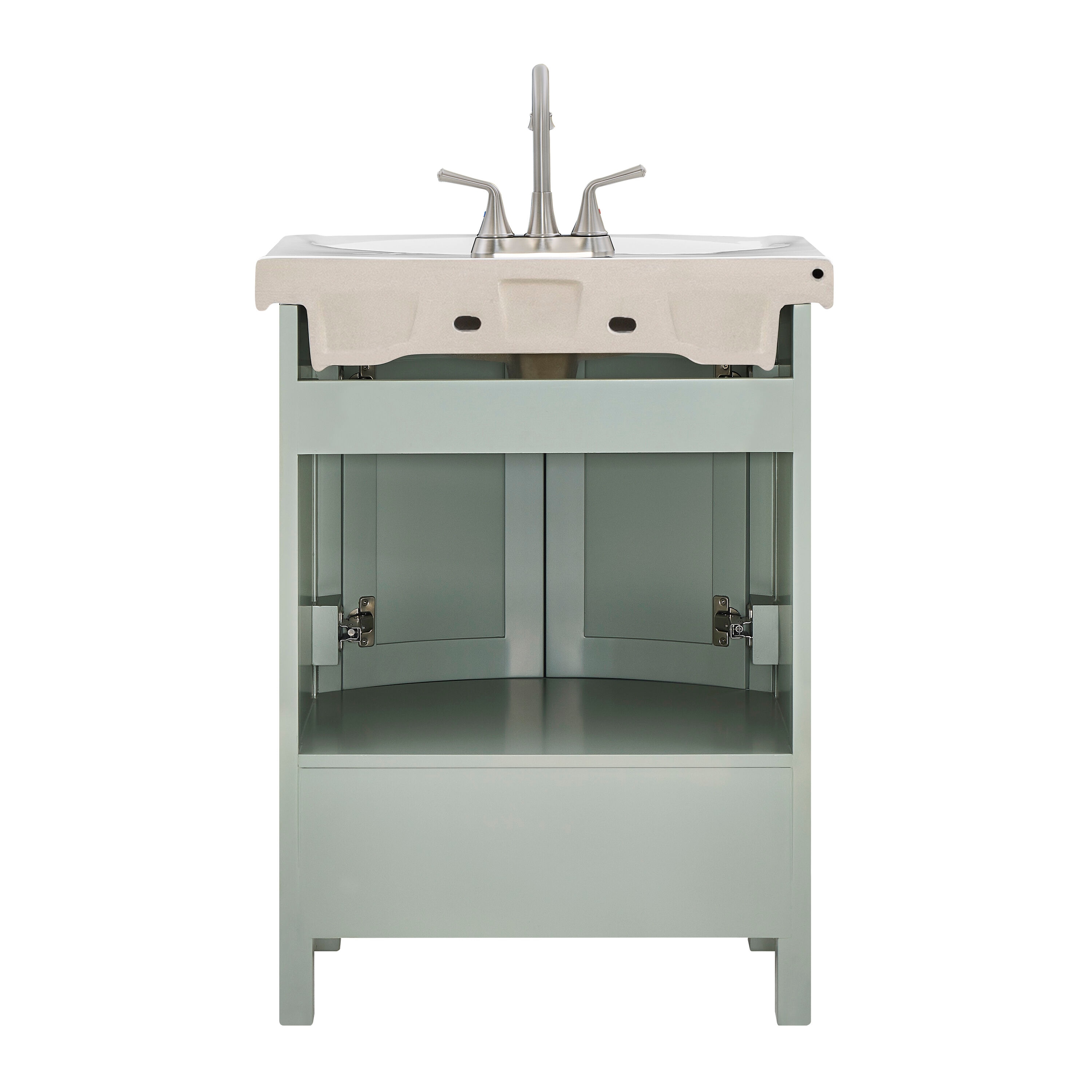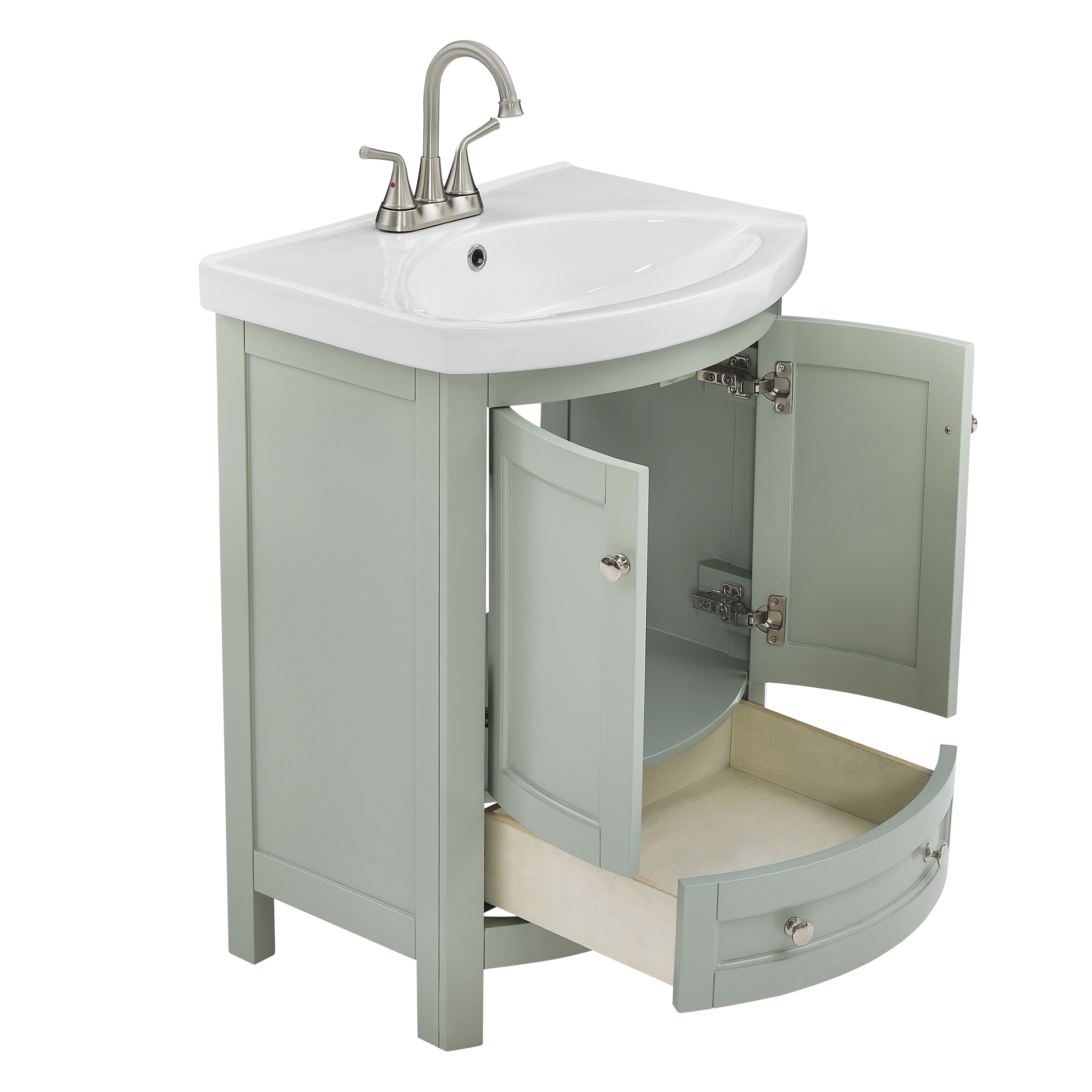 Beautiful and functional is the all wood constructed Bellina bathroom vanity by Runfine with elegant gray finish and comes complete and fully assembled. The vanity includes 2 recessed slow-closing doors and 1 slow-closing drawer along with Chrome hardware. The white vitreous top and basin have a gloss finish and is easy to maintain and clean. The bow front curved transitional look will add beauty and sophistication to any bathroom and is an excellent small space solution for additional storage.