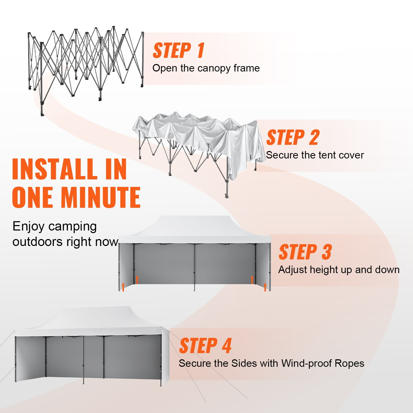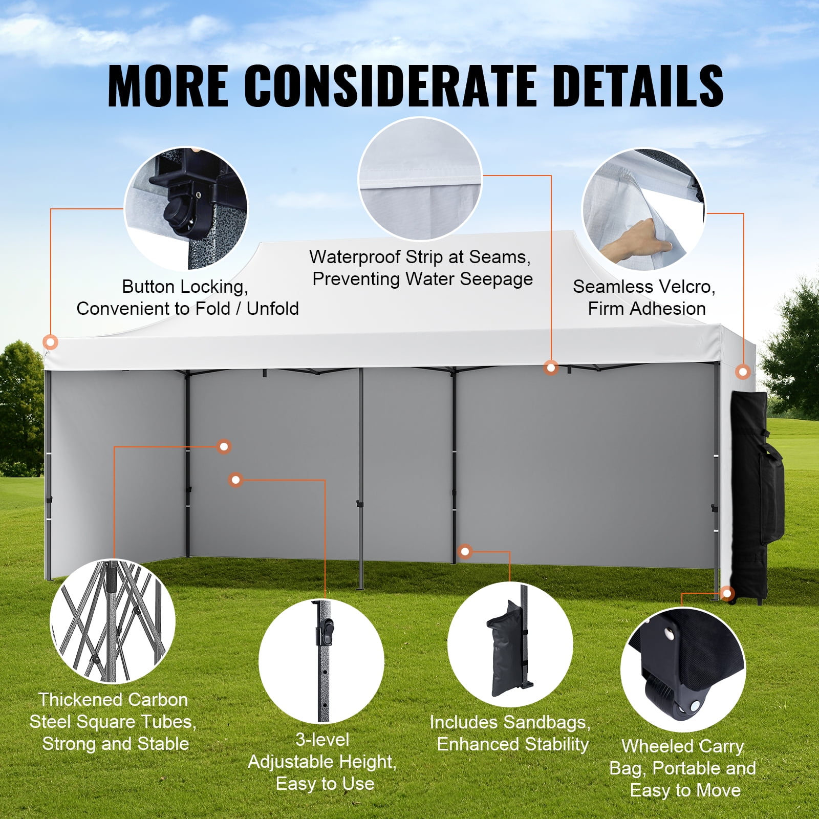 VEVOR 10×20 FT Pop up Canopy with Removable Sidewalls, Outdoor Instant Canopies Portable Gazebo & Wheeled Bag, UV Resistant Waterproof, Enclosed Canopy Tent