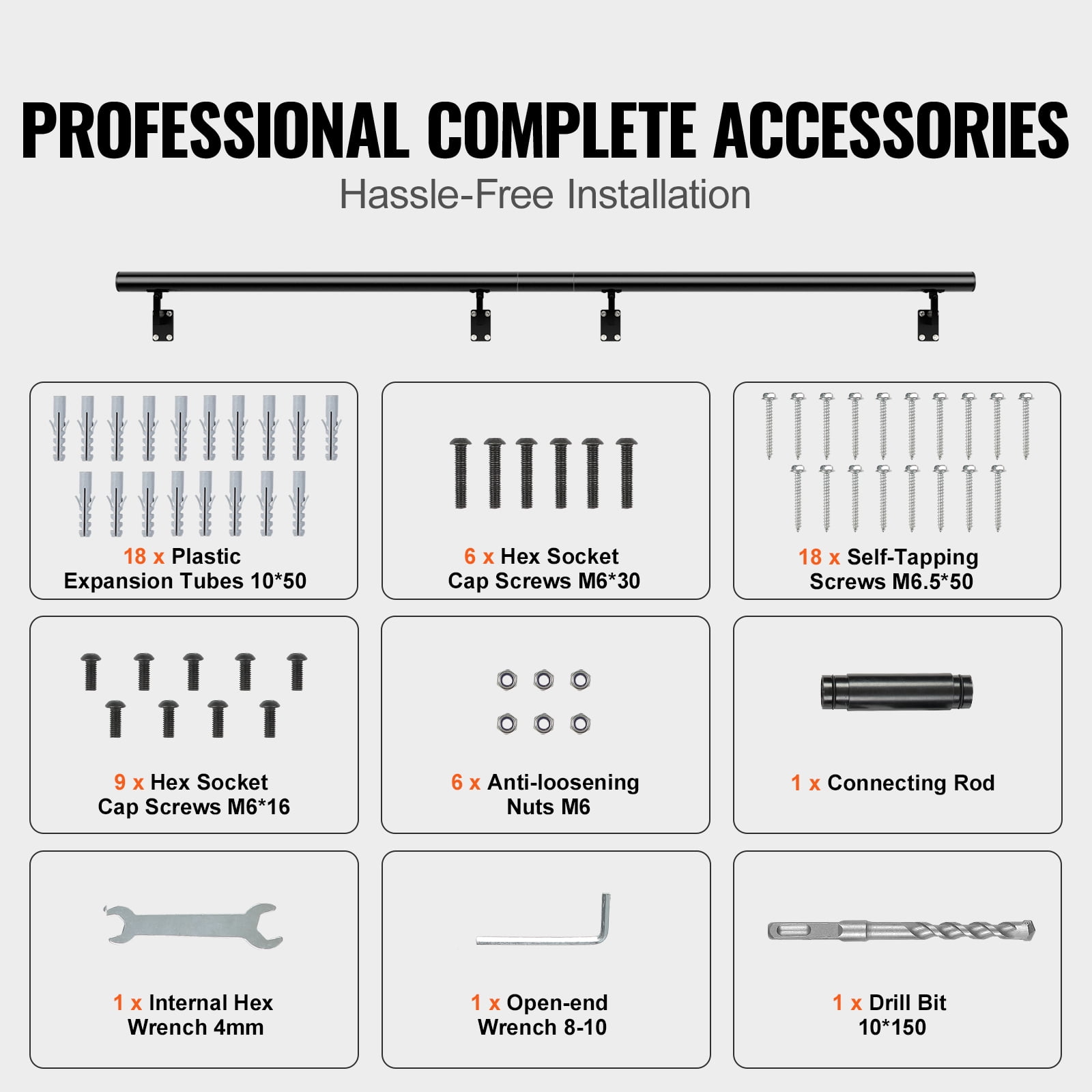 VEVOR 12 ft Wall-Mount Handrail Stair Railing Aluminum Alloy w/ Installation Kit