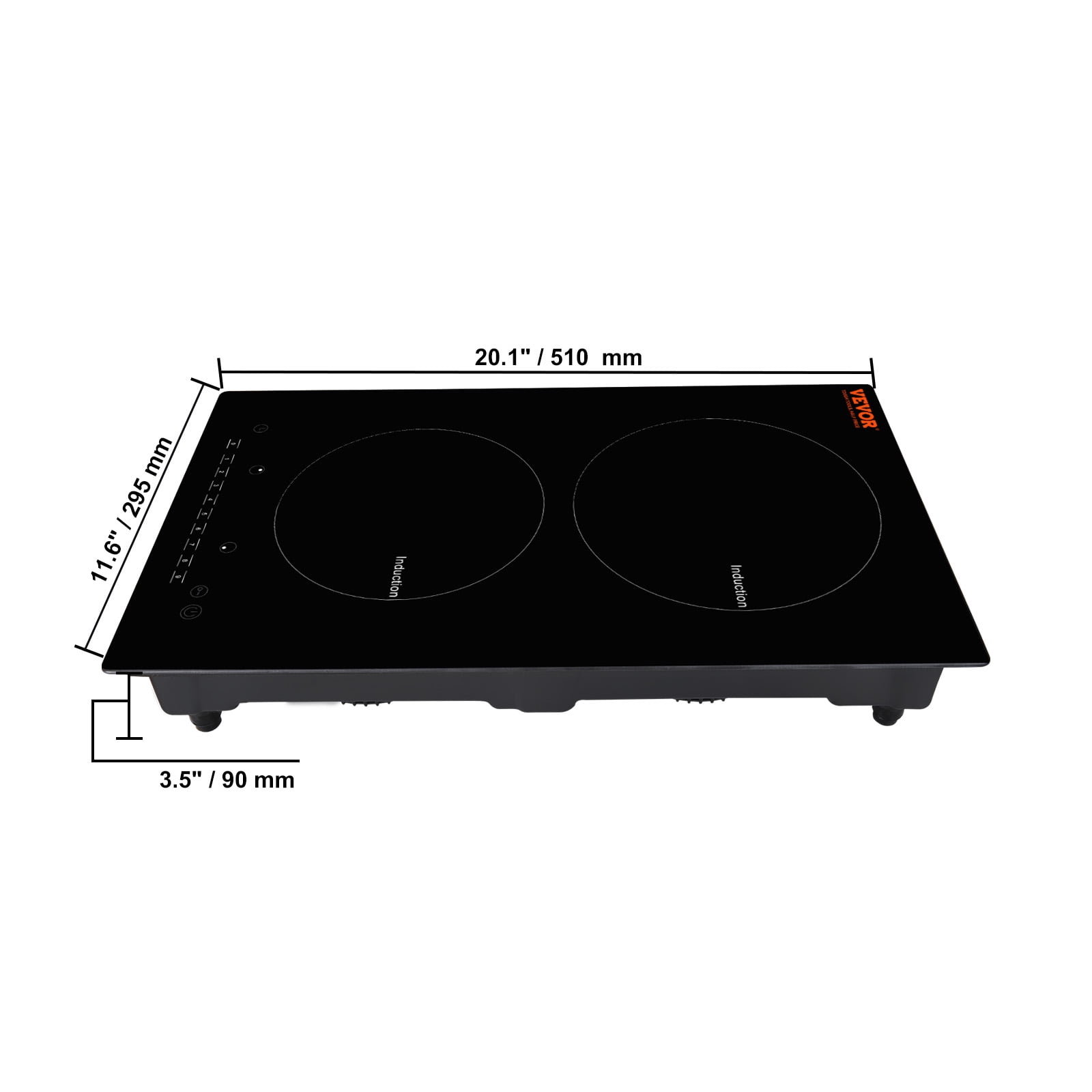 Portable Size: The built-in induction cooker is equipped with 9 levels of heat settings, making it perfect for stewing, frying, simmering, steaming, boiling, and grilling. With a powerful 1800W output, it heats up quickly, allowing you to enjoy your meals in no time. Sensitive Touch Control: Compatible with 2 types of high-temperature cookware such as cast iron, enamel, cast aluminum, stainless steel, etc., this cooker can simultaneously cook on 2 burners for increased efficiency while minimizing heat loss. Precise Temperature Adjustment: The touch-sensitive panel provides high sensitivity, allowing you to easily adjust the heat to your desired level. Each cooking zone can be independently controlled, and it also includes a timer function (1-99 minutes) and a pause button, providing flexibility and convenience in the kitchen. Secure & Reliable: The induction cooker features 5 safety functions, including automatic shut-off, spill-proof function, child safety lock, residual heat indication, and temperature protection. It ensures cooking safety at all times, making it ideal for pregnant women and the elderly. Embedded Design: The 12-inch induction cooker is designed for built-in installation, saving kitchen space, easy to install. The round edges with no sharp corners design is stylish and secure. It is suitable for voltage ranging from 110-120V, 50/60Hz.