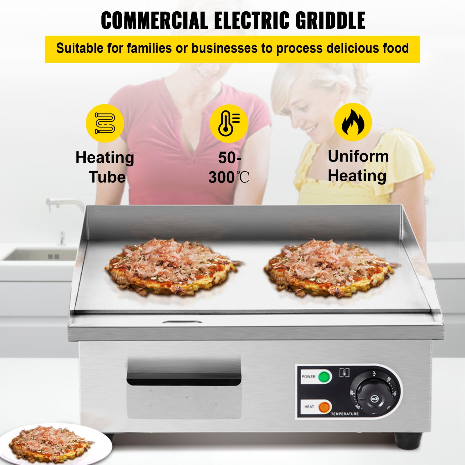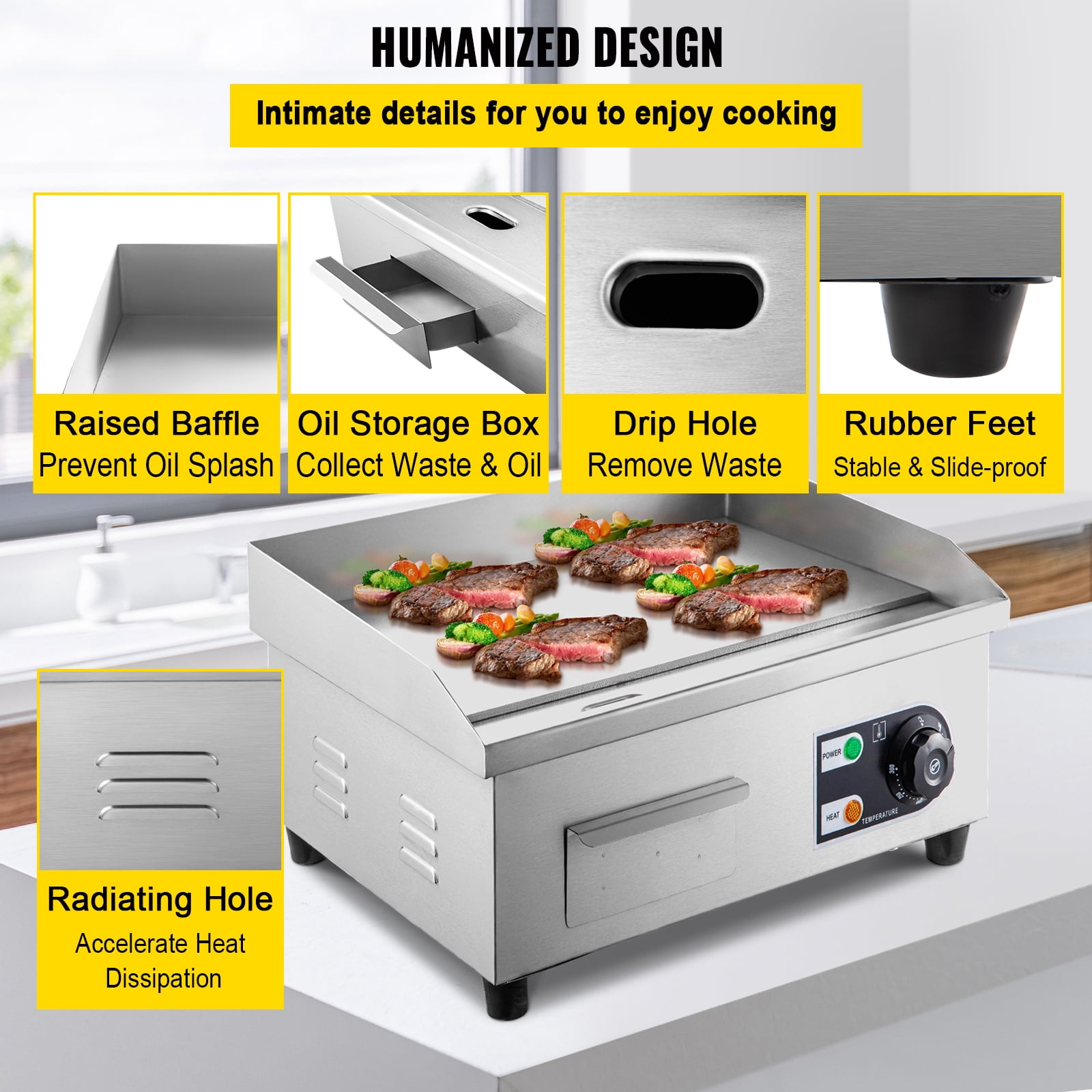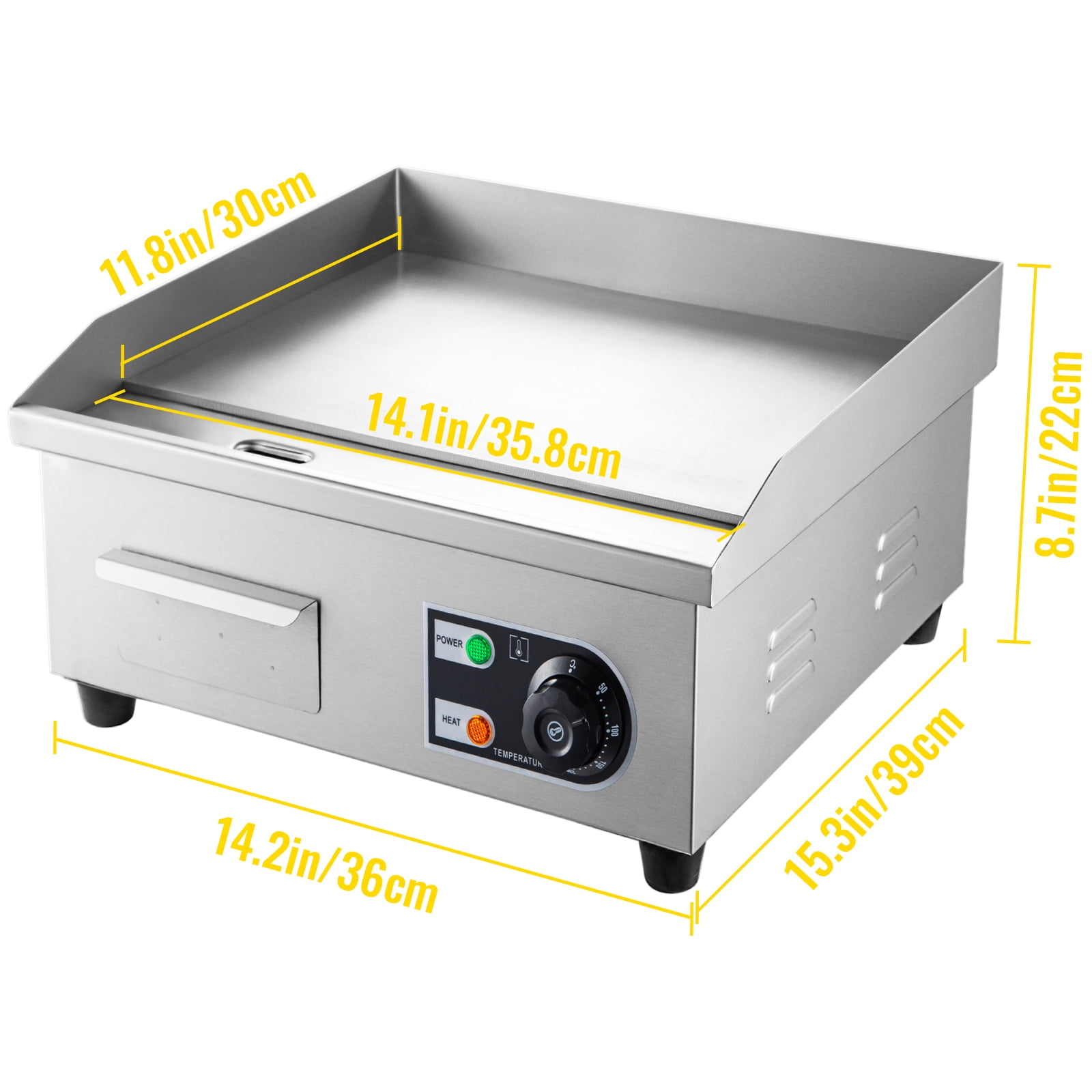 BENTISM 1500W 14″ Electric Countertop Griddle Stainless steel Adjustable Temp Control Commercial Restaurant Grill