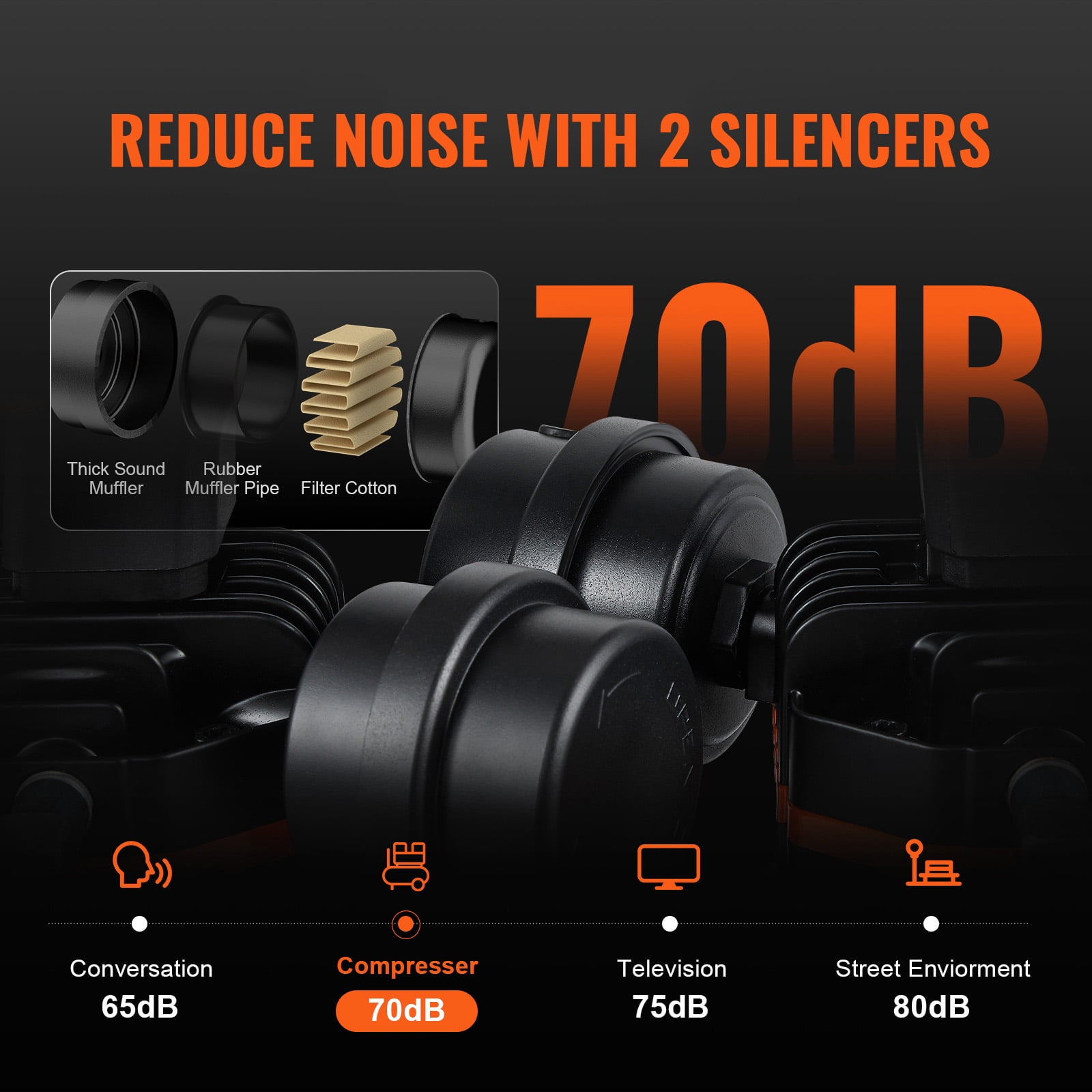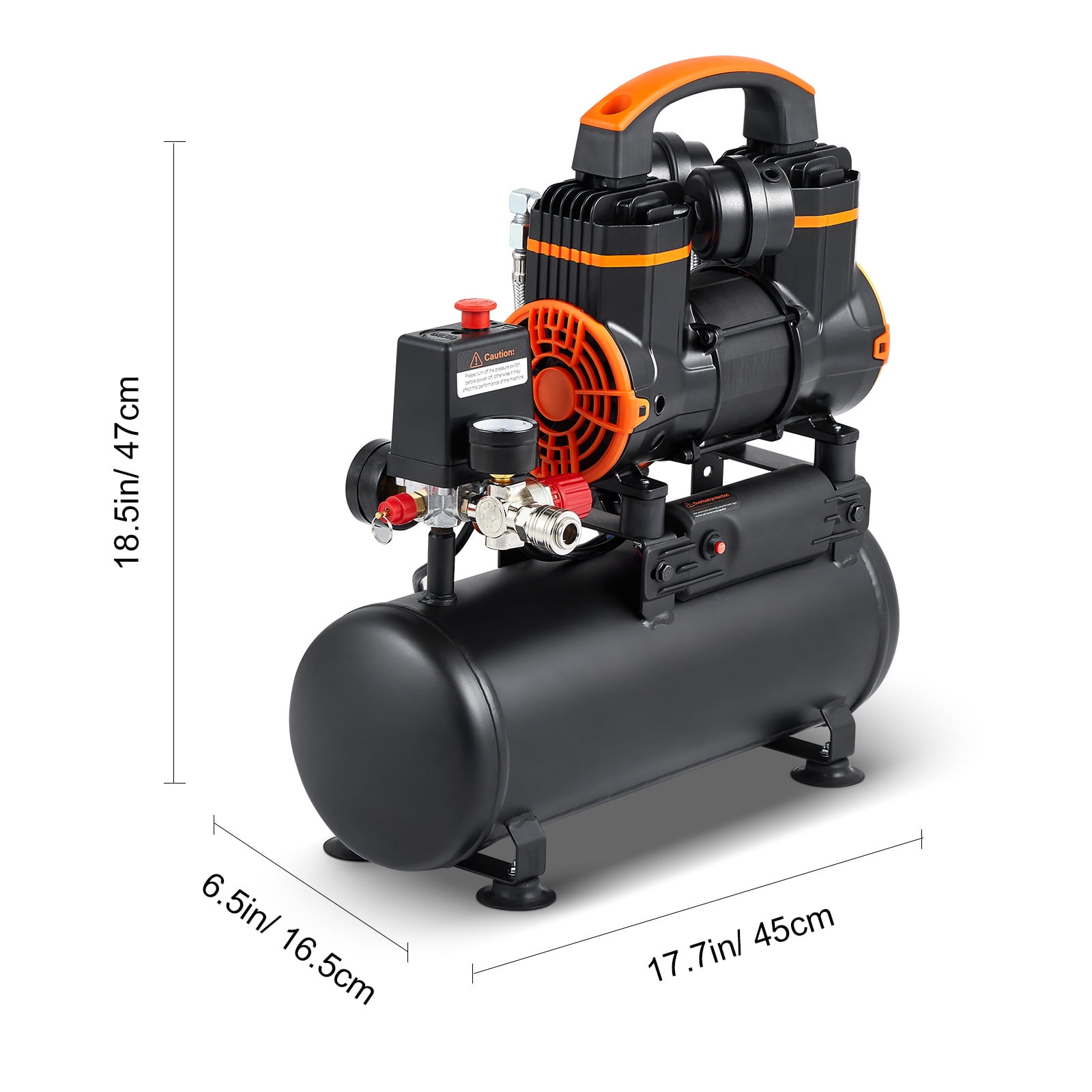 2.1 Gallon Air Compressor: Our 900W oil-free motor drives the compressor up to a speed of 3500 r/min and 2.2 CFM@ 90PSI air delivery. It is ideal for supporting a variety of pneumatic and air tools, such as nail gun, impact wrench, spray gun, pneumatic screwdriver, best for tire inflation, auto repair, spray painting, woodwork nailing, etc. Fast and Efficient Inflation: Our oil-free air compressor adopts double tube and double cylinder intake at the same time, effectively saving time and effort. The intake pipe is made of 392 ℉ high-temperature resistant silicone and stainless steel braided mesh, with double protection to reduce damage and corrosion. All the Power, Without the Noise: BENTISM’S 70 dB low decibels ultra quiet air compressor is built with 2 quality silencers. Each muffler consists of a thickened muffler cover, rubber muffler pipe, and filter cotton. It not only reduces noise, but effectively prevents fine dust from entering. Designed to Withstand: Our electrical air compressor is constructed from a 3-layer process: rust & wear-resistant layer, plastic powder attachment layer, and Q235B structural steel providing durability and ultimate rust resistance. 3.5 Mpa maximum bearing pressure and seamless welding construction ensure the ability to withstand explosions and leakages. Security Comes First: The air compressor tank is equipped with two large cooling fans and automatic overheating protection to prevent damage. In addition, when the current or storage pressure is too high, the compressor will automatically shut off or provide pressure relief protection.