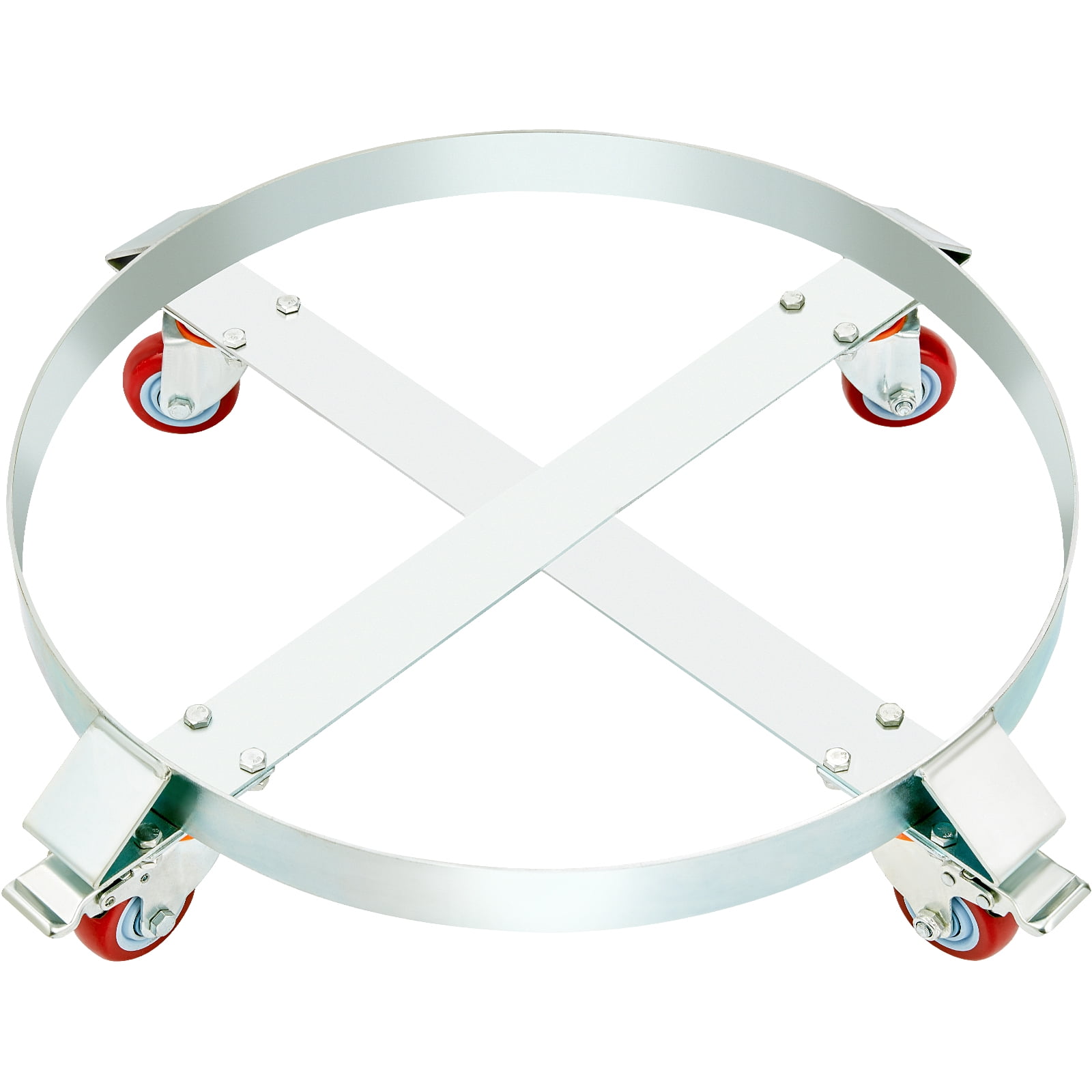 Product Description Your good mate for handling drums! The BENTISM drum dolly has a maximum load capacity of 1,000 lbs, and can handle drums up to 55 gallons. Universal wheels with brakes make it easier for the user to control direction. Choose BENTISM to make drum handling a no-brainer! Stand Up to Pressure The steel drum dolly has 1,000 lbs / 454 kg Max. load capacity and can handle up to 55 gallon drum. Simply place the drum on the oil drum dolly and push it to your desired place with ease. Quality You Can Trust The heavy-duty drum dolly is made of 0.14 in / 3.5 mm carbon steel for high durability. Galvanized surface treatment resists rust and corrosion, extending its service life. Control with Ease The universal wheels are made of Q235+PA6, which are not easily deformed and broken. Universal Wheel Diameter: Ø 3 in / 76 mm, Width: 1.18 in / 30 mm, Installation Height: 4.13 in / 105 mm. Smoothly Welded Cross Straps This oil drum dolly has a cross strap boasting seamless welding craftsmanship against warping and tipping, efficiently securing your load. Unique Wing Design The wings are designed to prevent sagging or tipping. Do not have to worry much about accidents or spills. Wide Application The 55 gallon drum dolly is widely used to transport and maneuver different types of drums or barrels within 1,000 lbs / 454 kg. Specifications Item Model Number: 55-1000-2 Surface Finish: Galvanization Inside Diameter: Ø 23.9 in / 607 mm Inside Depth: 1.97 in / 50 mm Material: 0.14 in / 3.5 mm Carbon Steel Rated Capacity: 55 Gallon / 250L Max. Load: 1000 lbs / 454 kg Color: Silver Universal Wheel Diameter: Ø 3 in / 76 mm Universal Wheel Width: 1.18 in / 30 mm Universal Wheel Material: Q235+PA6 Universal Wheel Installation Height: 4.13 in / 105 mm Service Life: 2 Years Net Weight: 35.27 lbs / 16 kg Product Dimensions: Ø 28.54 x 6.3 in / 725 x 160 mm Package Content 4 x Universal Wheels with Brake 4 x Universal Wheels 32 x M8*16 Screw Bolts 32 x Flat Washers 32 x Spring Washers 32 x Hex Nut 2 x Use Manual