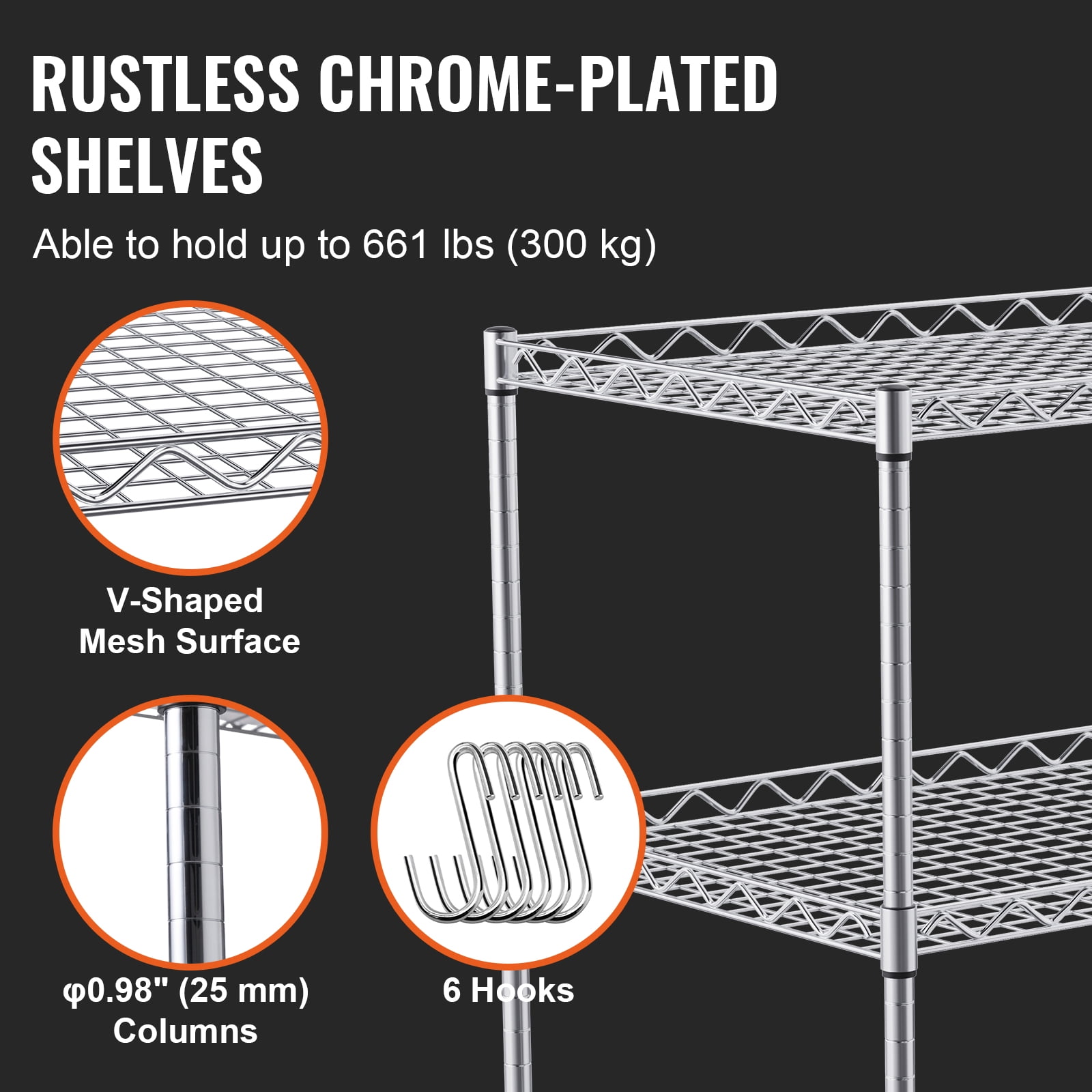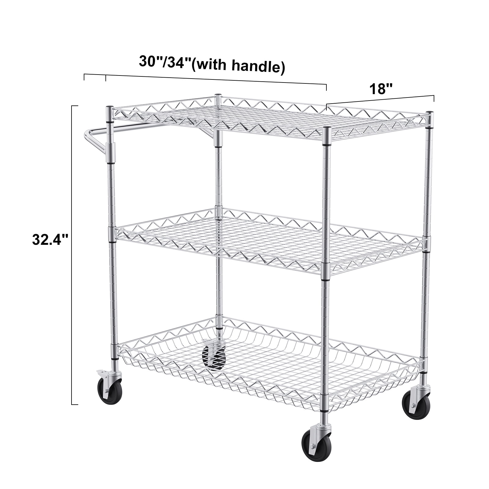 VEVOR 3-Tier Utility Cart Rolling Cart on Wheels 30″x18″x32.4″ 661 lbs 6 Hooks
