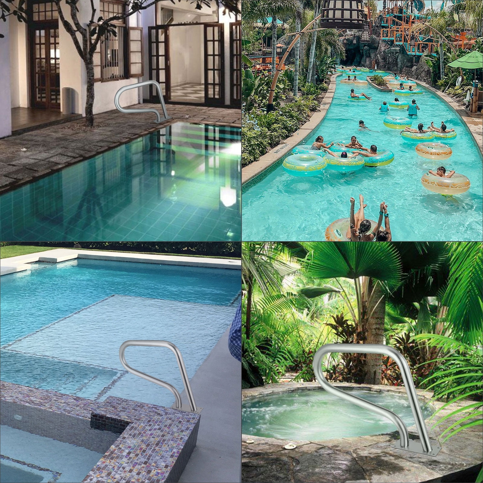 Brand Introduction Bentism is a leading brand that specializes in equipment and tools. Along with thousands of motivated employees, Bentism is dedicated to providing our customers with tough equipment & tools at incredibly low prices. Today, Bentism has occupied markets of more than 200 countries with 10 million plus global members. Why Choose Bentism? 1.Tough Quality Assurance 2.Incredibly Low Prices 3.Fast & Secure Delivery 4.30-Day Free Returns 5.24/7 Professional Customer Service Product DescriptionPool Handrails for Inground The pool step rail is made of solid stainless steel, remaining rustproof for years to come. The 4ft blue grip cover is anti-slip and elastic to provide comfortableness. It is simple to assemble with self-taping screws and a drill bit. Comfortable Cover The elasticated nylon handrail cover is used to reduce the risk of falling. It also can keep the handrail away from hot in the summer. Great Performance The pool safety handrail has a capacity of 250lbs for strong support. The rail is built with a baseplate of 4 mm thickness to fix it on the floor firmly. 304 Stainless Steel The inground pool handrail is constructed with 304 high-strength stainless steel. It is not easy to deform and bend with a tube of 2 mm thickness. Simple to Install The handrail is easy to operate with four φ0.37″ pre-drilled holes. There are full kit accessories of the self-tapping screws and an M8 drill bit for you. Humanized Design The pool rails for inground pool is designed with humanized curve for convenient grasp. It will give you a fabulous experience by decorating your swimming pool. Multiple Functions The spa handrail is the most cost-efficient choice for various places, which is suitable for swimming pool, sloped entry, spa, water park, etc. Specifications Material: 304 Stainless Steel Load Capacity: 250 lbs/113 kg Product Size: 30 x 22″/76.2 x 55.8 cm Product Weight: 11 lbs/5 kg Hole Diameter: 0.37″/9.5 mm Tube Diameter: 1.9″/4.83 cm Tube Thickness: 0.08″/2 mm Base Thickness: 0.16″/4 mm Package Content 1 x Pool Rail 1 x 4ft Grip Cover 4 x Anchors 4 x Nut Covers 1 x M8 Drill Bit 4 x M8*60 Self-tapping Screws