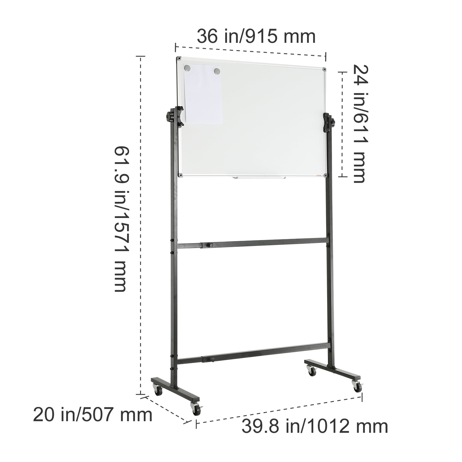 VEVOR 36 x 24″ Rolling Magnetic Whiteboard Double-sided Mobile Whiteboard 360 Degree Reversible Rolling Dry Erase Board Height Adjustable with Lockable Swivel Wheels for Office School Home