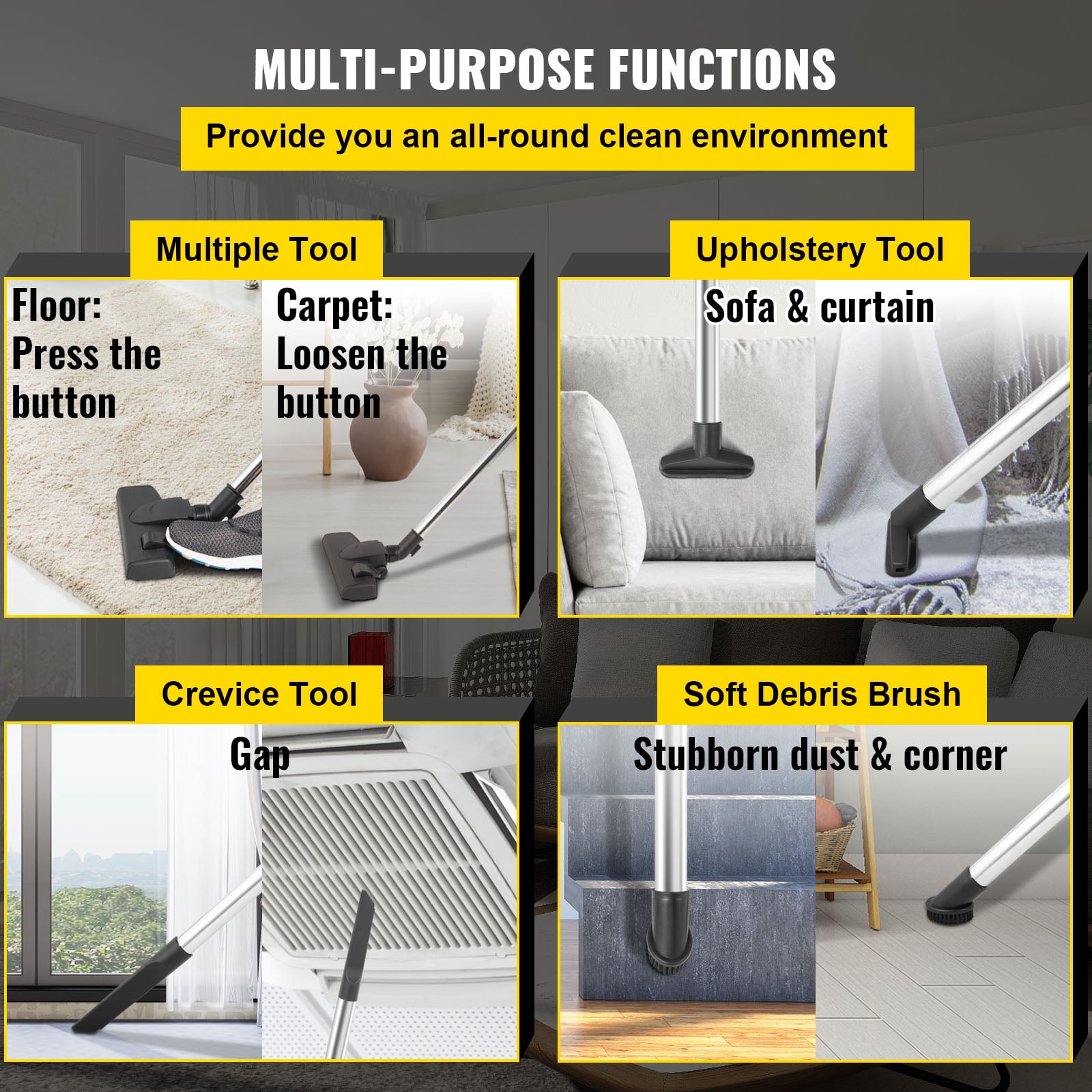 BENTISM 5 In1 HEPA Vacuum Commercial Backpack Powerful & Lightweight: Features a 1000W motor for high-efficiency cleaning. Weighs only 13.4 lbs (6 kg) for easy maneuverability. Ergonomic and adjustable design ensures comfortable use 2 Stage HEPA Filtration: Equipped with dual HEPA filtration for effective debris capture and reduced air pollution. Washable filtration devices allow for multiple uses 5 In1 Multiple Uses: Includes 4 cleaning tools: a multi-surface tool for floors and carpets, a crevice tool for tight spaces, a soft brush for corners, and an upholstery tool for furniture Considerate Details: Features a 59 ft extension cord for extensive reach without changing power sources. A 25 in telescoping wand eliminates the need to bend. Additional features include a noise reduction device, waterproof switch, visual cover for timely cleaning, and a secure steel buckle Wide Application: Ideal for both home and commercial use, suitable for upholstery, floors, stairs, and corners. Perfect for various environments such as homes, offices, shopping malls, and cinemas