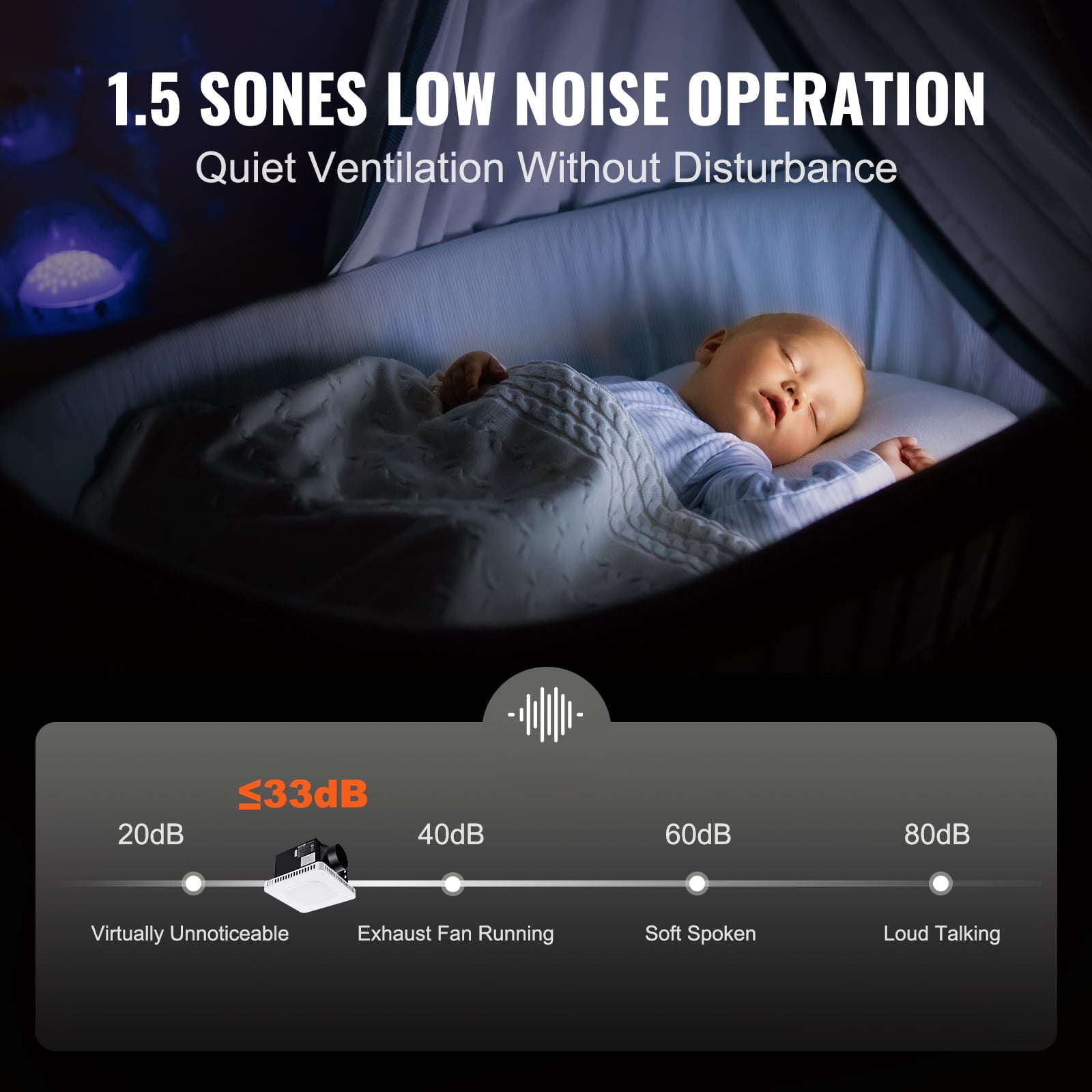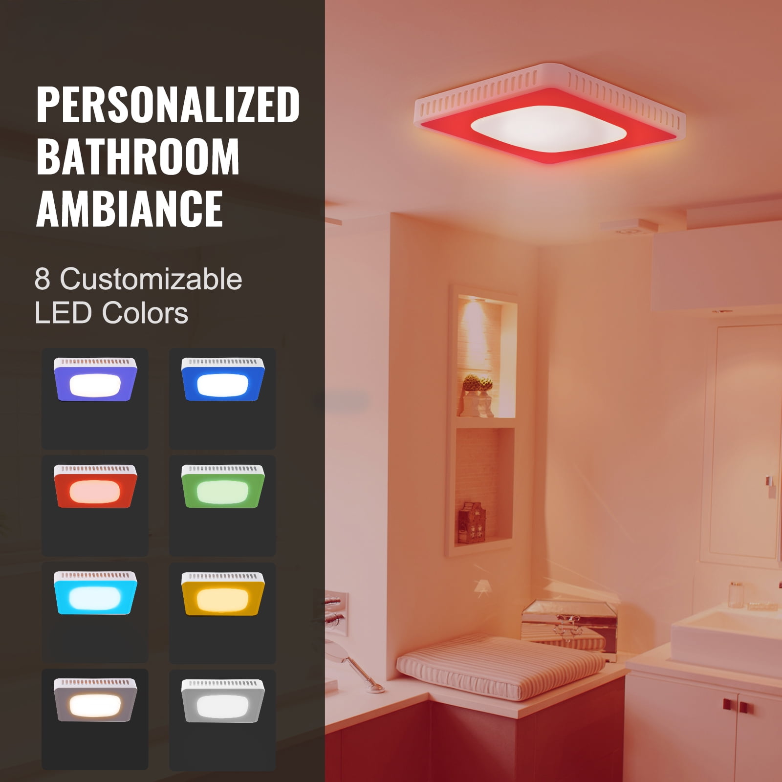 BENTISM 6in Duct 110 CFM 28W 120V Plastic Bathroom Exhaust Vent Fan 1.5 Sones, 6-Speed – White LED Lighting and Ventilation in One: Combines LED lighting and ventilation for versatile use. The soft, glarefree LED light provides 900LM with adjustable color temperatures (3000K/4000K/5000K) for various tasks Quiet Operation: Features a silent airflow pathway and lightweight PPFR plastic impeller to minimize noise, with noise levels ≤33 decibels (1.5 sones) for a peaceful indoor environment 110 CFM Adjustable Airflow: Equipped with a highquality motor offering a maximum airflow of 110 CFM, suitable for spaces up to 110 sq. ft. Includes six adjustable fan speeds and flexible timer settings (0.5h, 1h, 1.5h, 2h) for energy savings Easy Installation: Designed for hasslefree installation with a cutfree design and ceilingmounted ventilation. No attic access required, with ceiling cutout dimensions of 7.68 x 7.6 in (195 x 193 mm) Moisture and Corrosion Resistance: Features a galvanized steel housing that withstands highhumidity conditions, ensuring reliable performance even in humid environments