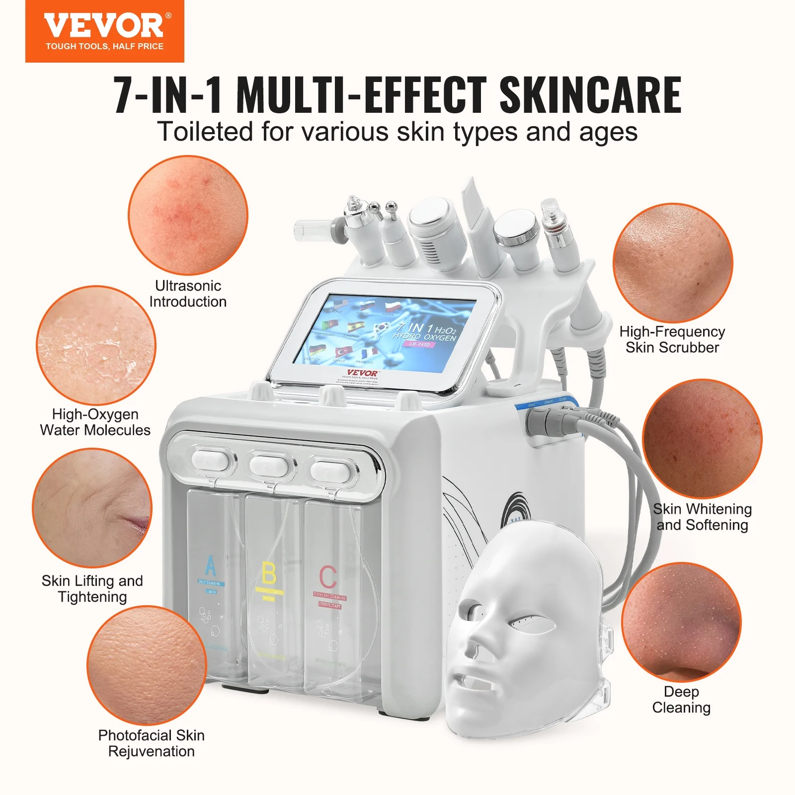 Youthful Skin Revival: Renew your skin’s radiance with BENTISM’s 7-in-1 hydrogen oxygen facial machine. It includes 6 skincare probes and 7-color light beauty mask, enhancing ultrasonic introduction, deep cleansing and hydration, skin tightening, anti-aging, and more, catering to various skin types and ages. Deep Cleansing and Hydration: Our high-suction hydrogen oxygen cleaning pen effectively removes dirt and impurities, while the high-density ion spray pen ensures moisture reaches the deepest layers of your skin. Revitalize your skin and leave it brighter with this professional hydrafacial machine. Brighten Your Beauty: The low-temperature ice hammer enhances collagen production and tightens pores, restoring elasticity for firmer skin. Coupled with our RF radiofrequency probe, it improves concerns like under-eye bags and laugh lines for a youthful, contoured appearance. Enhanced Skincare Routine: Add your preferred beauty serum to the provided ABC functional bottles, and use them with the hydrogen-oxygen cleaning pen. It effectively removes skin impurities while delivering essential nutrients, improving your skin’s texture. Soft Touch to Start: The 7-inch intelligent touchscreen of hydro facial machine allows quick access to functions with a soft touch. Equipped with rotary knobs for easy flow and suction adjustments, it offers straightforward, and time-saving use.