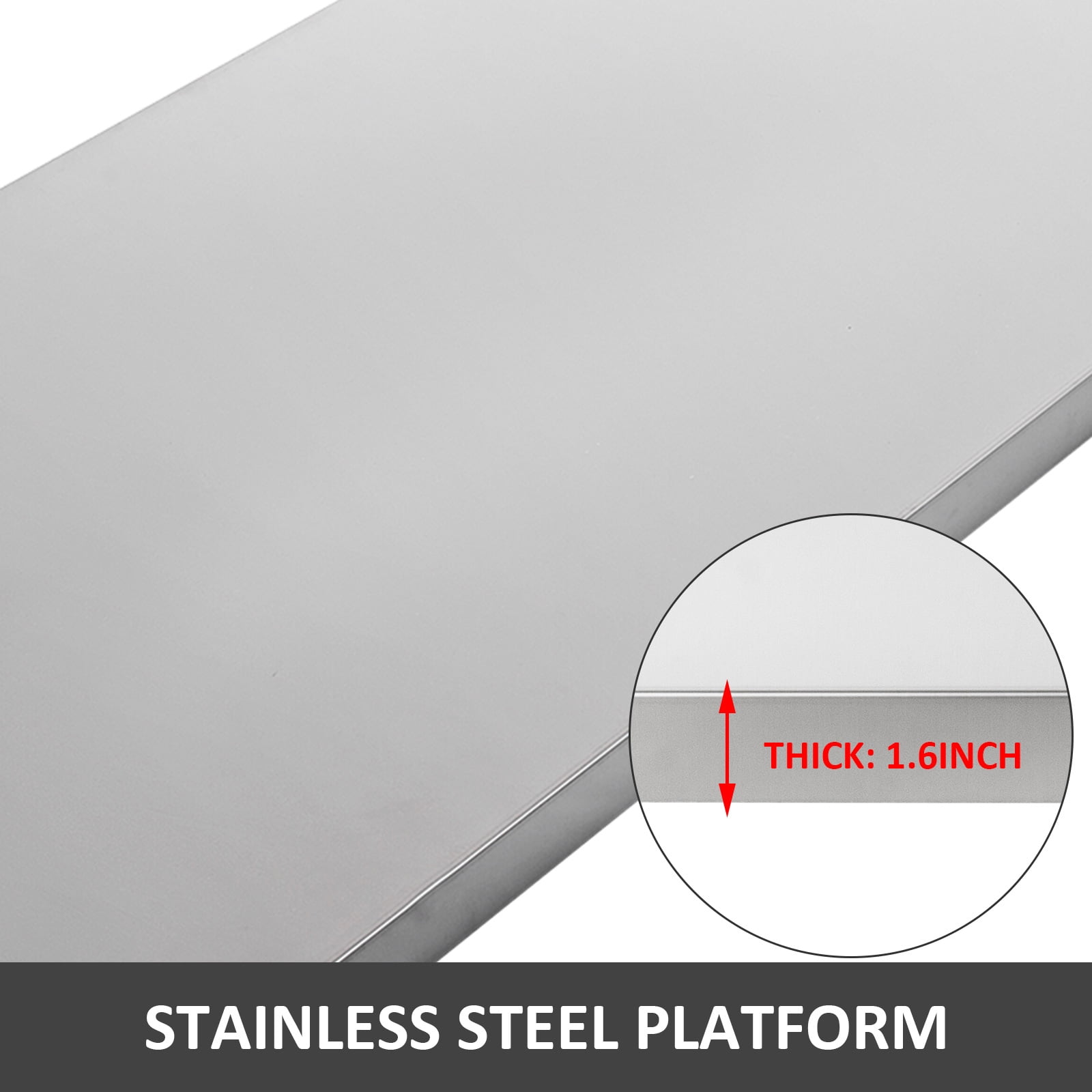 Product Description 700LBS Livestock Digital Scale This is a multi-use and heavy-duty digital scale to weigh small and large items easily by adding this digital vet scale to your office or kennel. Its 40.6×20.9″(103 x 53cm) stainless steel platform is large enough for some Llamas and Alpacas yet accurate enough for smaller breeds of dogs. Livestock scales also can be utilized in a variety of places, including postal, shipping, warehouse,etc. 700lbs Large Capacity 700 lbs/317kg Max capacity to weigh small and large items. Stainless Steel Platform Constructed from stainless steel platter for wear-resisting and anti-corrosion, this hog scale is built to last. LCD Display Screen Equipped with an LCD screen with vivid bright backlight, the large dog scale is more convenient for you to use and operate. Portable Handle Weighing 40lbs, this scale with a portable lifting handle is designed for easy carrying and hidden room to storage. Built-in Libra Feet Four adjustable feet for the different ground surfaces can be easily re-calibrated at any time. Various Uses Great for a veterinary office or to have on the farm and also can be utilized in a variety of places, including postal, shipping, warehouse or it can be used as an athlete or aviation scale. Specifications Material: Stainless Steel Max Capacity: 700 lbs/317kg Platform Size: 103 x 53cm / 40.6×20.9″ Power By: Power Adapter or 4 X AA Battery Weight: 26 lbs/12 kg Package Content 1 x Digital Scale 4 x Adjustable Feet 1 x Power Adapter 1 x One Metre Ruler