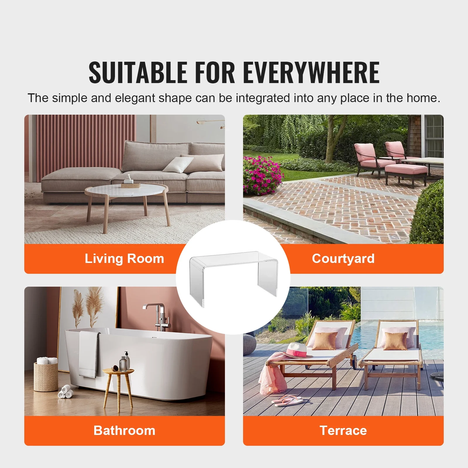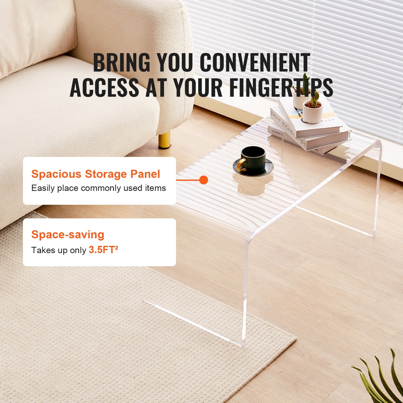 VEVOR Acrylic Coffee Table 32″ C-Shaped Clear Acrylic End Table 16.3 in high Transparent Acrylic Side Table, for Coffee, Drink, Food, Snack used in Living Room, Courtyard, Terrace