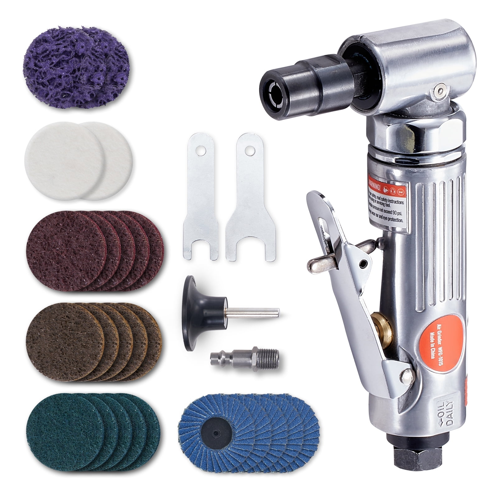 BENTISM Air Die Grinder, 1/4″ Right Angle Die Grinder 20000RPM with 24PCS Discs for Grinding, Polished Color Angle Pneumatic Die Grinder, Rust Removal