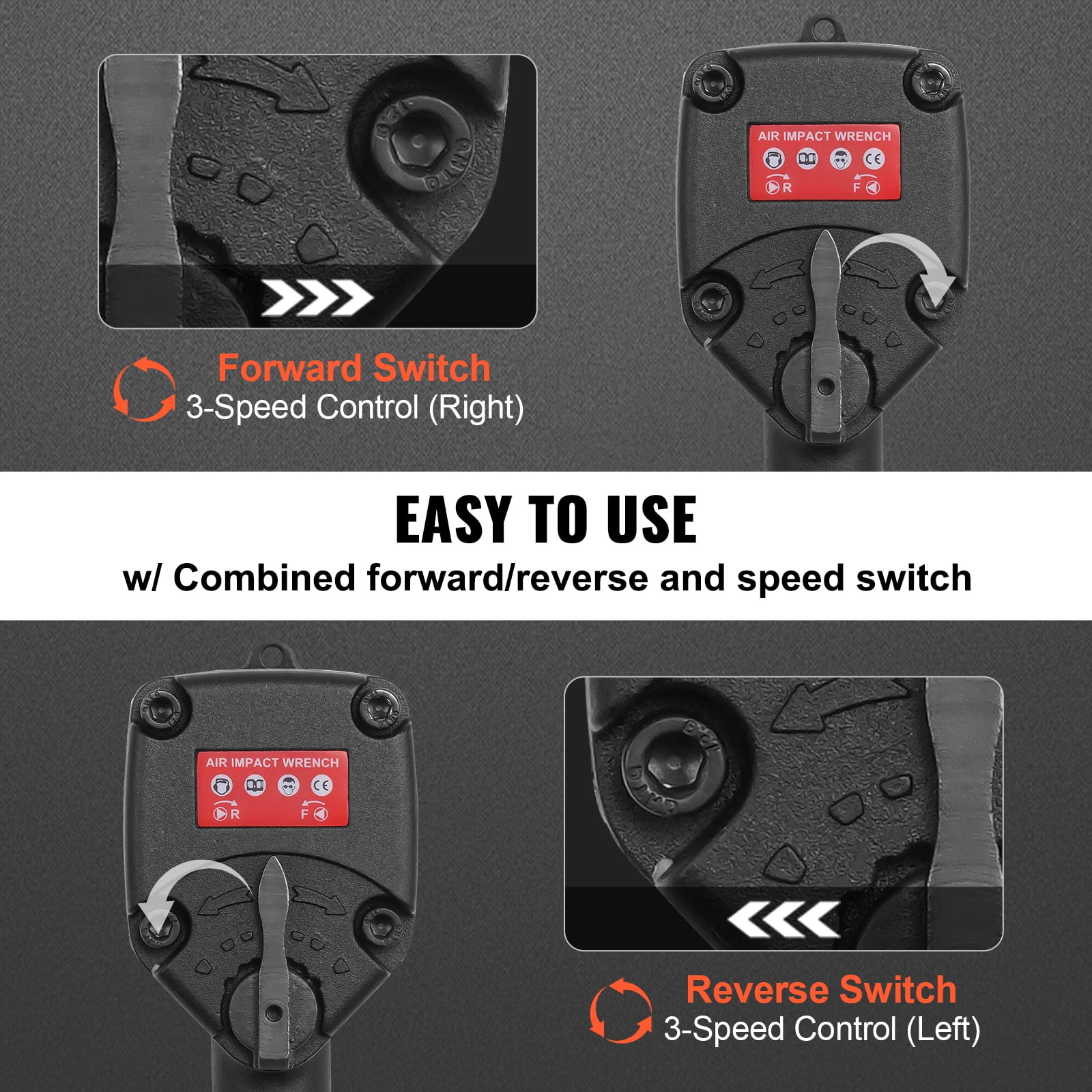 VEVOR Air Impact Wrench, 3/8-Inch Drive Air Impact Gun, Up to 690ft-lbs Nut-busting Torque, Lightweight Pneumatic Impact Wrench for Auto Repairs and Maintenance