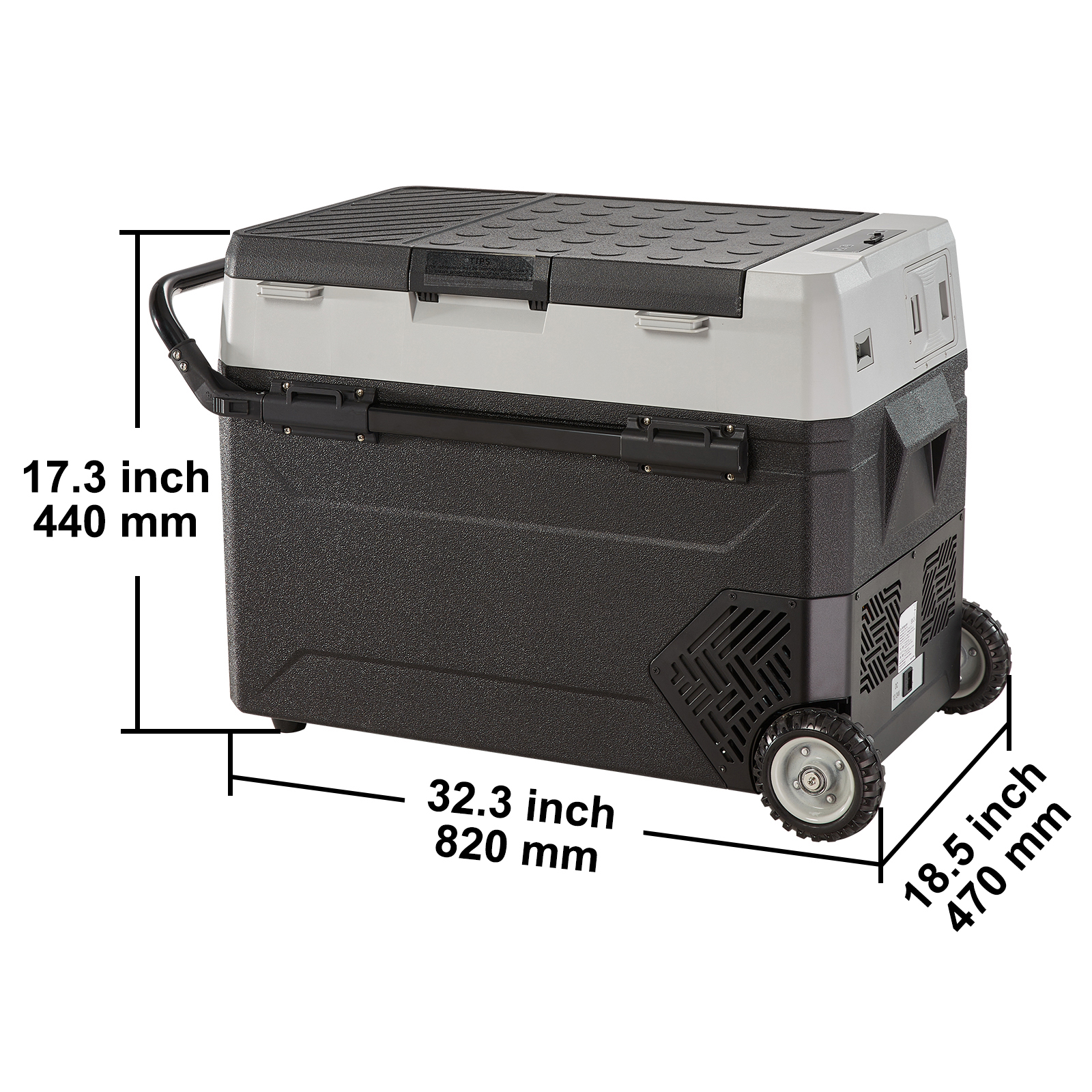 Product Description Car Refrigerator Our compressor car fridge is the ultimate companion for outdoor adventures. It cools rapidly, operates quietly, and is energy efficient. With dual-zone temperature control and a generous 40QT capacity, it’s versatile and perfect for family and car use. Packed with user-friendly details, it’s the ideal choice for convenience on the go. High Capacity Our 40QT car refrigerator provides ample storage space for all your needs. With upgraded compressor technology, it ensures rapid refrigeration in just 1.5 hours. And maintain the integrity of the body within a temperature range of -4°F to 158°F. Fast Cooling Adjust the temperature between -4°F to 50°F. The refrigerator features two separate areas that can be used for insulation or refrigeration, providing the perfect solution to store your beer, beverages, fruits, ice cream, meats, and more. Quiet and Efficient Operating at less than 45db, our car refrigerator won’t disturb your peace. With a power consumption of only 0.708 kw.h per 24 hours, it ensures efficient performance and can maintain optimal operation even at inclinations of up to 45 degrees. Enhanced Convenience The built-in cup holder keeps your drinks secure and prevents spills. The side handles make transportation easy, while the 4 leveling feet stabilize any surface. Enjoy the thoughtful details of our portable car refrigerator. Dual-Use for Family and Car Our car refrigerator comes equipped with a 138-inch/3.5m car cigarette lighter wire and a household conversion plug, enabling seamless usage at home, yachts, RVs, cars, trucks, vans, and more. Experience convenience and versatility wherever you go! Safe to Use The fridge also features three levels of battery protection (low, medium, and high) to safeguard against overload or short circuits in your vehicle’s power supply. Specifications Item Model Number: J38 Voltage: AC 100~240V (50/60Hz); DC 12/24V Power: 60W Power Consumption: 0.708 kw.h/24h Capacity: 38L / 40QT Refrigerant Type/Charge Amount: R134a/36g Net Weight: 20.4Kg / 45lbs Noise Level: Below 45DB Liner Material: HIPS Shell Material: PP+ABS Product Size: 820 × 470 × 440 mm / 32.3 x 18.5 x 17.3 inch Package Content 1 x Car Refrigerator 1 x Adapter 1 x 3.5m/138 inch Car Cigarette Wire 1 x Tray Table
