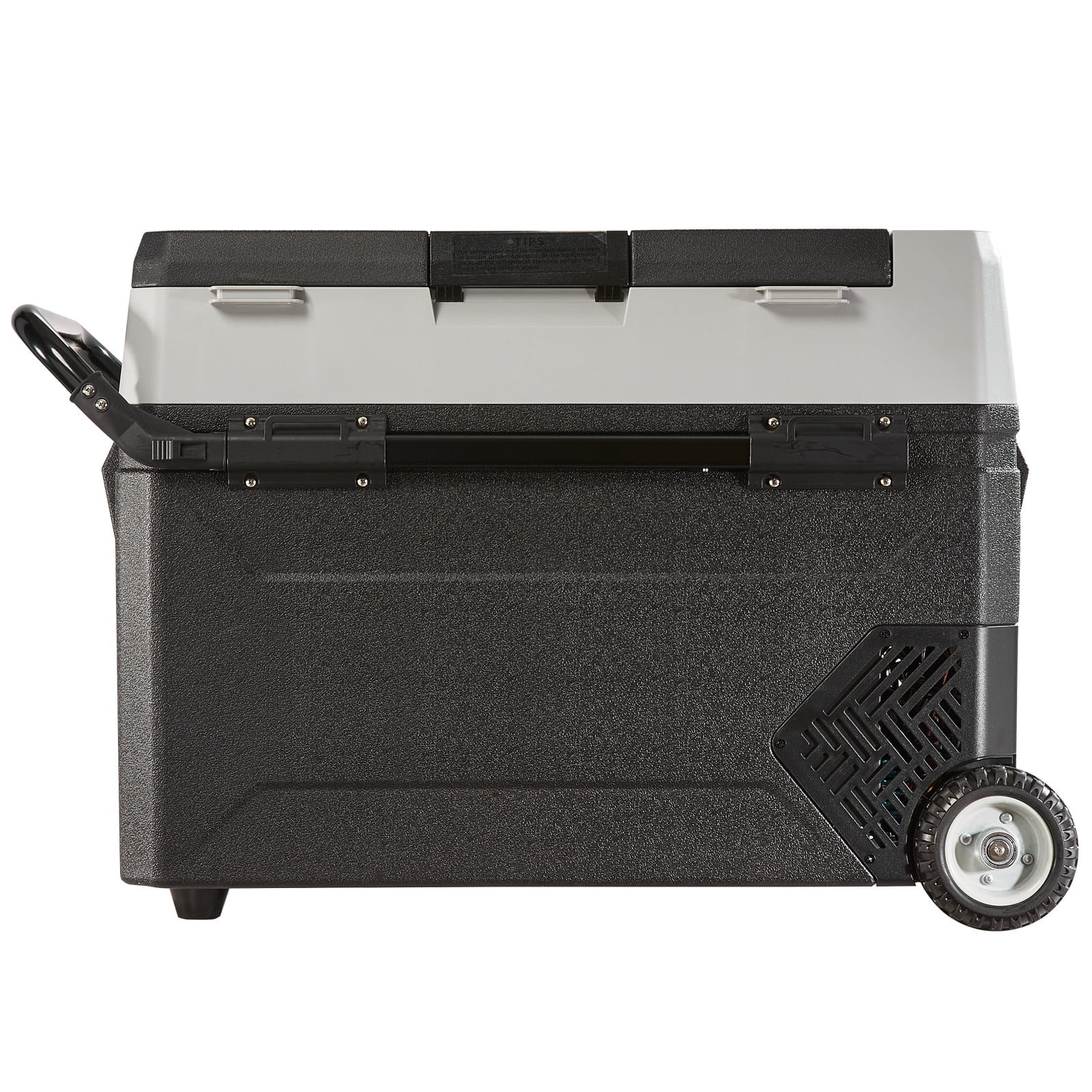 Rapid Cooling: Experience quick and efficient cooling with our mini car fridge. Equipped with an upgraded compressor, it can cool from 77°F to -4°F in just 1.5 hours, ensuring your beverages and food stay refreshingly chilled. It even performs flawlessly at a 45° inclination, making it the perfect companion for outdoor adventures or work on the go. Quiet and Energy Efficient: Our mini car fridge consumes only 0.708 kw.h of energy per 24 hours, providing impressive energy efficiency that saves power. And its boasts whisper-quiet operation, emitting less than 45db of noise when running. You can focus on your work or enjoy a peaceful night’s sleep without disturbance. Dual-Zone Temperature Control: The two zones can be customized for insulation or refrigeration purposes, and the temperature can be adjusted between -4°F to 50°F to suit your specific needs. With a generous total capacity of 40QT, you can easily refrigerate and store an assortment of beverages, fruits, meats, seafood, and more, ensuring you have everything you need for your daily adventures. Versatile for Family and Car Use: The mini fridge comes with a 138-inch/3.5m car cigarette lighter line and a household conversion plug, enabling you to use it in various settings, including your home, yacht, RV, car, truck, or van. The fridge also features three levels of battery protection (low, medium, and high) to safeguard against overload or short circuits in your vehicle’s power supply. User-Friendly Designs: This car refrigerator is designed with convenience in mind. It features smooth rollers and convenient handles for easy mobility. The internal LED lights provide clear visibility of the interior. Additionally, it includes a charging port for your phone and a digital display to adjust the temperature. The cup holder ensures the secure placement of your drinks.