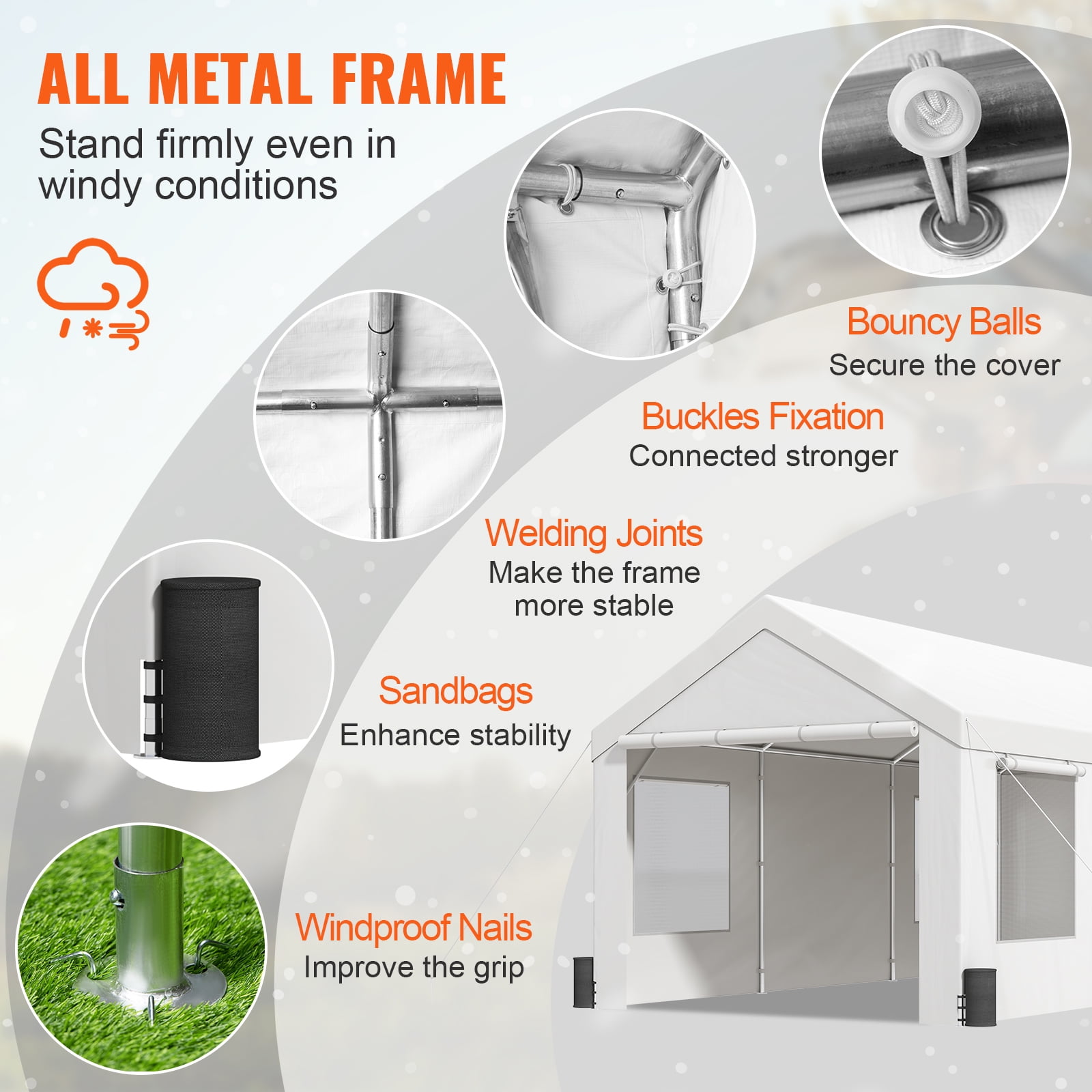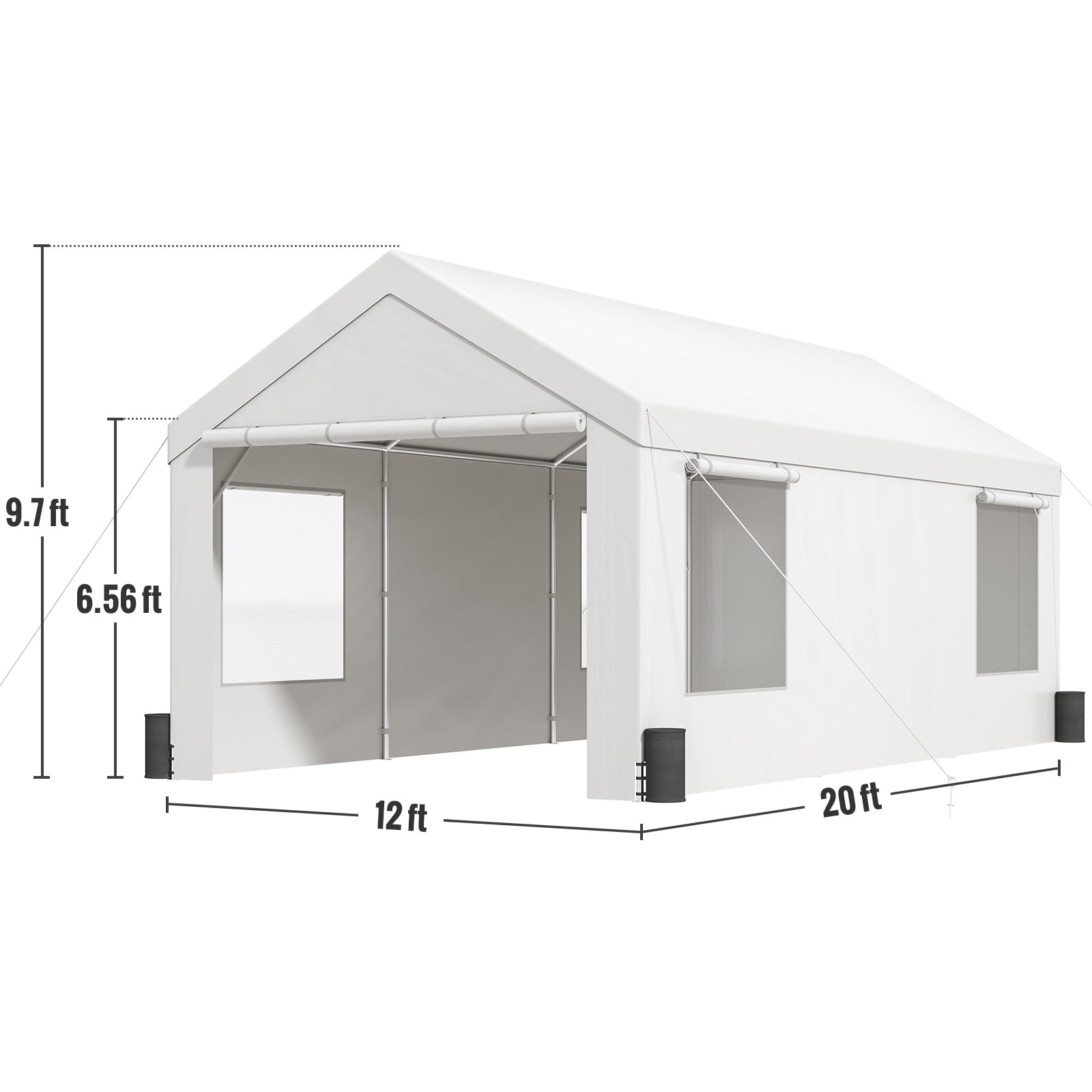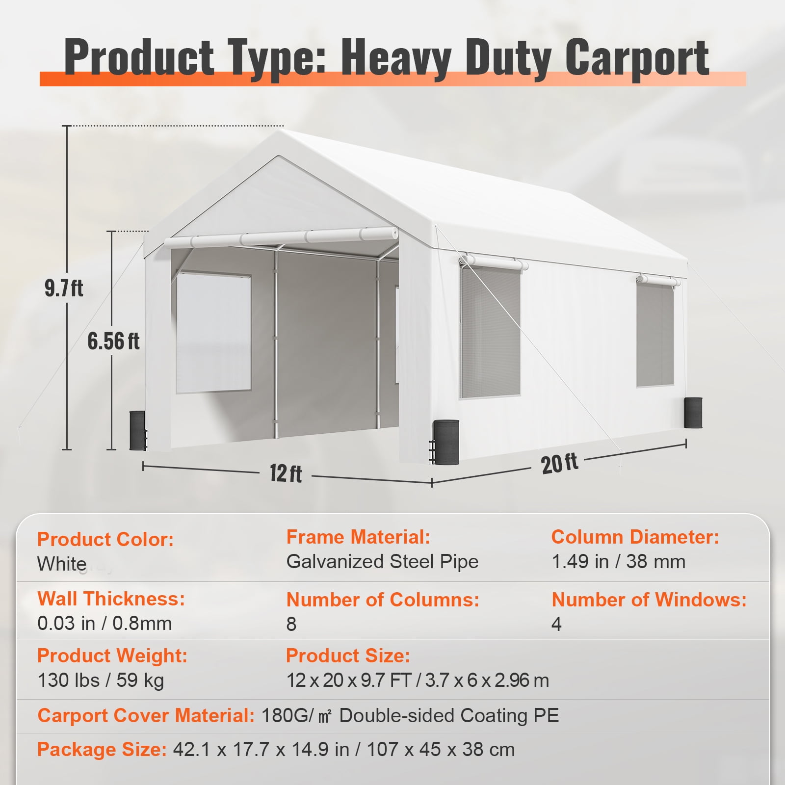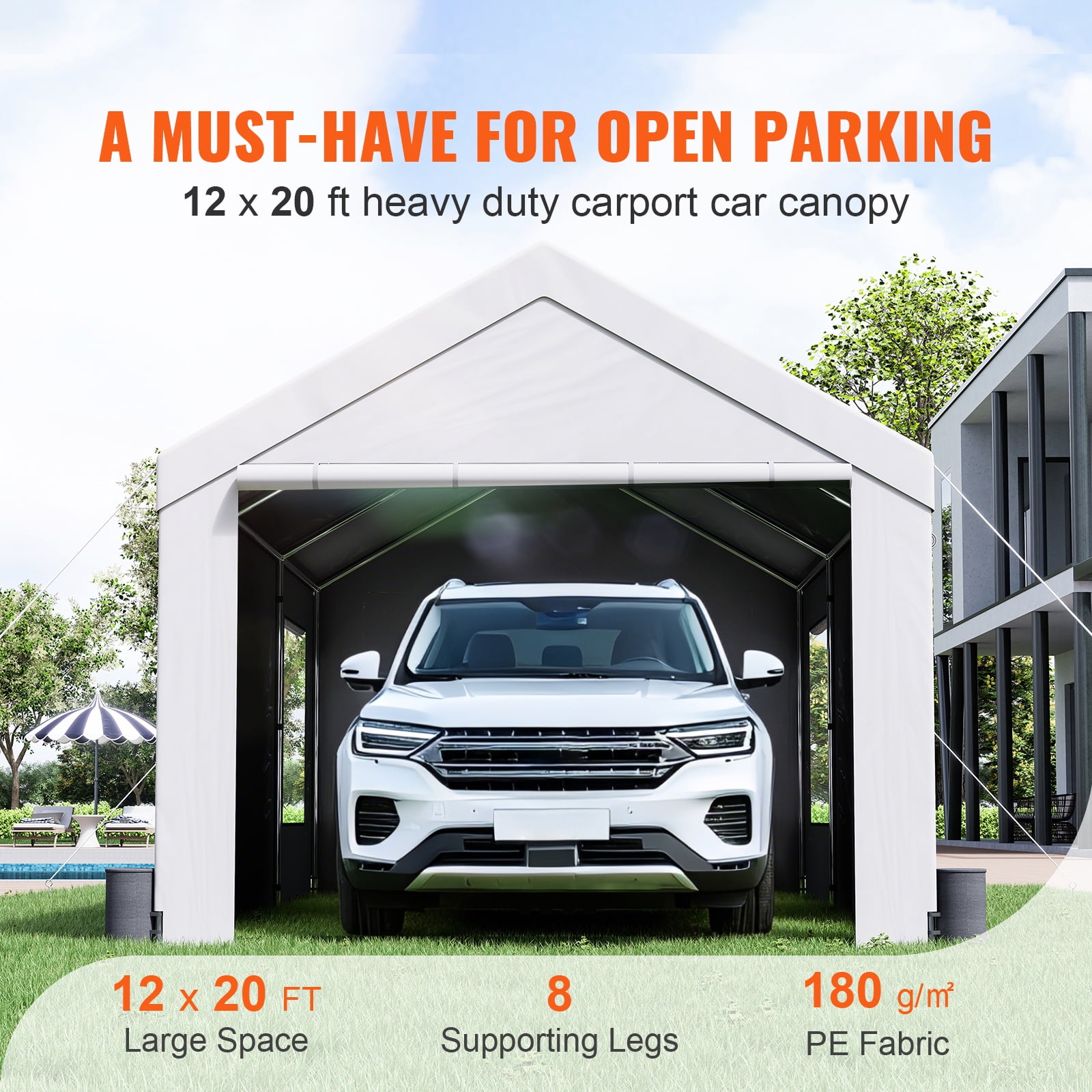 VEVOR Carport Car Canopy Garage Shelter 12x20ft & 8 Legs Sidewalls Windows