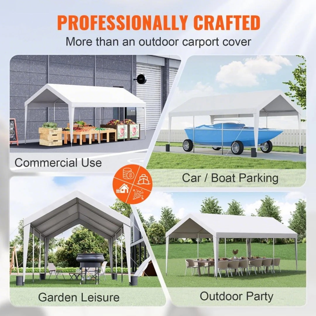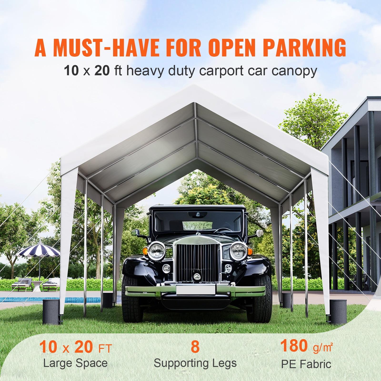 VEVOR Carport Car Canopy Garage Shelter Tent 10x20ft with 8 Poles for Auto Boats