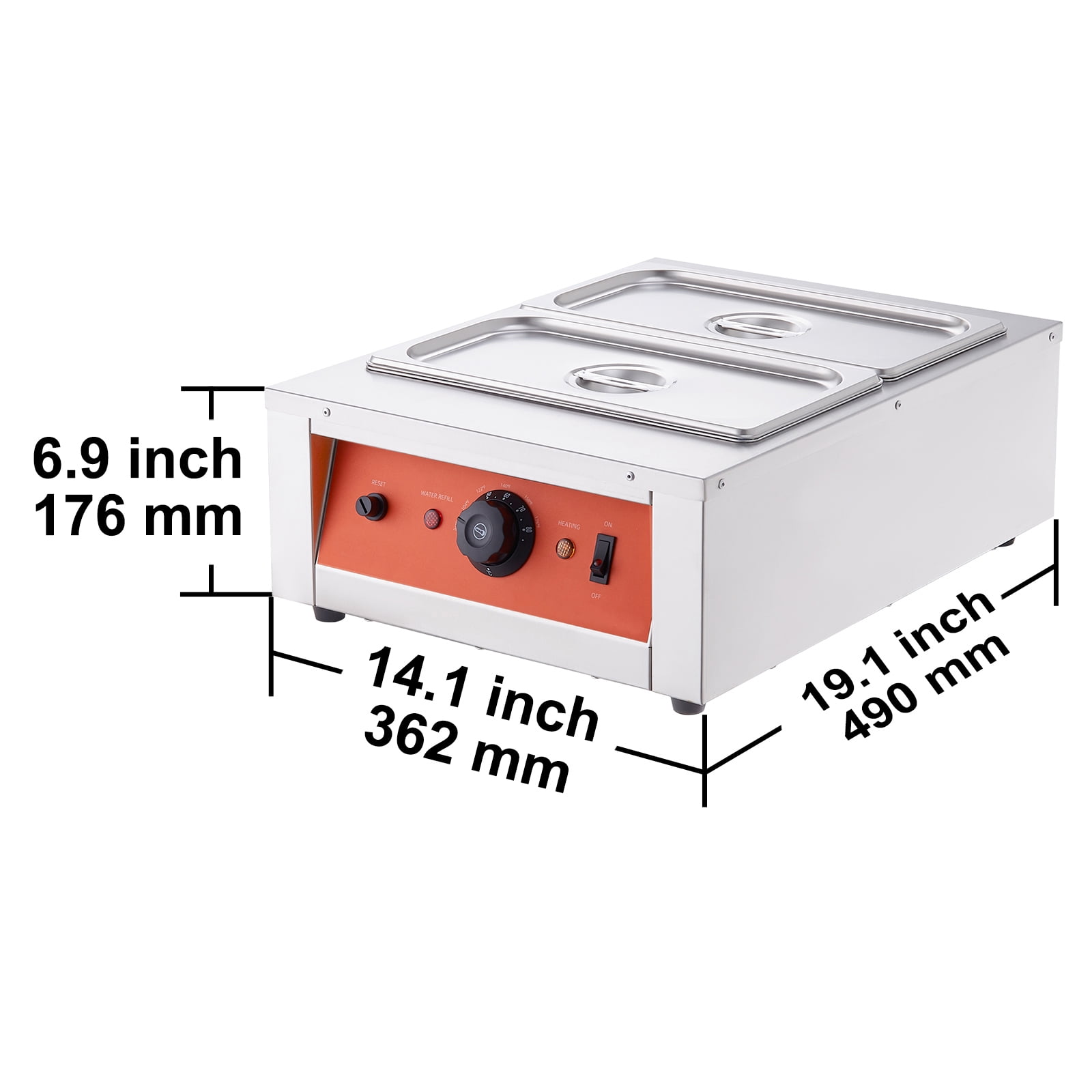 Fast Heating Speed: Operating at a high power of 1500W, the internal M-shaped heating tube and water bath heating ensure quick heating without chocolate sticking to the bottom. The chocolate is evenly heated, resulting in better fluidity of the mixture and smoother sauces. The maximum water level line on the inner wall of the pot prevents water overflow, while the minimum water level line prevents dry-burning, thus extending the lifespan of the chocolate tempering machine. 304 Stainless Steel Body: The entire electric commercial food machine body is made of heavy-duty food-grade 304 stainless steel, equipped with detachable pots and a clean and hygienic dust cover, providing excellent insulation and heat preservation performance. Precise Temperature Control: The temperature can be manually adjusted within the range of 86℉-185℉ (approximately 30℃-85℃), ensuring more accurate temperature control. This electric commercial food warmer can meet your different heating needs and melt various types of chocolate blocks with high efficiency, allowing for immediate melting and usage. 2 Large Capacity Cylinders: This stainless steel chocolate melter pot includes 2 independent cylinders. You can use one for melting chocolate and the other for melting milk or cream, which helps to improve efficiency in both work and daily life. Each pot has a capacity of 3.75 qt, serving a large number of people simultaneously. Versatile Use: This professional heated chocolate melter is suitable for heating and melting chocolate blocks, butter blocks, cream, milk, and more. It is suitable for various occasions, such as family gatherings, hotel restaurants, and bakeries.