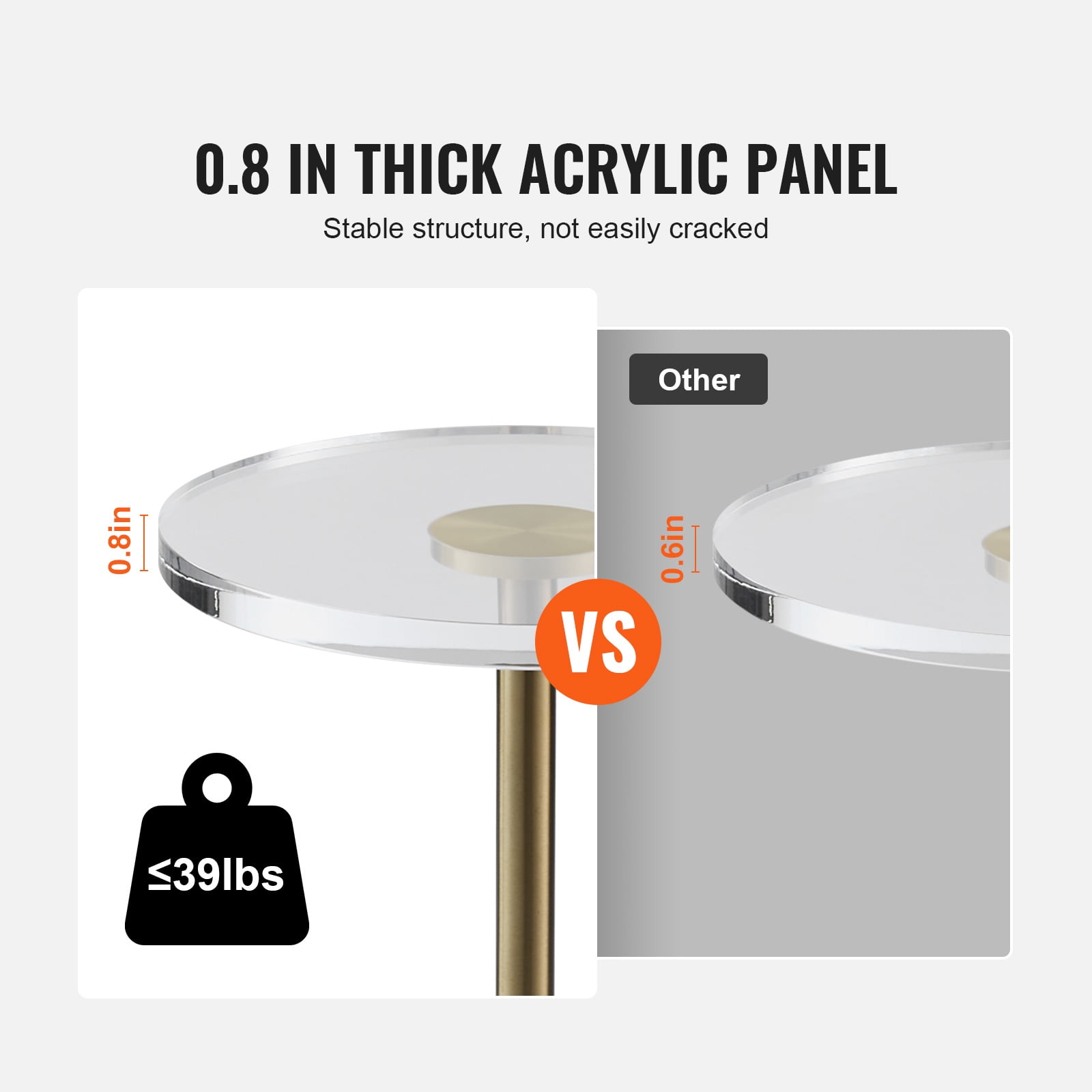 VEVOR Clear Acrylic End Table, Acrylic Side Table with a Solid Base, 11.9 x 11.9 inch Round Tabletop, 21.4 inch High, for Coffee, Drink, Food, Snack used in Living Room, Bedroom, and Study