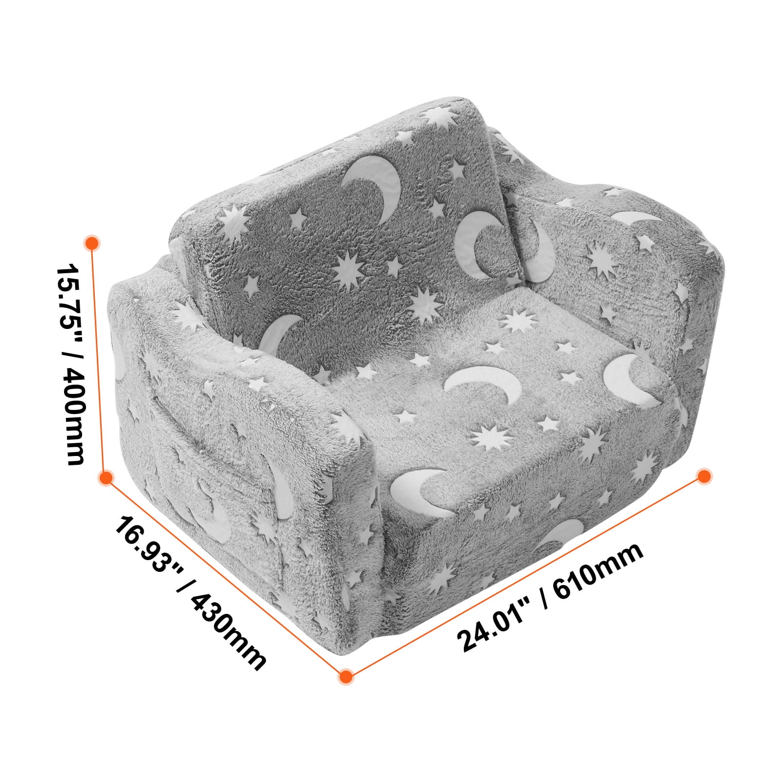 VEVOR Cozee Flip-Out Chair – 2-in-1 Convertible Chair to Lounger for Kids Glow in The Dark Toddler Chairs GRAY