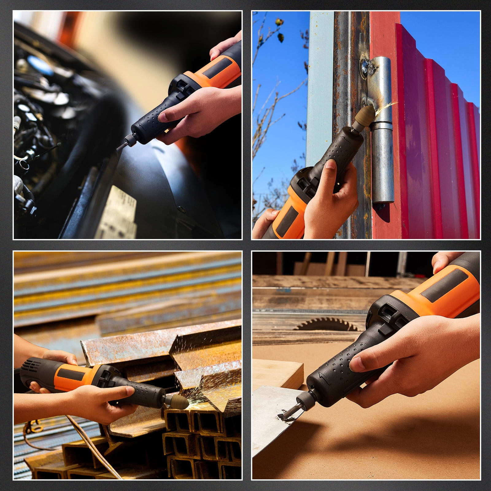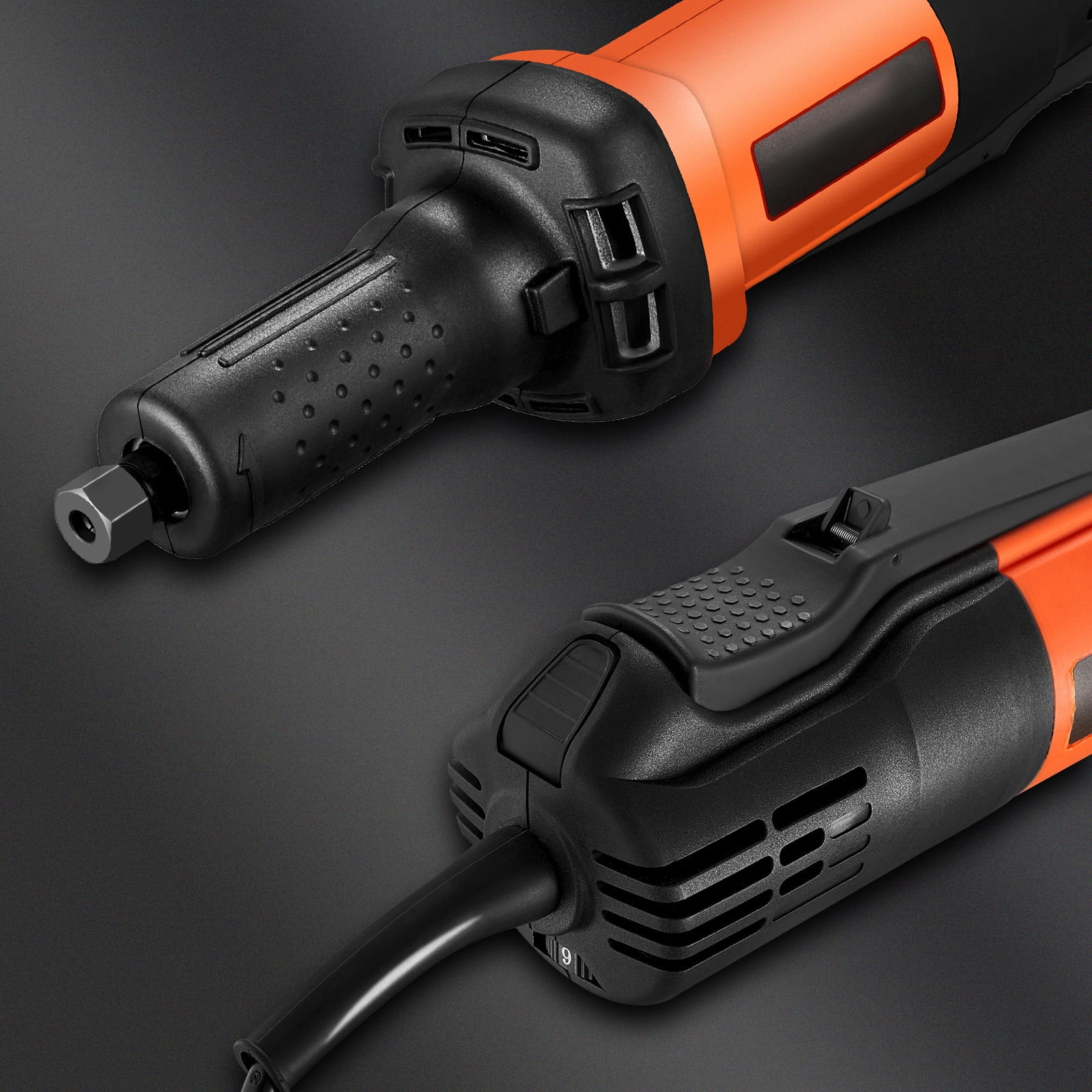 Unleash Your Power: The BENTISM Die Grinder features an industrial-grade motor with exceptional torque, faster output, and a durable design, all while weighing just 1.9KG for easy and flexible use. It’s capable of performing medium to heavy-duty load processing tasks in professional settings. Adjustable Speed: With 6 speed settings, 7000-30000 RPM, easily adapts to any professional task. The lower speeds are perfect for slow grinding and rust removal, while the higher speeds are great for material removal, which can meet the needs of fine work or rough machining. Multi-Functionality: Comes with 1/4″ and 1/8″ collet heads, making it compatible with a variety of accessories. Allowing it to do rust removal, polishing, sanding, grinding, milling, carving, and sharpening – it’s a true multi-tasking tool! Quiet Operation: Unlike air die grinder that require a compressor and produce loud noise, this electric die grinder operates quietly. Its silent operation and high-performance motor make it an excellent choice for professional and home use. User-friendly Design: The flow-through ventilation system quickly dissipates heat, while the “safety switch” ensures safe operation. The soft handle makes it comfortable to grip, giving you a smoother and quieter experience. Buy it today and say goodbye to the hassle of grinding, polishing, and cutting job!
