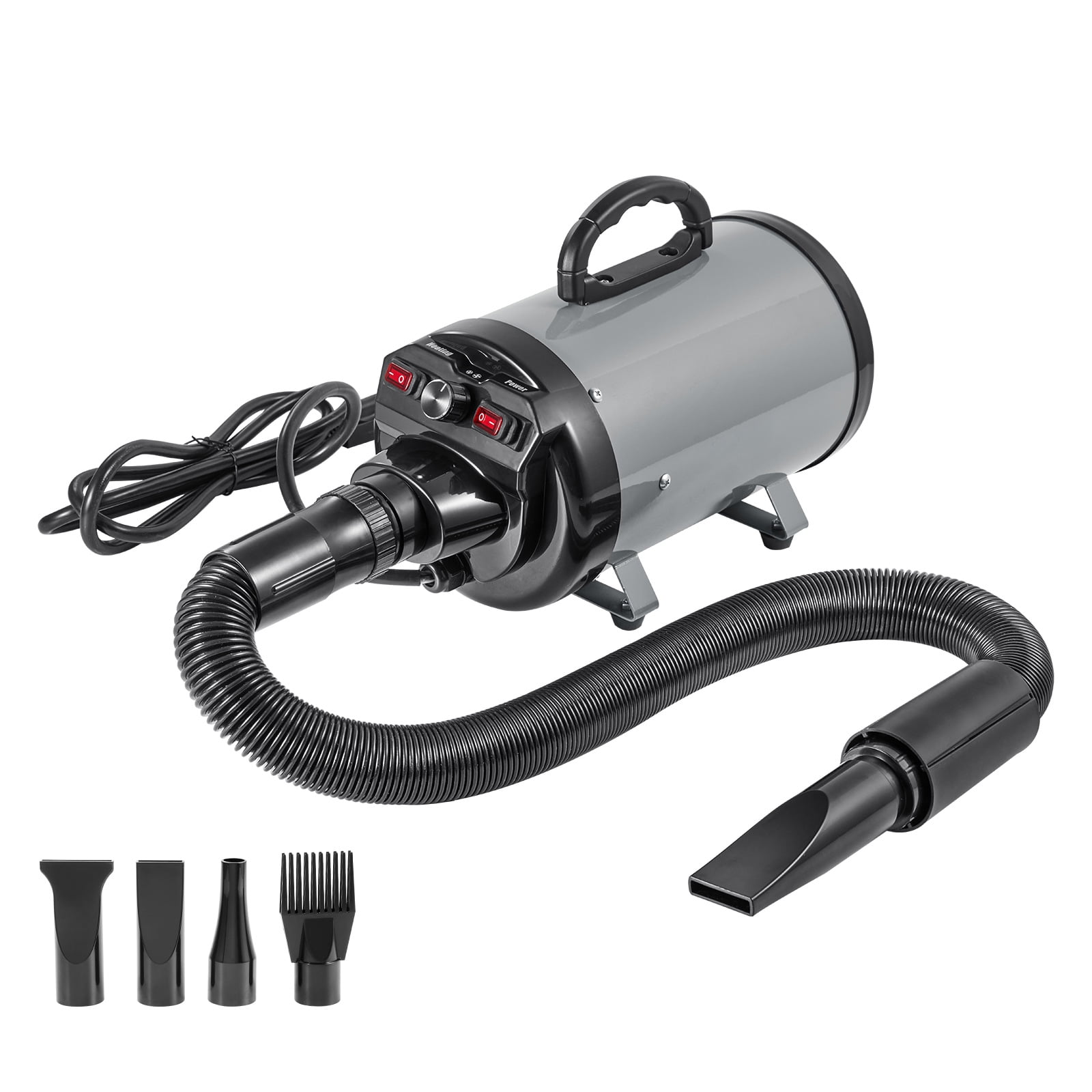 Product Description High power 2000W pet dryer Our dog dryers feature a robust and stable 2000W/2.7HP motor with a maximum wind speed of 70m/s and a temperature control range of 85°F to 130°F. Suitable for all types of pets, ensuring that their fur dries quickly and saves time. Overheat automatic shutdown Our dog dryers are equipped with bimetal sensors that automatically cut off the power when the temperature is too high, effectively reducing the failure rate. The internal metal housing is designed for long-term use, and the bracket on the dryer accelerates heat dissipation, preventing excessive temperatures, plastic odors and other potential hazards. The hand-held handle is designed for easy access, while effectively protecting your hands from heat burns. Temperature and wind speed are adjustable The temperature and wind speed can be adjusted through the button, the temperature can be adjusted from 30 ° C to 54.4 ° C, and the cold and hot wind can be freely selected throughout the year. The wind speed can also be adjusted according to the pet’s coat type, size and sensitivity. For pets that require gentle drying, choose a lower wind speed setting. Dual temperature control can also help you dry quickly and improve your grooming efficiency. Complete accessories An adjustable retractable hose ensures thorough care for all parts of your pet, and four interchangeable nozzles cater to different pet sizes and body areas. This makes drying more efficient. More comfortable to use. Safe and caring Just connect the hose and start using the pet dryer right away, without complicated installation steps. Base design, more stable, and can effectively waterproof. 78-inch long power cord, can meet the drying requirements of different distances, more convenient and free movement. Thickened metal shell and noise reduction structure, the dryer works at a lower volume than similar products, reducing noise, suitable for sensitive dogs, will not be frightened. Insulating material integrated shell, effective flame retardant heat insulation, built-in double temperature control protection system, more safe use. 94 “retractable hose The length of the hose can be adjusted as needed, extending from 28 “to 94″, giving the dog hair dryer a wider operating range and more flexibility in use. Whether you are dealing with small or large pets, it can meet your needs. The hose is resistant to high temperature, ensuring safety. Pet dryer dog grooming Our dog hair dryer is designed for pet bathing. With a powerful 2000W/2.7HP motor, 70m/s high wind speed, double safety, let you peace of mind. With 4 different sprinkler heads, it can meet the needs of different parts of different pets. The 28″-94” retractable hose ensures easy drying and easy use. Specifications Item Model Number: STL-1909 Input Voltage/Frequency: AC120V, 60Hz Motor: 120V, 10.8A, Speed 29000 RPM Power: 1900-2000 W/2.5-2.7HP Highest Temperature (°C) (10-15cm from the Air Outlet): 55°C ± 3°C Highest Temperature (°C) (Air Outlet): 60°C ± 3°C Max Wind Speed: 70 m/s Color: Grey + Black Main Material: Iron + ABS Rubber Pad Material: Natural Rubber Telescopic Pipe Material: PVC Air Outlet Nozzle Material: ABS Heat-Insulated Sponge Material: PU Sponge/Foam Product Weight: 3.5 kg/7.7 lbs Product Size: 440×160×200 mm/17.3×6.3×7.9 inch Package Content 1 x Pet Dryer 4 x Nozzles 1 x Hose