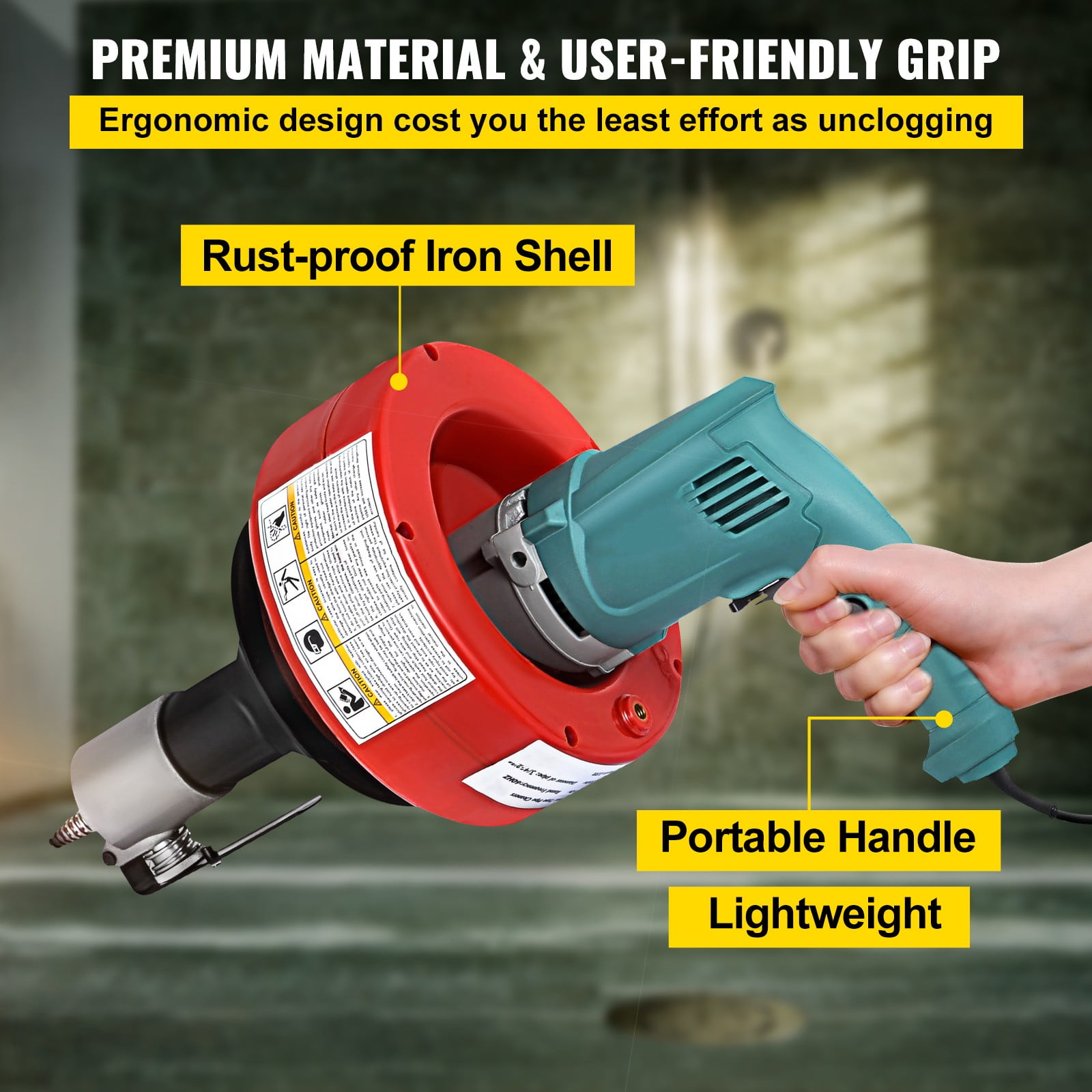 The Portable Electric Drain Cleaner is suitable for both professional and domestic use. The 700W machine is equipped with a powerful motor that turns the spiral clockwise and counter-clockwise at 800 RPM. The three-stage switch turns the spiral in the desired direction or stops the rotation. The whole drain cleaning machine has a small size so that it is convenient for you to carry and use it. Spiral adapter is suitable for winding outlets and for small diameter pipes. The drill heads can be easily coupled together with the cleaning spiral by means of the T-slot coupling. Wide Application: Applicable for toilet, wash basin, floor drain, kitchen, bathroom, floor sewer. You can use it in your home, kitchen, bathroom and even your office area.