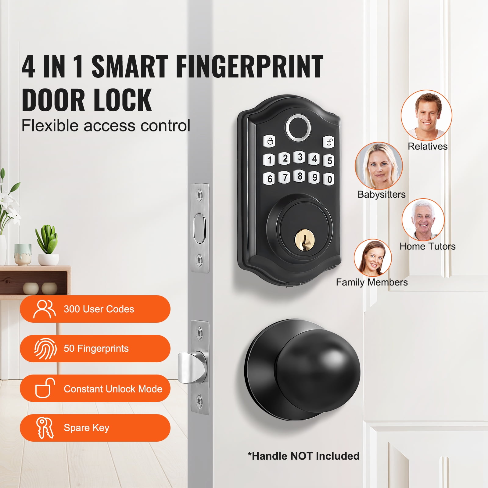 Unlock Your Way: Say goodbye to traditional locks! Our fingerprint door lock provides multiple unlocking methods -you can choose the fingerprint, password, or key for access. You can even set up to 300 unique passcodes and 50 fingerprints for family and friends. Plus, our advanced biometric fingerprint recognition is lightning-fast at 0.2 seconds with a 99% accuracy rate, combining security with convenience. Exceptional Weather Resistance: Come rain or shine, our keyless entry door lock stands strong. The aluminum alloy panel ensures durability in temperatures ranging from -22°F to 158°F (-30~70℃), while its IP63 waterproof rating allows it to function flawlessly in any weather. It’s sunproof, waterproof, and freeze-resistant, suitable for both indoor and outdoor use, providing reliable home security. Long-lasting Battery: Our door lock is energy-efficient, requiring infrequent battery changes. Four AA batteries can power it for up to a year, providing extended usage. When the battery is running low, the indicator light turns red to prompt timely replacement, ensuring a convenient and intelligent user experience. One-time Password & Anti-Peeping Code: We’ve taken password protection to the next level. One-time passwords provide convenience for temporary guests, automatically clearing after use for enhanced security and efficiency. The anti-peeping virtual code safeguards your privacy – you can input any digits before and after the correct password as long as it contains the correct sequence, effectively preventing peeping. Easy Breezy Access: Set your fingerprint door knob to auto-lock in 5-69 seconds – no more wondering if you locked the door, making it perfect for homes with seniors and children. Pressing any key for 2 seconds manually locks the door quickly. Got a party? Frequent comings and goings? We’ve got you. Flip the “Constant Open” switch, and the door won’t lock automatically. Super flexible!