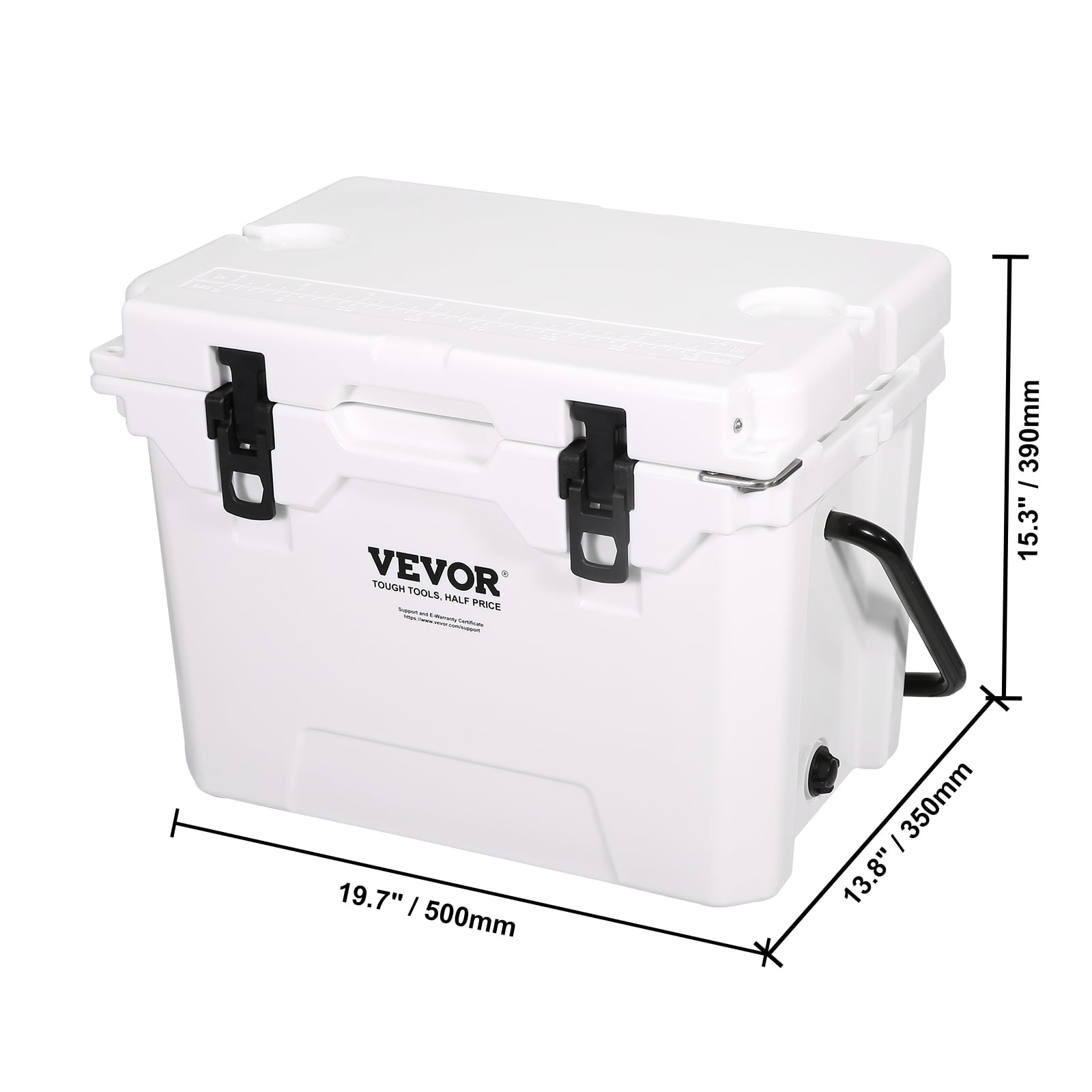 Chill Times? They’re Epic: Forget about lukewarm drinks and spoiled food. Our hard cooler, with 2 inches of closed-cell foam insulation and a commercial-grade silicone seal, can keep your food and drinks cool for an impressive 6 days. Whether it’s a beach trip or a camping holiday, enjoy refreshingly cool bites and sips every time. Say Hello to Roomy Storage: Our ice chest, a spacious 25 qt buddy, can store about 20-25 cans of your favorite 12 oz soda. But it doesn’t stop there! Pack in your BBQ meats, fresh fruits, or whatever your heart (and stomach) desires. Adventure and feasting go hand in hand, right? Rock-Solid Yet User-Friendly: Constructed with strong LLDPE plastic, this cooler is a fighter against UV rays. But the beauty is in the details: a food-grade interior for safe storage, a 360° rubber gasket, and robust latches for an iron-clad seal. This cooler is in it for the long haul, ready to resist impact and corrosion without sweat. Grab-and-Go Ease: Picture this: a compact cooler with high-strength PVC woven rope handles that fit perfectly in your car trunk. Now, that’s a road trip partner! Whether you’re heading for a picnic or camping out, we’ve designed this camping cooler to be your trusty travel companion. Designed with You in Mind: Our large cooler’s quick-flip latch is designed with a finger-grab opening for quick access to your snacks and drinks. But there’s more: non-slip foot pads for stability, cup holders, and even a fish scale on the lid. Grab your drink, measure your catch, and enjoy the good times.