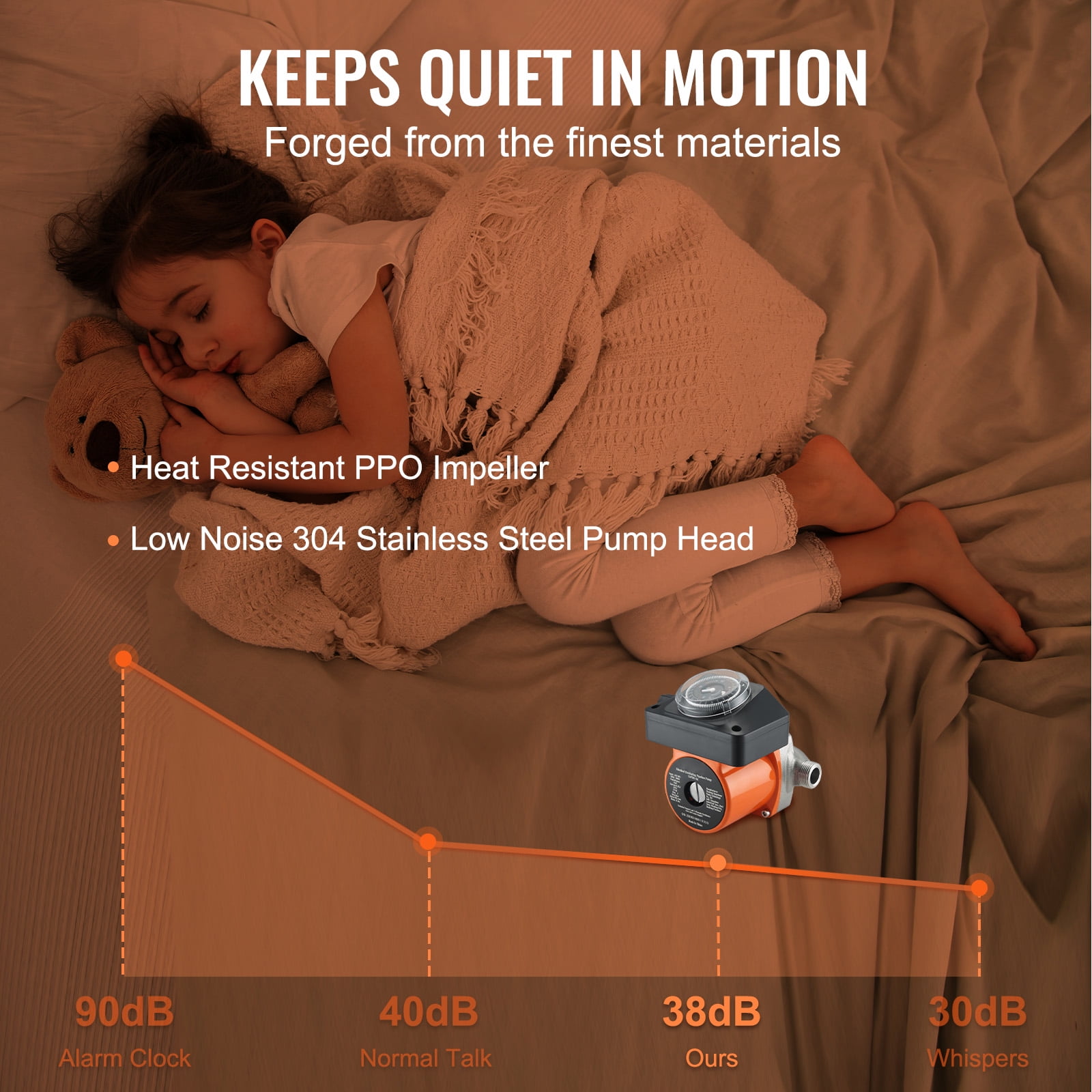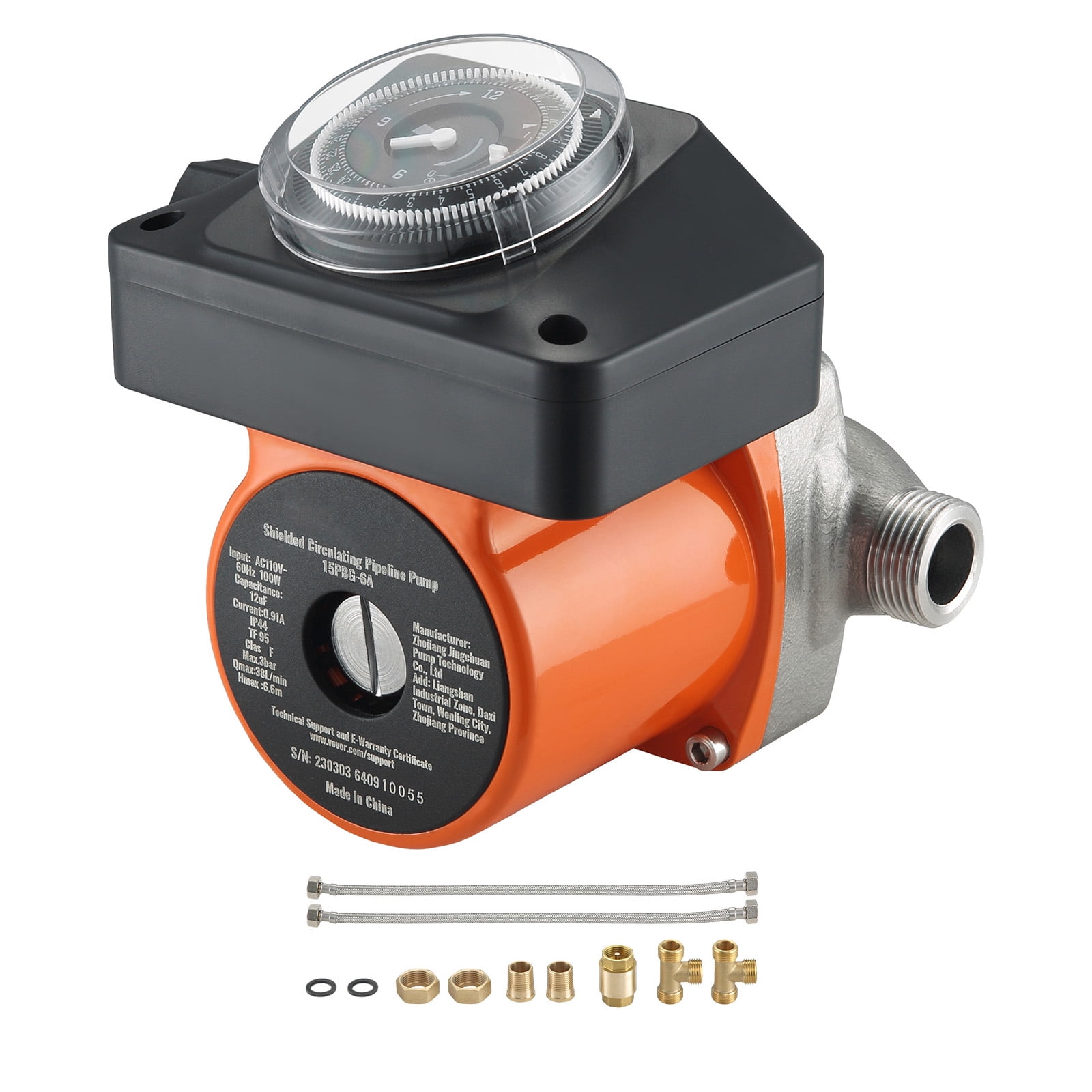 Hot Water When You Need It: Our specially designed recirculating pump system ensures that hot water is always available in every area of your home, whether it’s for your morning shower or washing dishes in the kitchen sink. Don’t let a lack of hot water ruin your day. Quiet And Powerful Flow: Experience the power of our circulator pump, with a maximum water flow of 38 L/min, pressure up to 0.6 bar/9.57PSI, and head lift performance up to 21.6ft/6.6m. But that’s not all! Our pump also boasts a heat-resistant PPO impeller and 304 stainless steel pump head, ensuring a super silent, stress-free hot water circulation experience. With only about 3 dB of noise, you’ll hardly even know it’s there! Water in Half the Time: Say goodbye to wasted hot water and hello to savings with our electric power water pump. Our intelligent programmable timer allows you to set a schedule for when the pump activates and stops circulating, cutting down on waiting time and lowering your water bill. It’s the perfect solution for those looking to be more efficient and eco-friendly! Install in No Time: Installing our hot water circulating pump is a breeze! All you need is a wrench to fit the DN20 inlet/outlet hose with the DN15 adapter. Once it’s set up, you’ll have a constant supply of hot water, no matter the weather outside. Just remember to keep the shaft horizontal after installation! No Backflow: The enclosed check valve separates hot water from the cold pipe, so you can have both hot and cold water at the same time. Our brass fittings and water stop come with a pump, ensuring that your residential water is clean, reliable, and free from leaks and corrosion. Upgrade your home with our top-quality pump today!