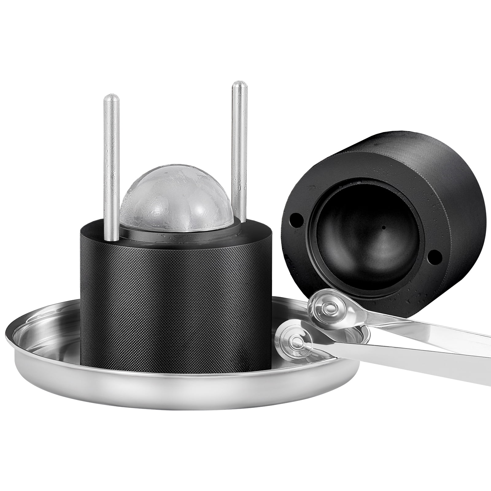 BENTISM Ice Ball Press Kit 2.4″/60 mm, Ice Ball Maker Includes Ice Press, Magnetic Gift Box, Tongs, Drip Tray for Whiskey Black