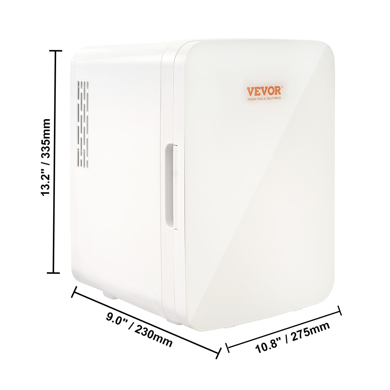 Product Description 10L Mini Fridge This multifunctional 10L mini fridge has both cooling and warming modes, and it can go as low as 64.4 °F below ambient temperature and as high as 122 °F above ambient temperature. The ≤38db low decibel operation will not disturb your work and life. Equipped with home power adapter and 12V DC power cord, this Fridge is perfect for indoor and outdoor use, where you need to store food, drinks, breast milk, medicine, cosmetics, etc. On the Go Say goodbye to warm drinks on long car rides with this mini fridge’s car power cord! The 12V DC power cord allows you to easily connect your fridge to your car’s power supply to meet your needs for self-driving and outdoor activities and enjoy cool drinks and snacks while on the go! Upgraded Water Collection Tank No more worrying about water leakage with this skincare fridge! It comes equipped with an upgraded water collection tank that is located at the bottom of the fridge. This clever design collects condensed water inside the fridge, avoiding water leakage and keeping your space dry and clean. Versatile Uses This 10L cosmetic fridge is an excellent choice for any situation. With the ability to hold up to twelve cans of your favorite beverages (330ml), it’s perfect for storing a variety of food, fruits, drinks, cosmetics, and medicines to keep them cool and warm. Whether you’re heading out camping or just need extra storage space, this mini fridge has got you covered! Compact and Portable Small in size and light in weight (7.71lbs), this makeup fridge is the perfect companion for all your outdoor activities. With handles on both sides, carrying it around is a breeze! You’ll never have to worry about lugging around heavy coolers again. Silent Operation Don’t let a noisy fridge get in the way of your peace and quiet! With its thoughtful noise reduction technology, this portable mini fridge operates at a sound level of below 38bd, making it an ideal option for use in bedrooms, workplaces, and other areas where quiet is essential. Cooling & Warming Dual Mode With its cooling and heating dual modes, this cooler and warmer freezer is a real game-changer. The cooling mode can cool down to 64.4 °F below ambient temperature, while the warming mode can heat up to 122 °F above ambient temperature. Specifications Item Model Number: MFA-10L-C Color: White Capacity (L): 10L/12 Cans Cooling Range: 18°C / 64.4 °F Warming Range: 50°C / 122 °F Inner Liner Material: Aluminum Liner Power: DC9V; Cooling: 50W; Heating: 45W Weight: 7.71 lbs / 3.50 kg Noise: ≤38 dB Size: 10.82 x 9.05 x 13.19 inch / 275 x 230 x 335 mm Package Content 1 x Mini Fridge 1 x US Power Adapter 1 x DC Car Power Cable 1 x Water Collection Tank 1 x Towel 1 x Manual