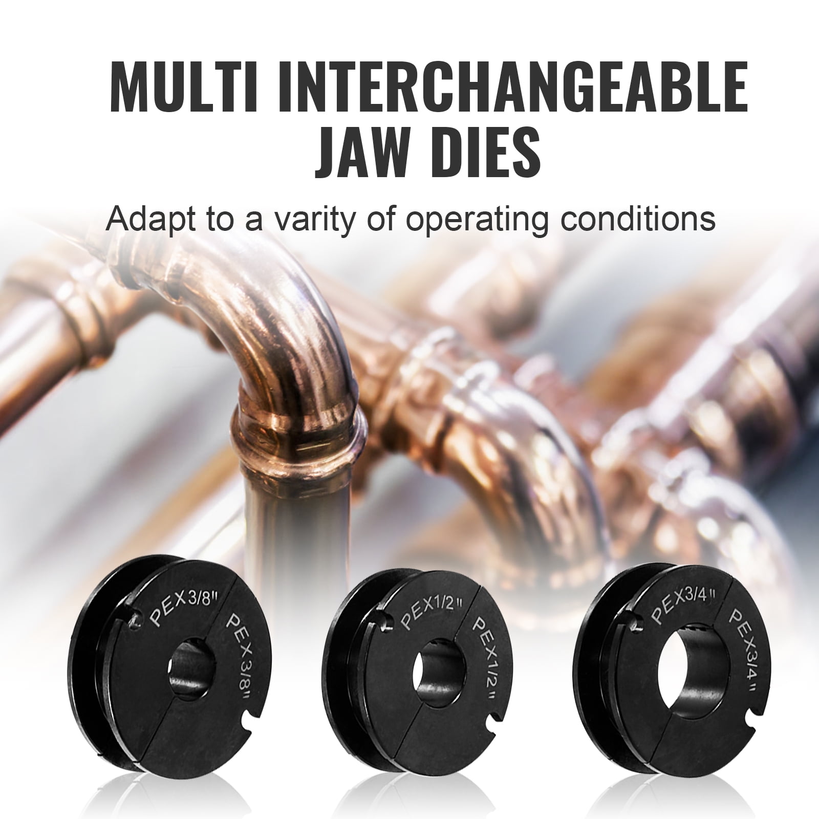 VEVOR PEX Pipe Crimping Tool Kit, Pro Press Crimper for 3/8″, 1/2″, 3/4″ Crimp Rings, with 3 Jaw Dies, PEX Tubing Cutter, Go/No-Go Gauge, Copper Ring Removal Tool, Meets ASTM F1807 Standards