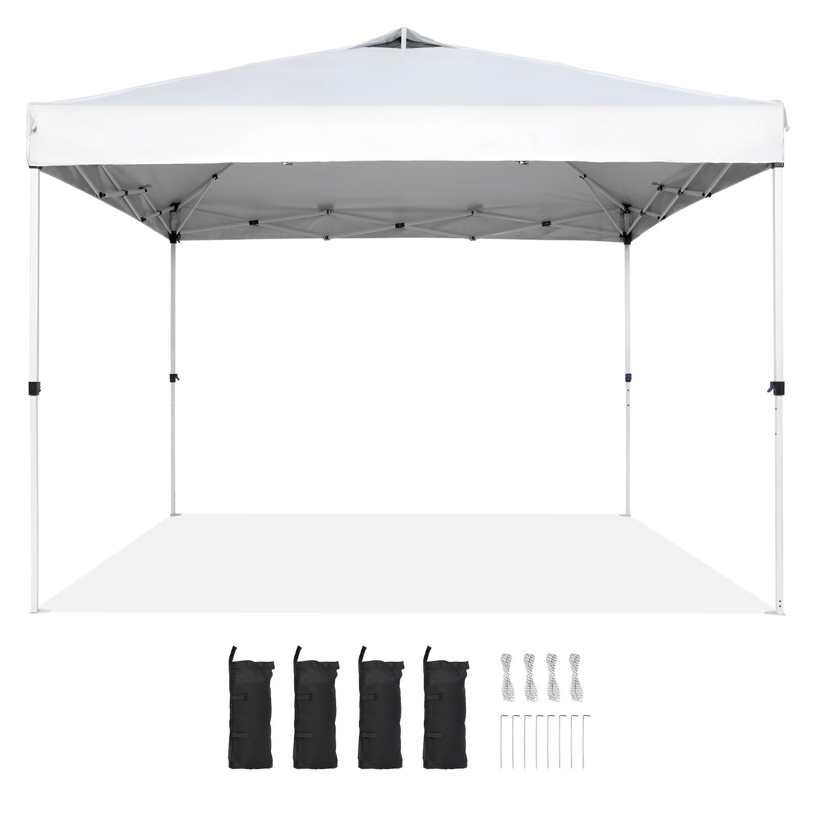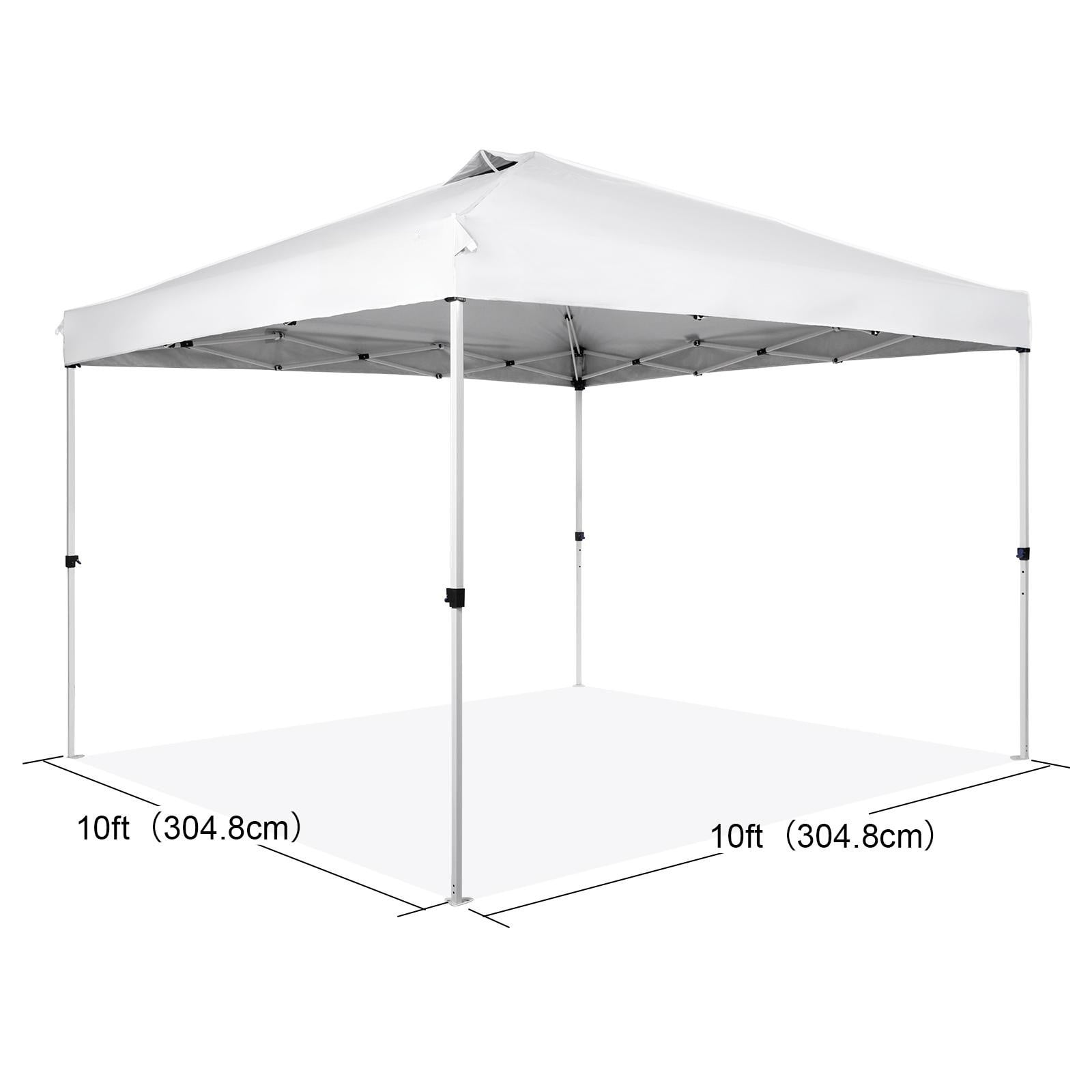 Product Description Portable Pop-up Canopy Tent Our pop-up canopy provides UPF 50+ UV and CPAI-84 flame retardant protection with a 250D PU silver coating tarp. Includes an aluminum beam joint, glide truss washer, and four sandbags for stability in windy and rainy weather. Enjoy outdoor activities safely and comfortably with family and friends! Sealed Waterproof Cover The added canopy edge and waterproof strips provide you with a comfortable and immersive camping experience, even on rainy days. Added 4 Banner Rings You can easily hang advertising banners for your commercial events and camping flags for your party. Strong Metal Frame With the aluminum beam joint, glide truss washer, air vent, and four sandbags, the canopy tent will remain stable and sturdy to withstand harsh weather. Premium 250D PU Tarp The cover features PU coating on both sides, providing UPF 50+ UV protection and CPAI-84 flame-retardant protection. Take it Anywhere Transporting our product is a breeze thanks to the portable bag with wheels, making it easy to carry and store in your trunk. You can also store loose parts neatly in the bag. 10 x 10 FT Extra Large Tent Our canopy shelter is spacious enough to accommodate 6-8 people comfortably. It also features 3 adjustable height options, allowing you to customize the height according to your needs, making it flexible and convenient Specifications Unfold Size(L x W): 10 x 10 ft / 304.8 x 304.8 cm Bag Size: 47.2″ x 8.3″ x 8.3″ / 1120 x 21 x 21 cm Adjustable Frame Height: 106.3″/270 cm, 102.4″/260 cm, 98.4″/250 cm Net Weight: 33.1 lbs / 15 kg Tarp Color: White Tarp Material: 250D PU Silver Coated Fabric Frame Material: Carbon Steel Q195 Package Content 1x Frame 1 x Tarp 1 x Wheeled Bag 8 x Stakes 4 x Ropes 4 x Sand Bags 1 x User Manual