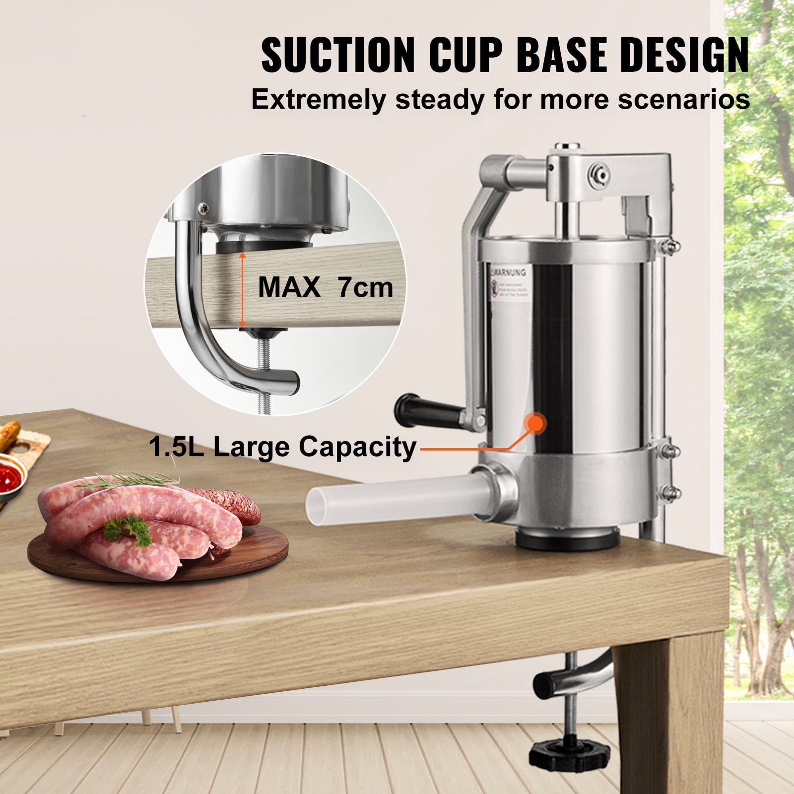 VEVOR Sausage Stuffer 2.5LBS/1.5L Capacity Homemade Sausage Maker Stainless Steel