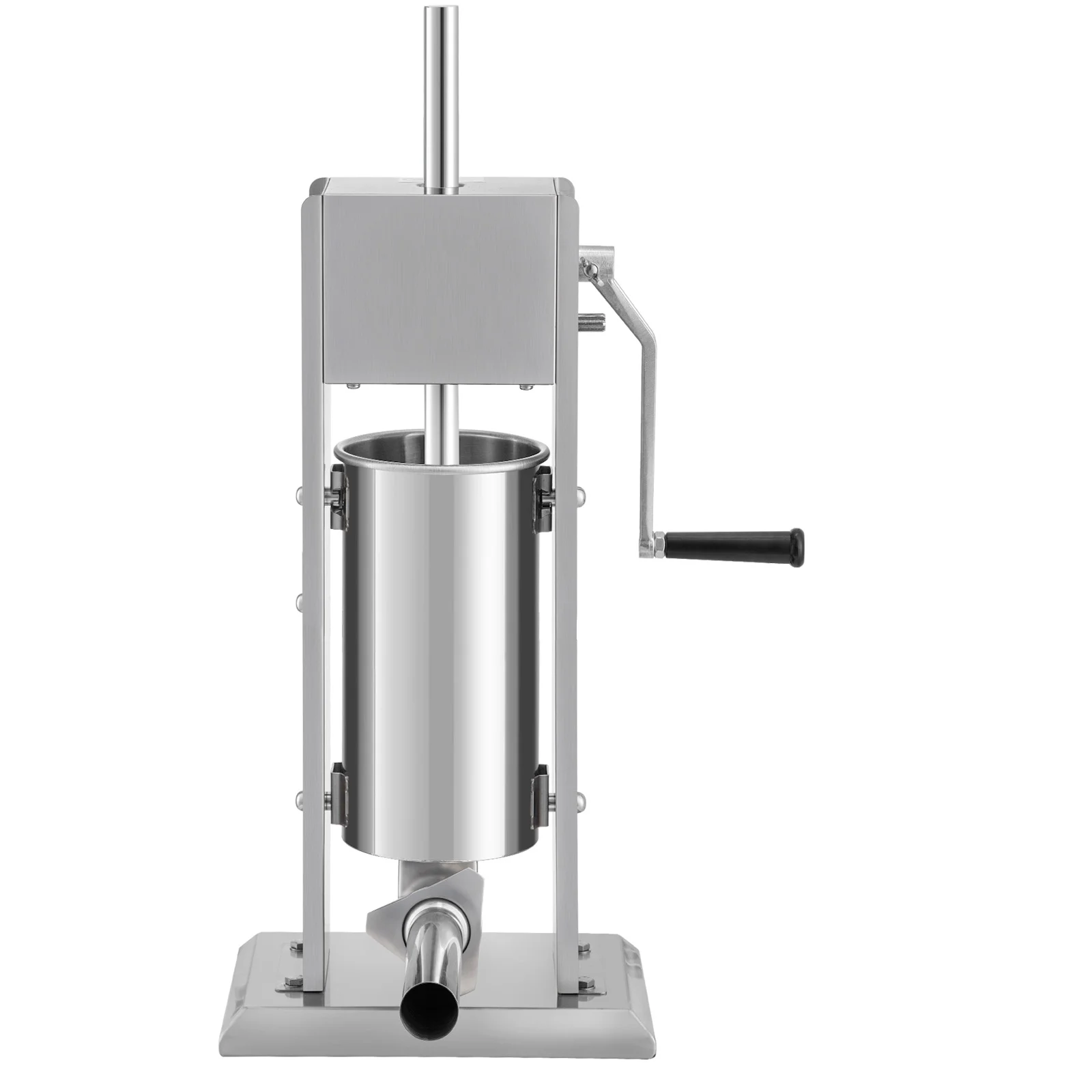 Product Description 5L Sausage Machine Two Speed Choose & Family Size & Easy Operation Two Air Release Valve Our sausage machine has an equipped thickened and hardened metal pressure plate that is more solid and stable when pressed. It also comes with two exhaust valves, evenly discharging excess air and ensuring a tight enema. Leave No Mess Behind Shortening the elbow can avoid the meat remains in the tube. The complimentary manual piston can easily fill the remaining meat into the casing, avoiding the waste of meat. Large Base Suction Cup Four large suction cups have been added to the base to ensure that the process is very stable and does not wobble on the table, making it suitable for workstations, homes and commercial use. Enjoy 5L of Space Equipped with a stainless steel cylinder with a capacity of 1.3Gal / 5L, this manual sausage stuffer can hold a large amount of meat and make more sausages simultaneously, and the barrel is tiltable, so ingredients can be poured directly. You can make sausages quicker than ever. Filling Tubes & Doughnut Fitting Four different sausage stuffing tubes are included, making it convenient for you to make sausages of various sizes; doughnut accessories provided can be used to make various kinds of fried dough sticks. Advanced Food-grade Material The sausage filling machine is made of solid stainless steel that is both corrosion-proof and wear-proof. All parts in contact with food have passed FDA certification, which is reliable and durable. No assembly is required, and it can be used immediately after unpacking. Specifications Model: XZ-5 Type: Vertical Operation: Manual Capacity: 1.3 Gal / 5 L Material Barrel & Tubes: SUS304 (food grade) Sealing Ring: Silicone (food grade) Pressure Plate: Aluminum (food grade) Tube Dimensions: φ1.5 in / 37 mm, φ1.2 in / 30 mm, φ0.83 in / 21 mm, φ0.6 in / 15 mm Overall Machine Size: 12.2 x 12.2 x 24.9 in / 310 x 310 x 632 mm Net Weight: 24.3 lbs / 11 kg Package Content 1 x Sausage Stuffer 1 x Cleaning Brush 1 x Piston 1 x Discharge Tube Set 2 x Sealing Ring 4 x Bottom Suction Cup 1 x Doughnut Accessories 1 x Manual