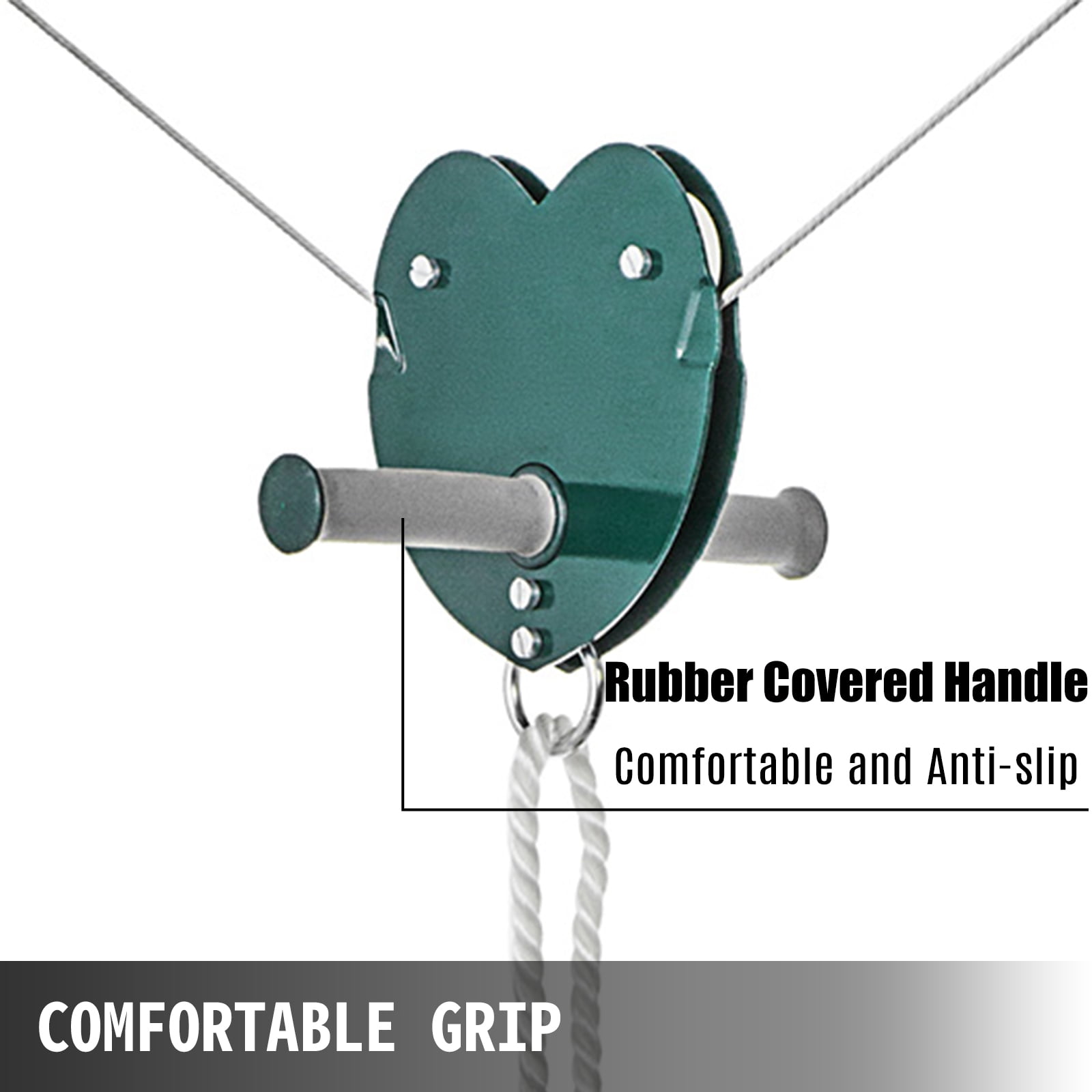 【SAFETY AND DURABLE】- Kids’ safety is always our priority when we make products, and we are confident to provide you the most durable and sturdy zip line kit. Steel trolley with an anti-rust coat, 304 stainless steel cable, and durable PP seat are all built to last for a long time. Strong enough to hold up to 250 lbs. 【EASY TO SET UP】- Zipline kits for backyard are partly assembled. All you need to do is find two sturdy trees, wrap them around, and let your kids straddle the seat, grab the handles, and go. Then you can have endless hours of backyard fun with your little ones. 【ADJUSTABLE & COMFORTABLE】- Backyard zipline kit for kids, features adjustable height, anti-slid, and comfortable grip. Suitable for children of different height. Kids must hold the rubber handle tightly and sit on the seat when using it. Please make sure the knot below the seat is firm enough. 【A COMPLETE SET】- Zip lines for backyard kids include an 100 ft main cable, a 4.7 ft sling cable, a trolley, a seat, and other accessories. We have everything you need for a long and exciting ride. Be ready to become the coolest parents and make your kids laugh out loud. 【FOR KIDS AND ADULTS】- Large capacity makes this zipline great for both kids and adults to play. Enjoy the fun of our backyard zipline in the convenience of your backyard. It won’t just bring them joy, but also mainly improves balance, strength, and coordination.