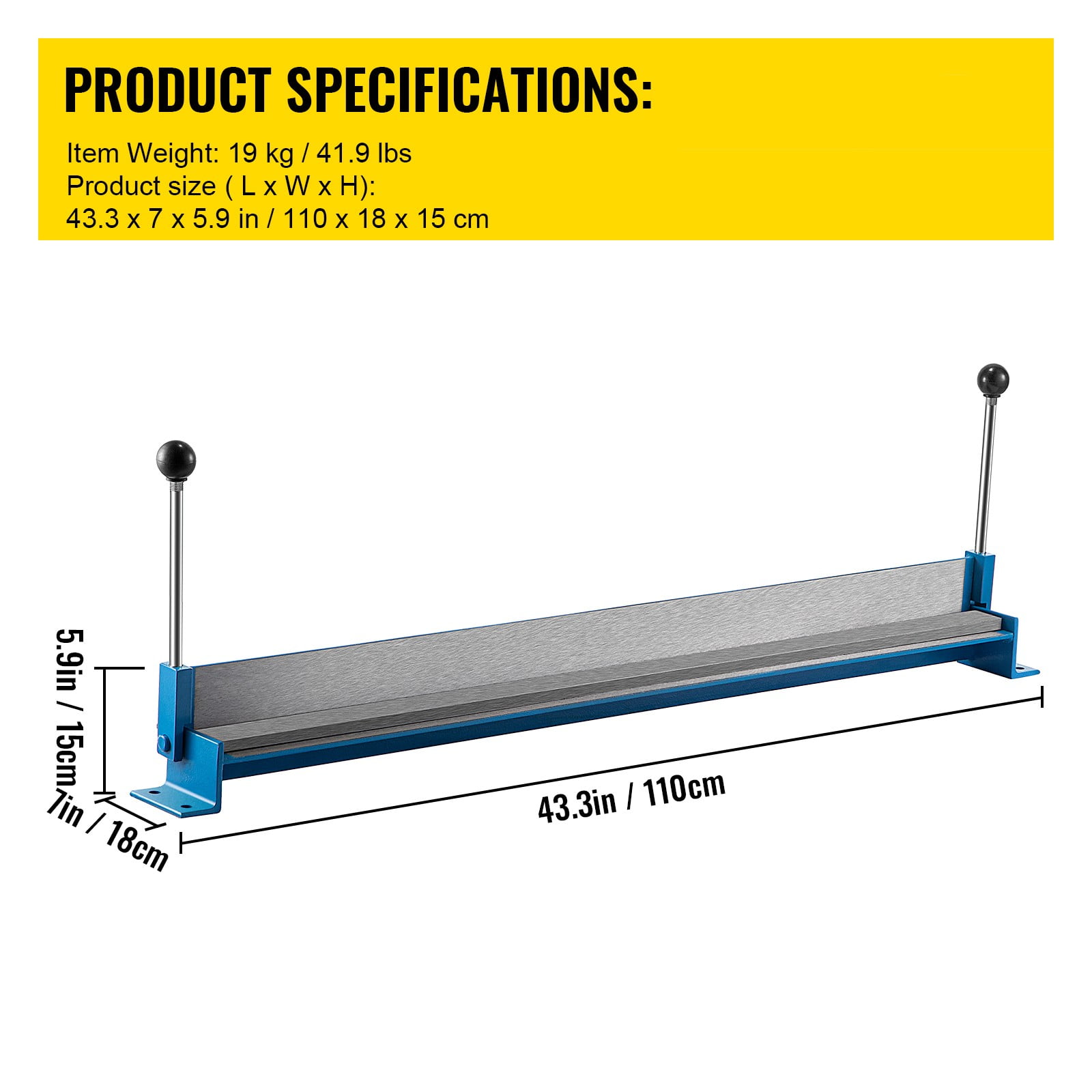 Product Description 36” Steel Bending Brake 36” Sheet Metal Bending Brake is perfect for benchtop use or to be placed in the trunk of your car. This brake features: High-quality steel construction, Easily makes up to 90 degree bends, Bends material up to 36”. It is fair to say this industrial metal sheet bender is an ideal tool to process metal sheets manually in various factories, workshops, family workshops for milling cutter grinding work. Specifications Material: Steel Max. Length: 36″ Bending Capacity: 20 Gauge Mild Steel & 14 Gauge Aluminum Angle: 0° – 90° Weight: 41.9 lbs L*W*H: 43.3 x 7.1 x 5.9 in. Package Content 1 x 36″ Sheet Metal Bender 2 x C-Clamp Required 4 x Screws 1 x Wrench
