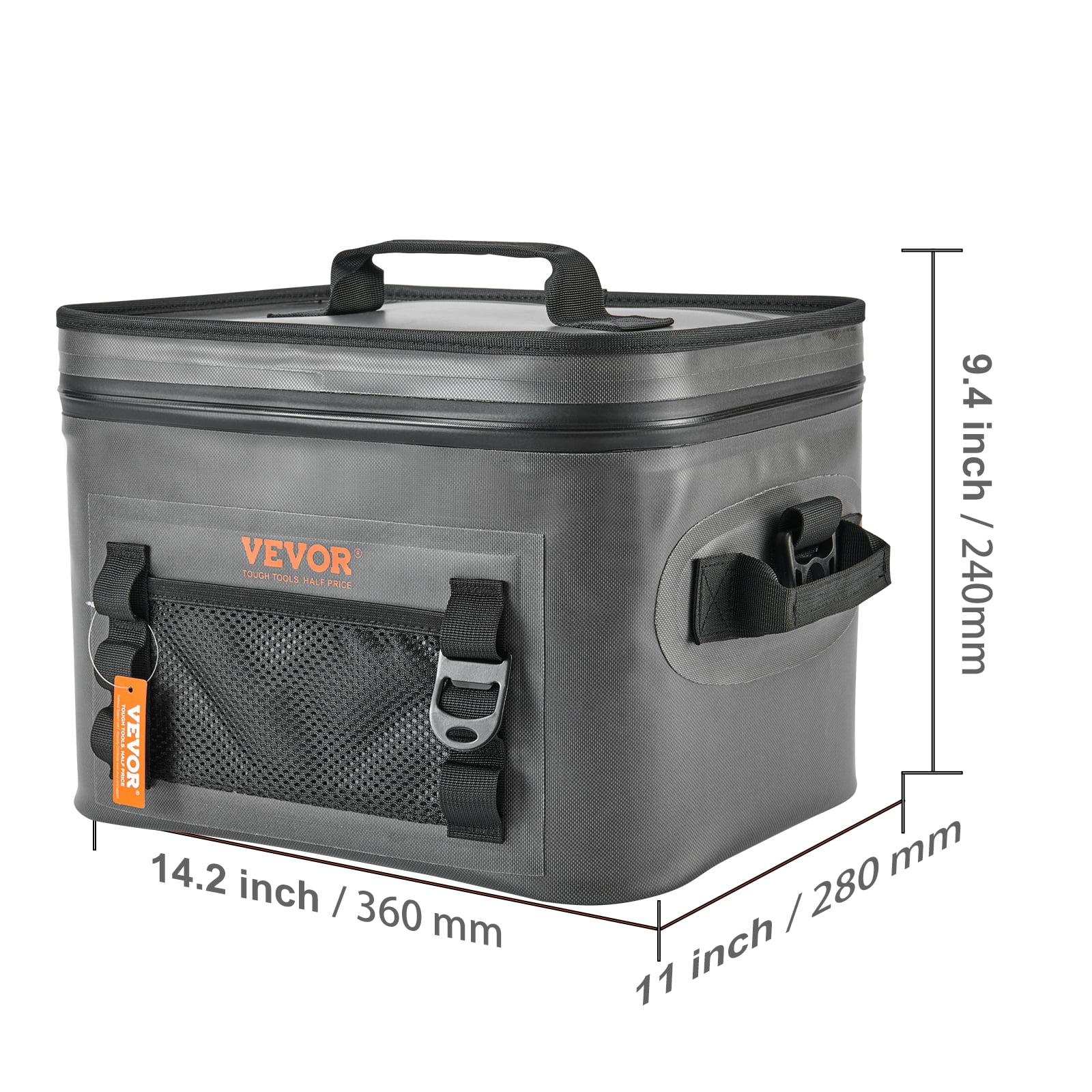 Product Description Stay cool, stay refreshed. Perfect for outdoor adventures with our cooler bag! The thick PE insulation foam with enhanced sealing keeps the soft cooler bag inside cold for a long time. Keep your beverages cold with our large-capacity soft-sided cooler bag. Ample Storage Space Designed with a spacious interior, our soft sided cooler bag is capable of holding up to 16 cans. Waterproof & Durable Material The soft side cooler is waterproof and tear-resistant with TPU840D nylon material. It also features long-lasting use. Waterproof & Durable Material The soft side cooler is waterproof and tear-resistant with TPU840D nylon material. It also features long-lasting use. User-friendly Design Designed with your comfort in mind, providing an enjoyable outdoor experience. Bottle Opener Included Comes with a built-in bottle opener for the convenient opening of beverages like beer, soda, and sparkling water. For Various Outdoor Activities Our soft cooler insulated bag is ideal for outdoor camping, hiking, fishing, boating, and more. Stay cool and comfortable with our soft cooler! Specifications Item Model Number: HT-20233 Product Size: 14.2x11x9.4 inch/360x280x240 mm Net Weight: 2.9 lbs/1.3 kg Material: TPU840D Nylon Color: Dark Gray Package Content 1 x Soft Cooler Bag
