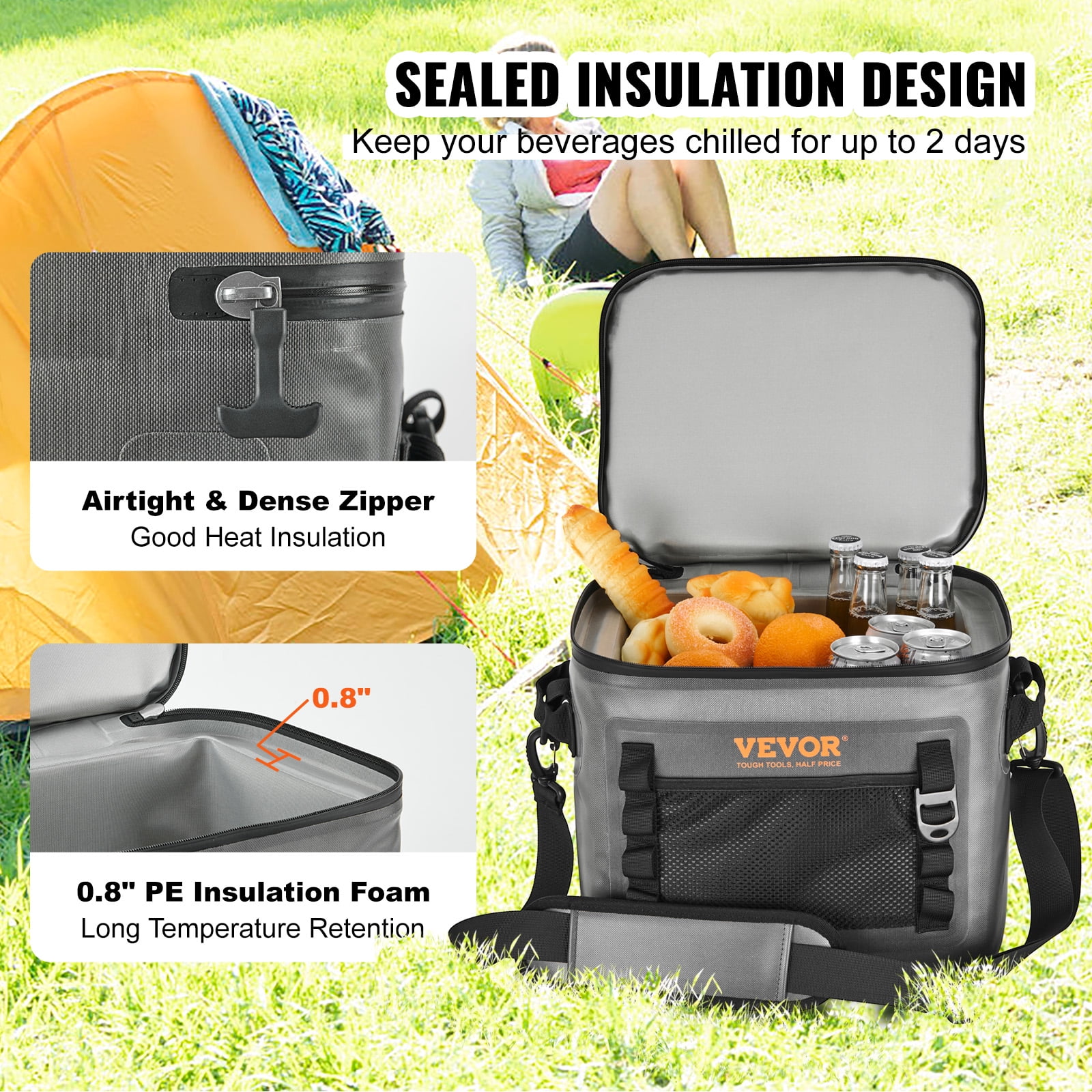 Long-lasting Cooling: Constructed with three high-quality layers, including outer and inner TPU840D nylon material for UV protection and water leakage-proof, 0.8″ PE insulation in the middle for superior insulation. The airtight zipper provides a perfect sealing space and prevents heat convection. Keeps food and drinks cool for up to 48 hours when fully packed with ice. Large Storage Capacity: With a spacious size of 14.2x11x11.9 inch, our soft cooler bag can store approximately 24 cans. You can also use it to carry food, fruits, and more, making it perfect for outdoor gatherings of 3-5 people. Waterproof and Durable: The soft sided cooler bag’s inner and outer layer of TPU840D nylon is thick, tear-proof, and scratch-resistant, making sure of a long life span. The dense zipper ensures waterproof sealing. No need to worry about outdoor activities like fishing and rafting without the fear of getting your food and drinks wet. Cleaning is also effortless! Convenient to Carry: The soft side cooler features adjustable slip-proof shoulder straps for easy transportation during outdoor trips. It also has handles on the top and sides, allowing for effortless carrying or placement in the car trunk. A reliable helper for storing food and beverages outside. User-friendly Design: The wide-mouth flip-top design makes the cooler bag easy to access beverages and food. The exterior mesh pocket provides convenient storage for your phones and wallets. With the buckles, you can securely store keys, small knives, and other essentials. It even comes with a built-in bottle opener for easy beverage opening.