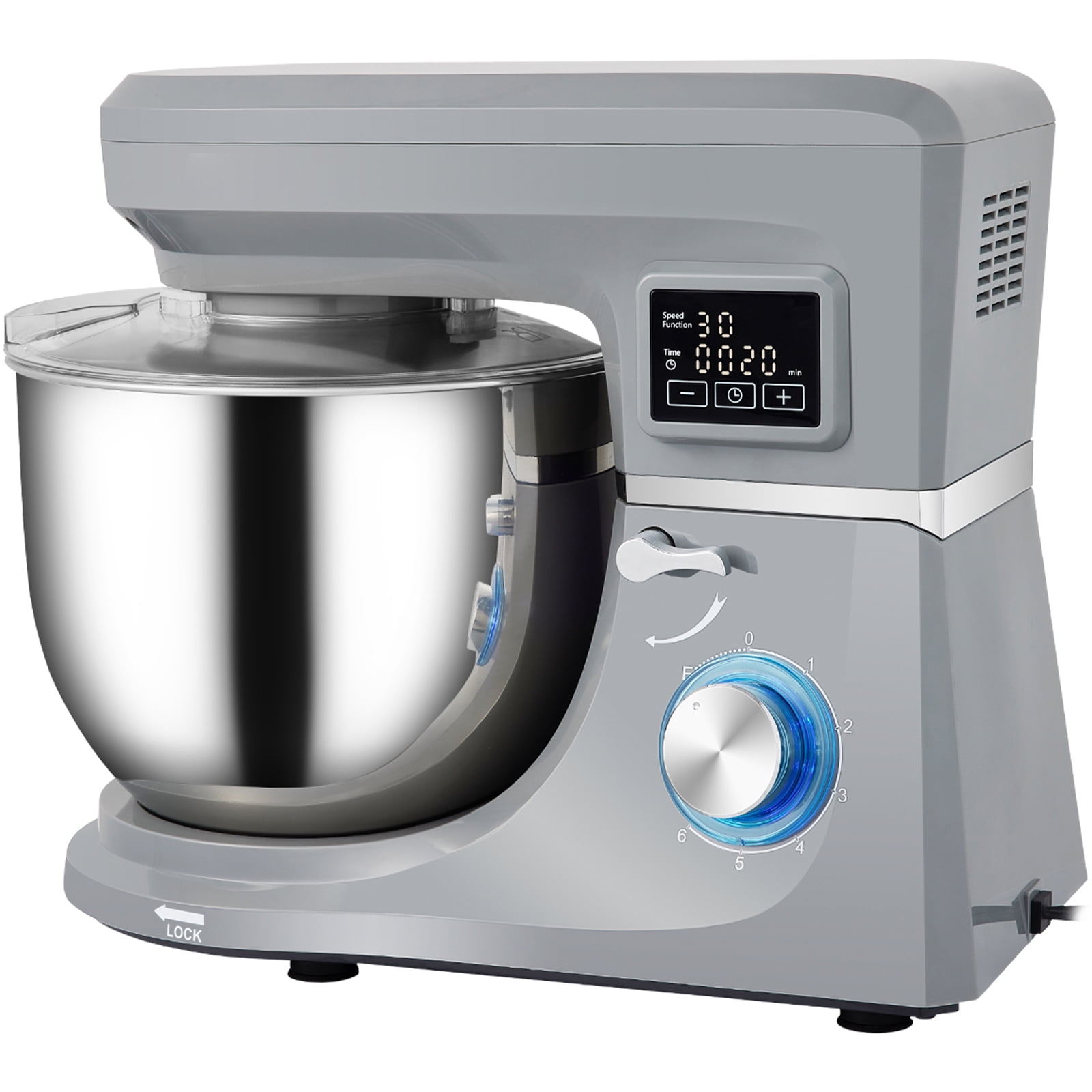 BENTISM Stand Mixer 7.4Qt Electric Dough Mixer w/ 6 Speeds LCD Screen Timing 660W
