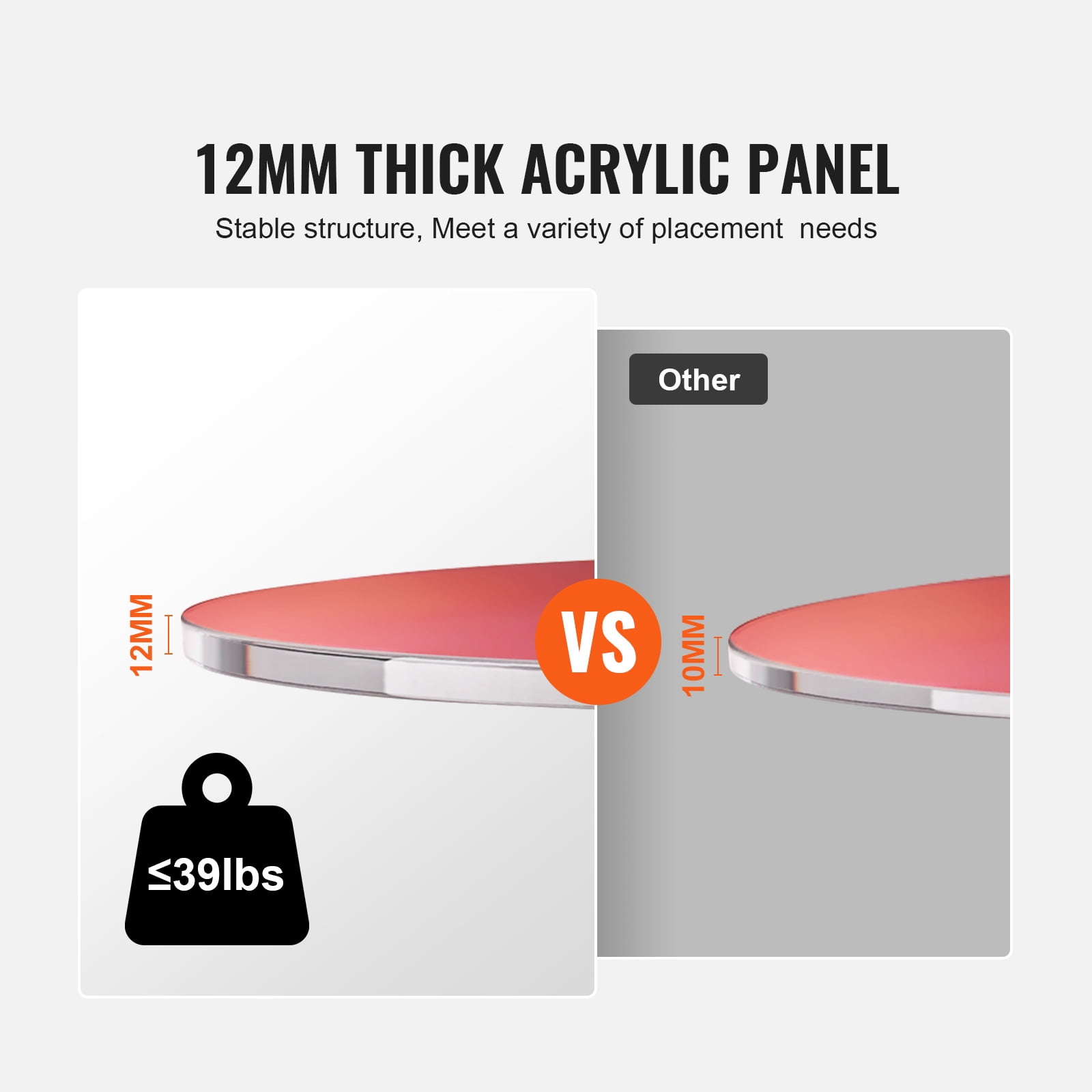 Product Description Acrylic Rainbow Colors End Table Our colorful acrylic end table radiates a glow when illuminated by light, creating a dreamy atmosphere. It is made from natural acrylic material. Its transparent crystal-clear brilliance matches various home styles. With a 12 mm thickened panel, it ensures enhanced loading capacity. Optimal Height Our round iridescent side table stands at a perfect 18.9 inch/480 mm tall, creating a convenient storage space right by your side, ensuring easy access to your belongings. Outstanding Acrylic Material Crafted from natural acrylic material, this acrylic end table offers impressive impact resistance, with a hardness 16 times stronger than ordinary tempered glass. It combines both aesthetic appeal and practicality. Sturdy Structure Equipped with three supporting legs and a triangular design, this rainbow acrylic coffee table boasts exceptional loading capacity. Provide a reliable support whether you’re working on the tabletop or enjoying a drink. Easy to Clean No need to worry about cleaning our colorful end table. Simply use water or acrylic cleaner for daily care. Its robust and stable material allows for both indoor and outdoor use. Wide Application With its sparkling and transparent design, this rainbow side table adds a touch of dreaminess to every corner of your home. It can serve as a side table in the living room, a bar cart in the dining area, or even a small workstation. Smooth Table Edge The smooth and polished edges of the tabletop greatly reduce the risk of everyday bumps and injuries. Specifications Item Model Number: JYFS-0010S Main Material: Acrylic Tabletop Thickness: 0.5 in/12 mm Product Weight: 9.3 lbs/4.2 kg Product Size: φ17.7×18.9 in/φ450×480 mm Loading Weight: ≤22lbs/10 kg Package Content 1 x Acrylic Table 6 x M6x25 screws 6 x M6 Nuts 2 x Allen Wrenches 1 x Manual 3 x Foot pads